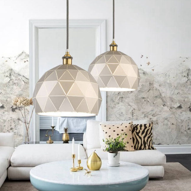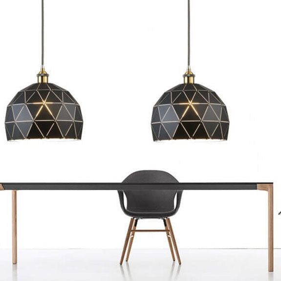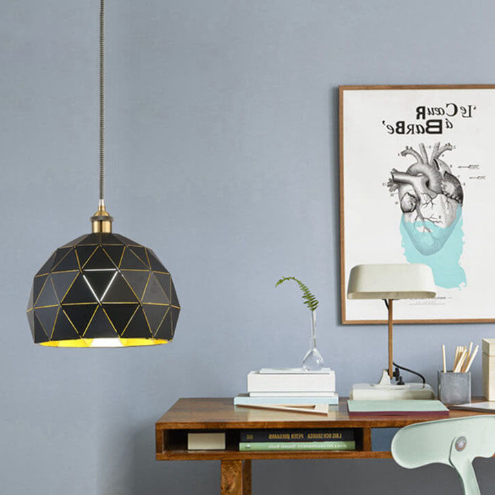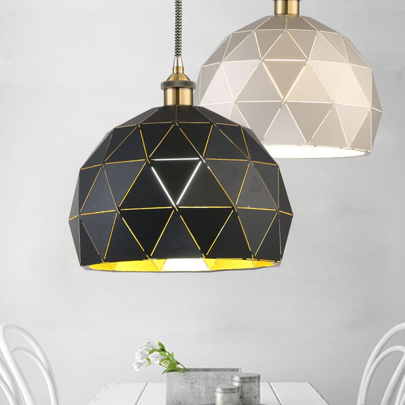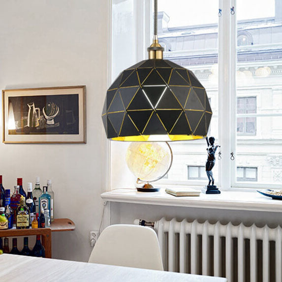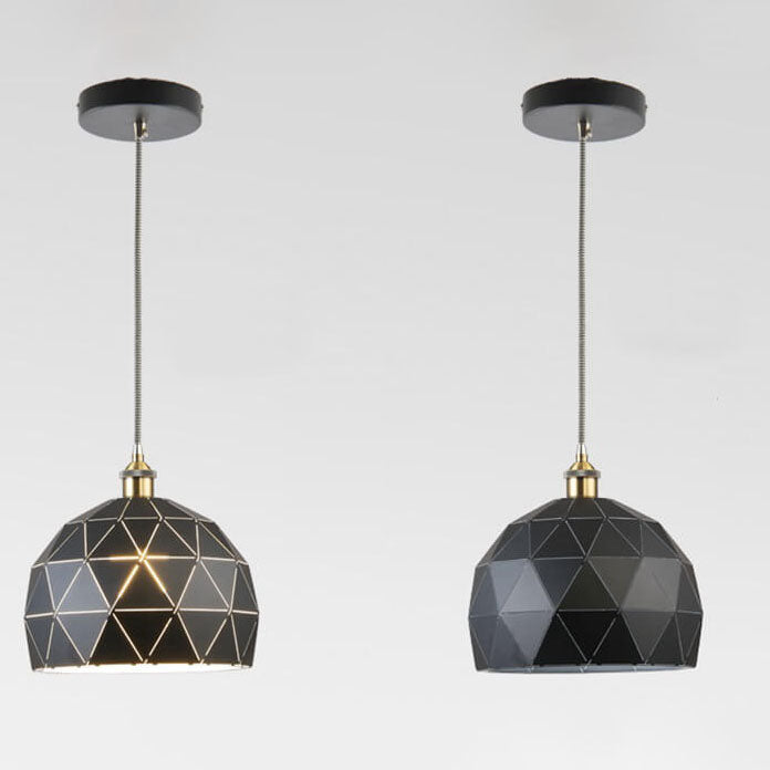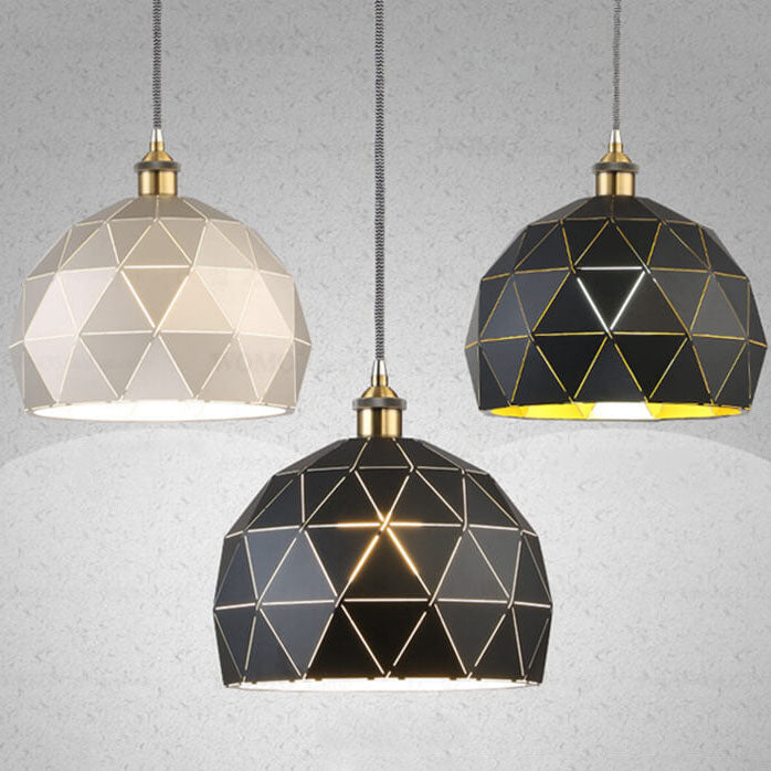 Industrial Simple Iron Diamond Hollow Dome 1-Light Pendant Light