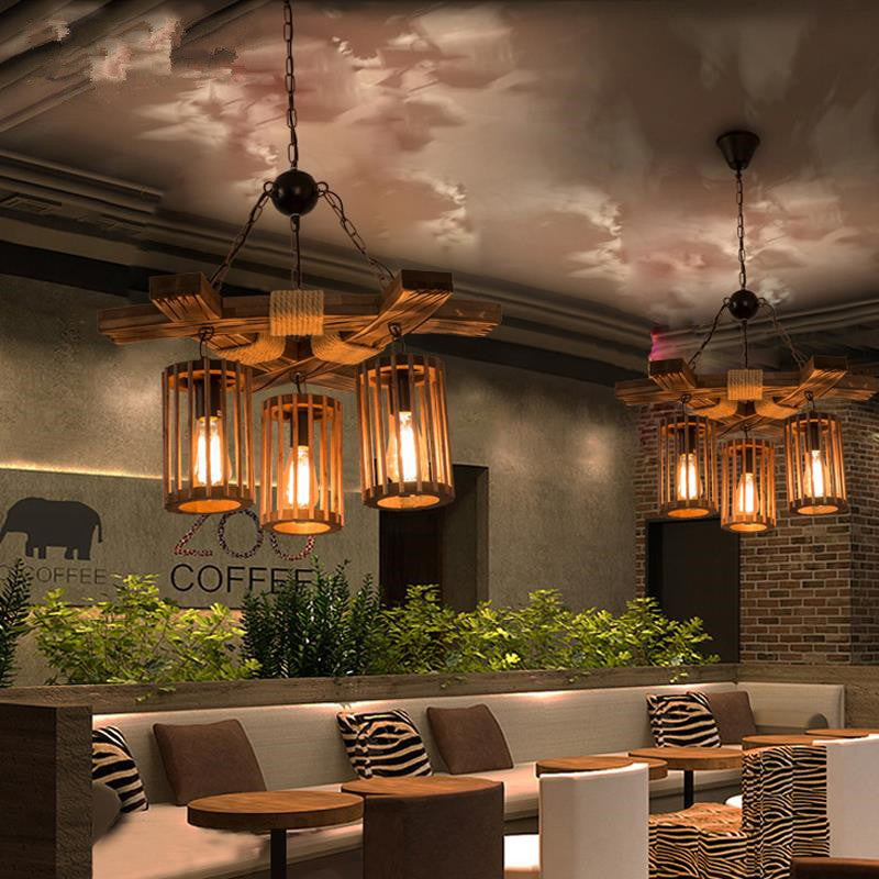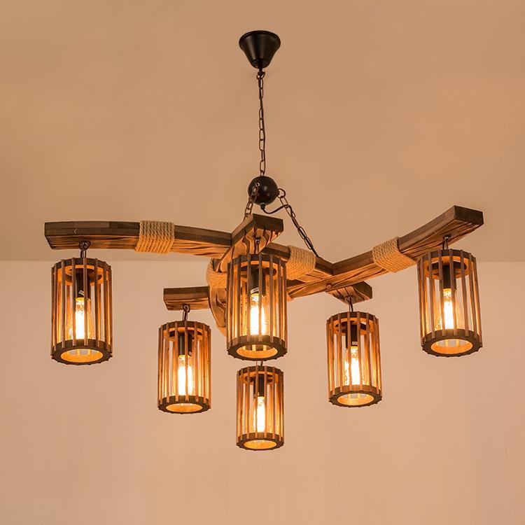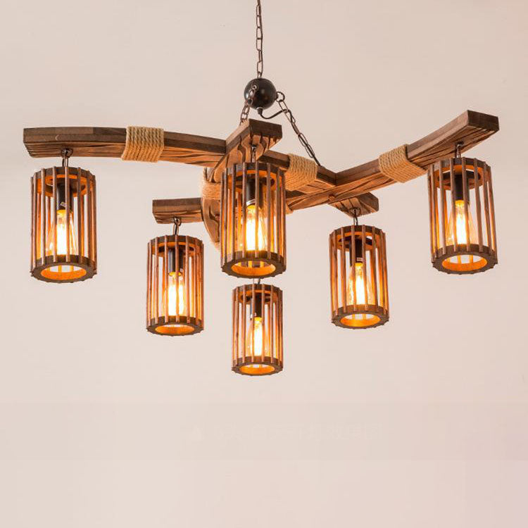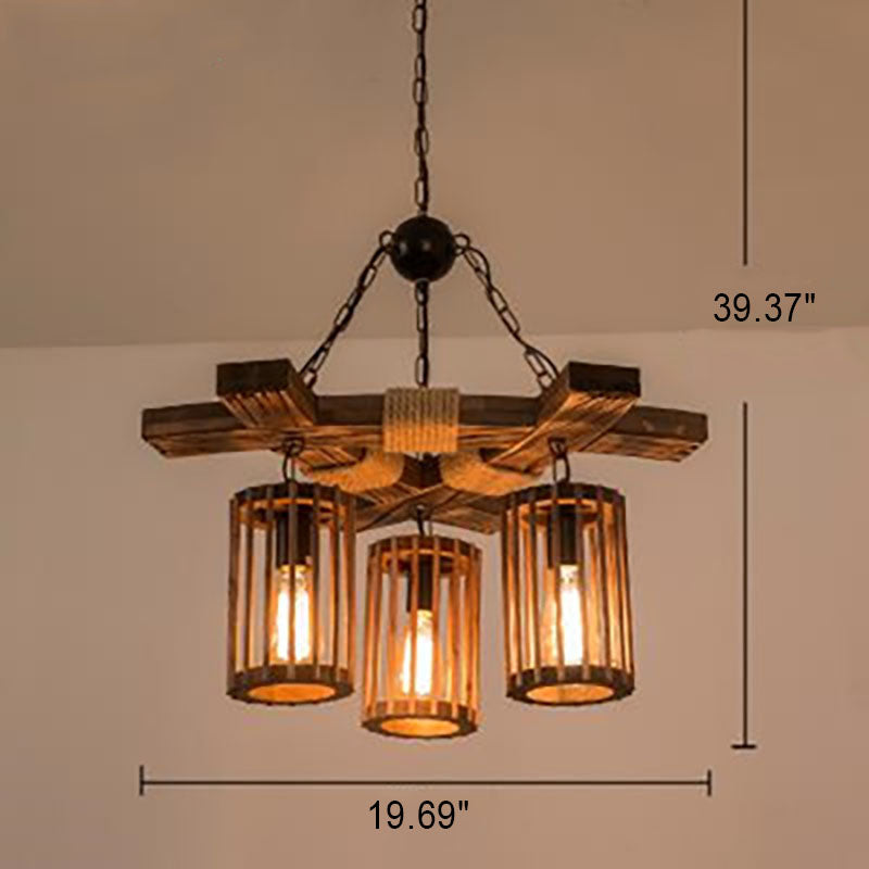 Industry Vintage Wooden Iron 3/6-Light Chandelier
