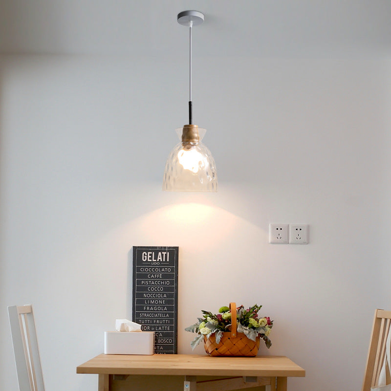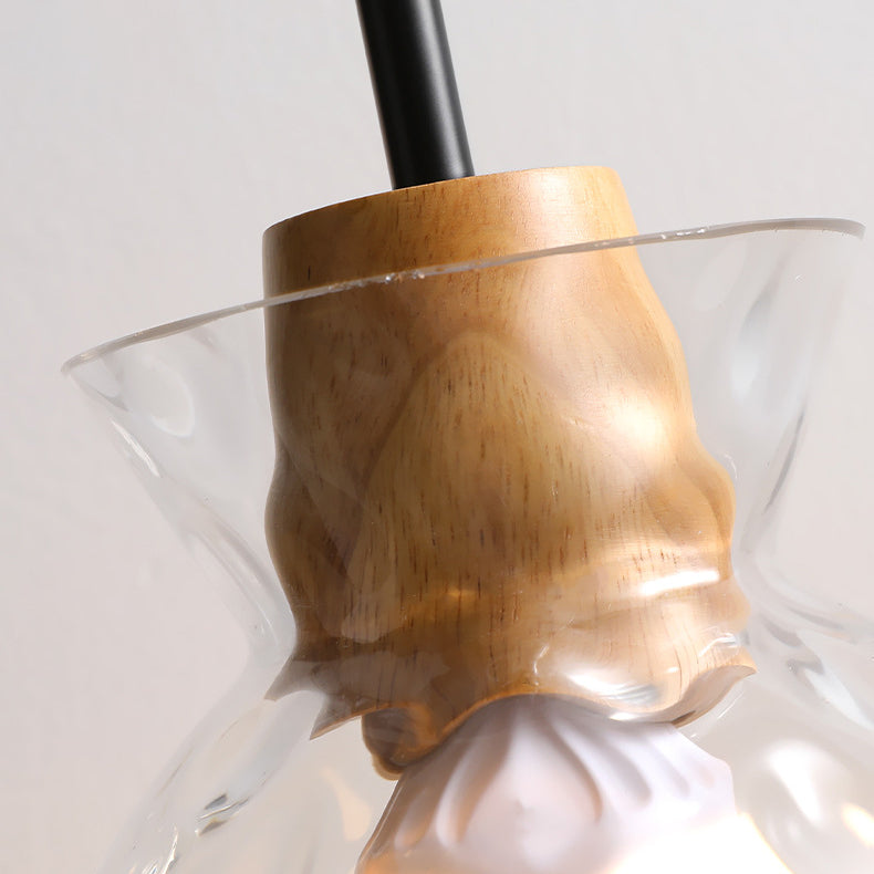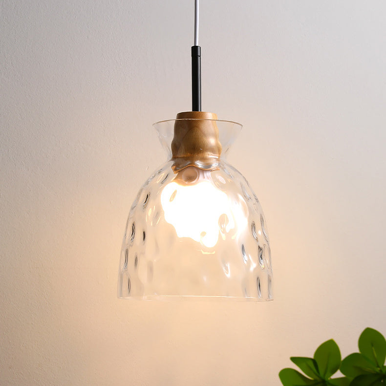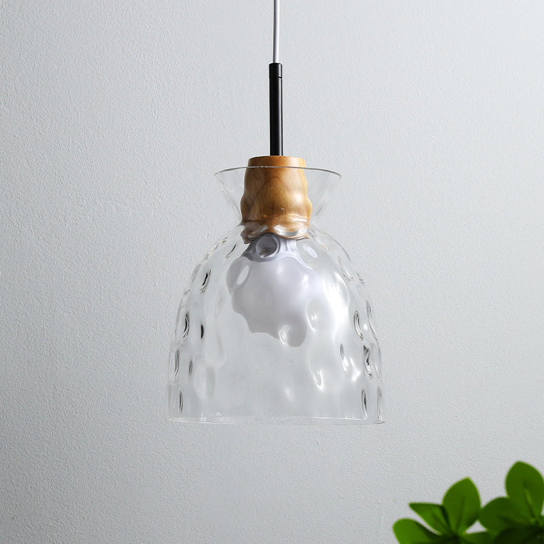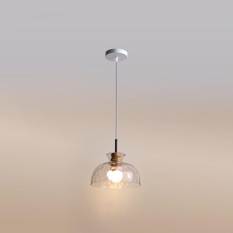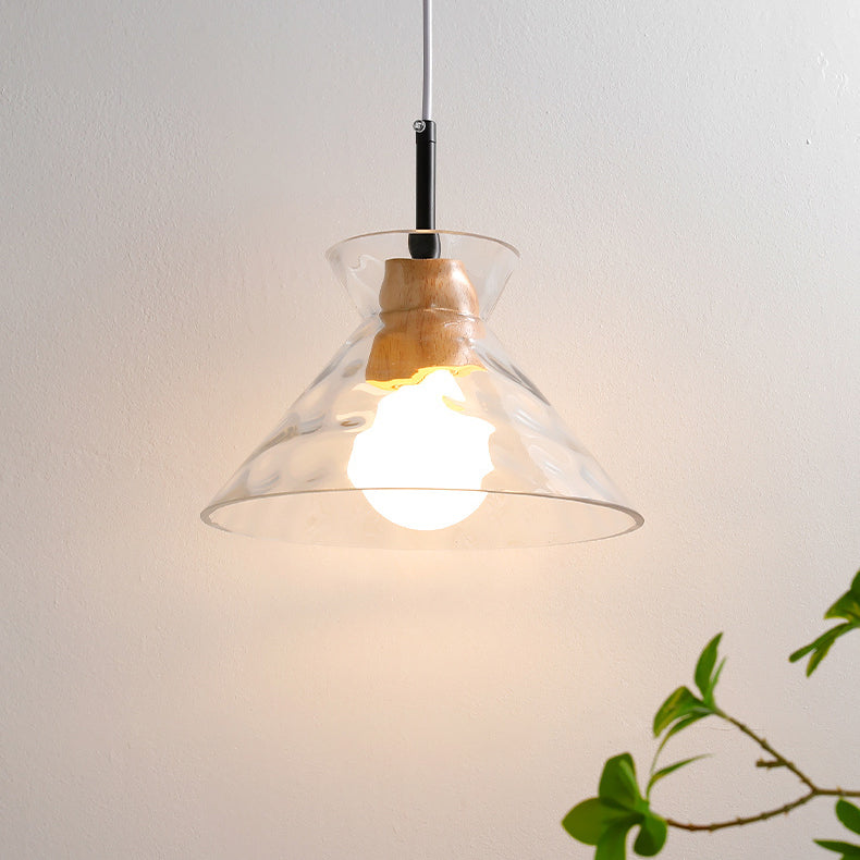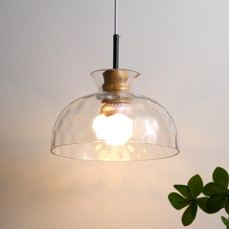 Japanese Minimalist Ash Wood Glass Round 1-Light Pendant Light