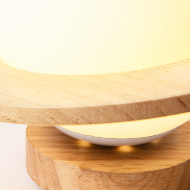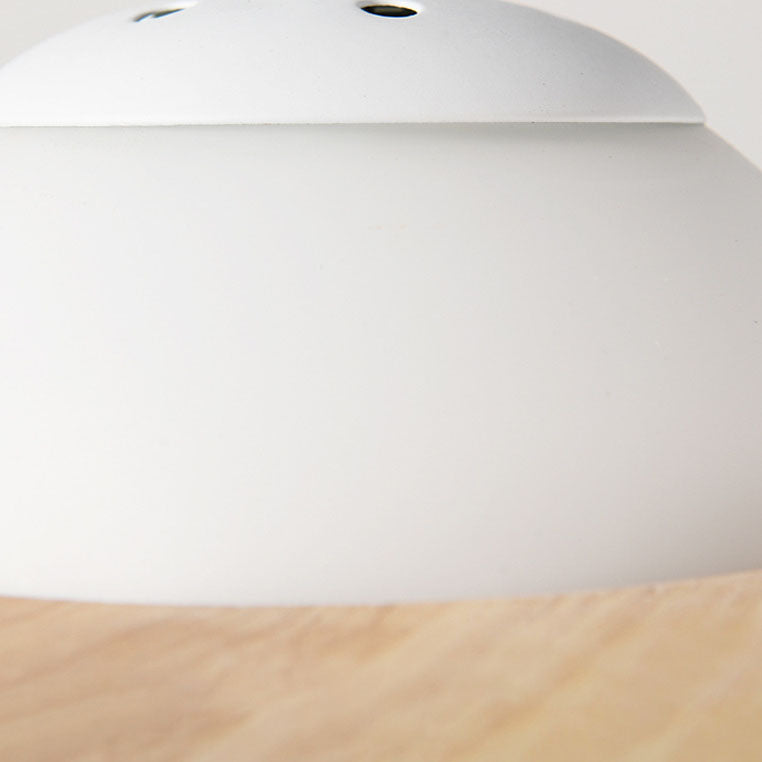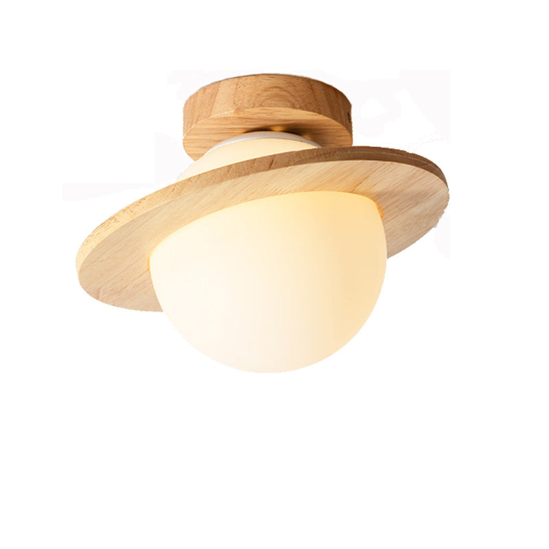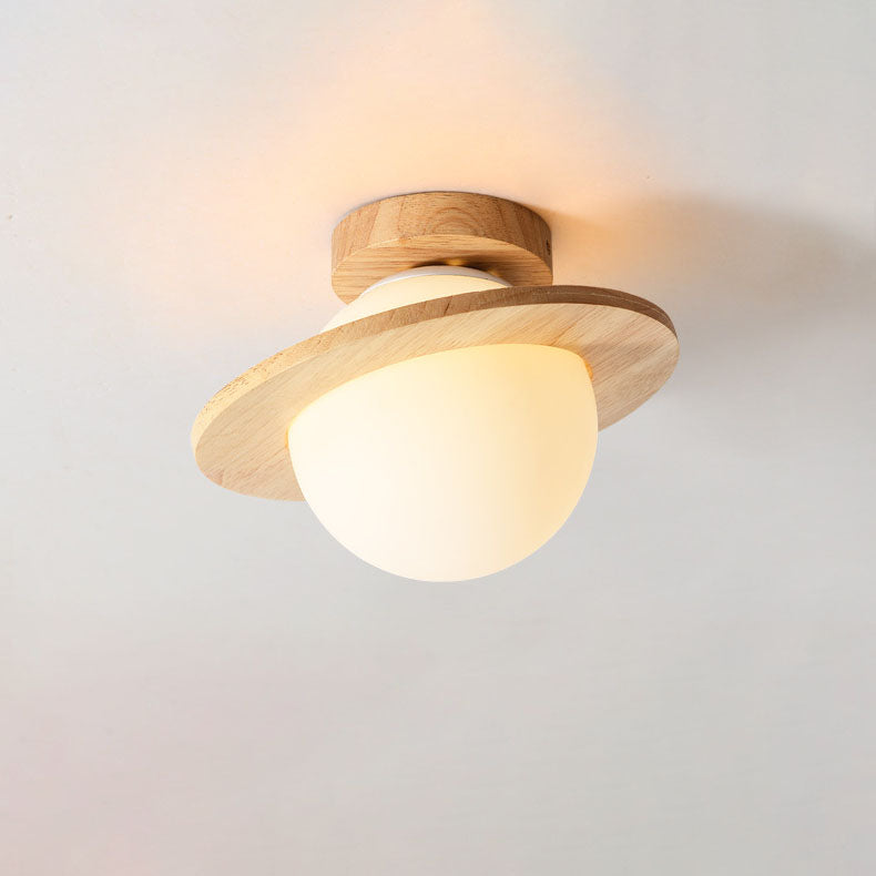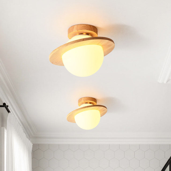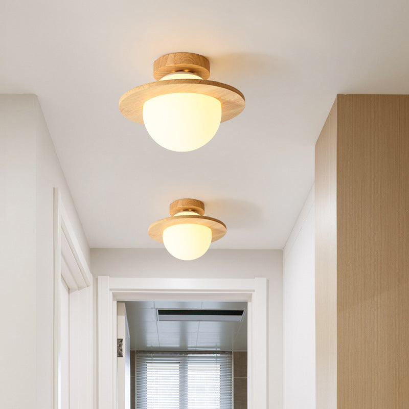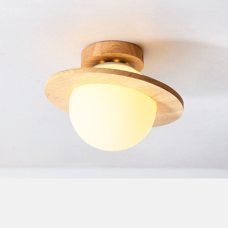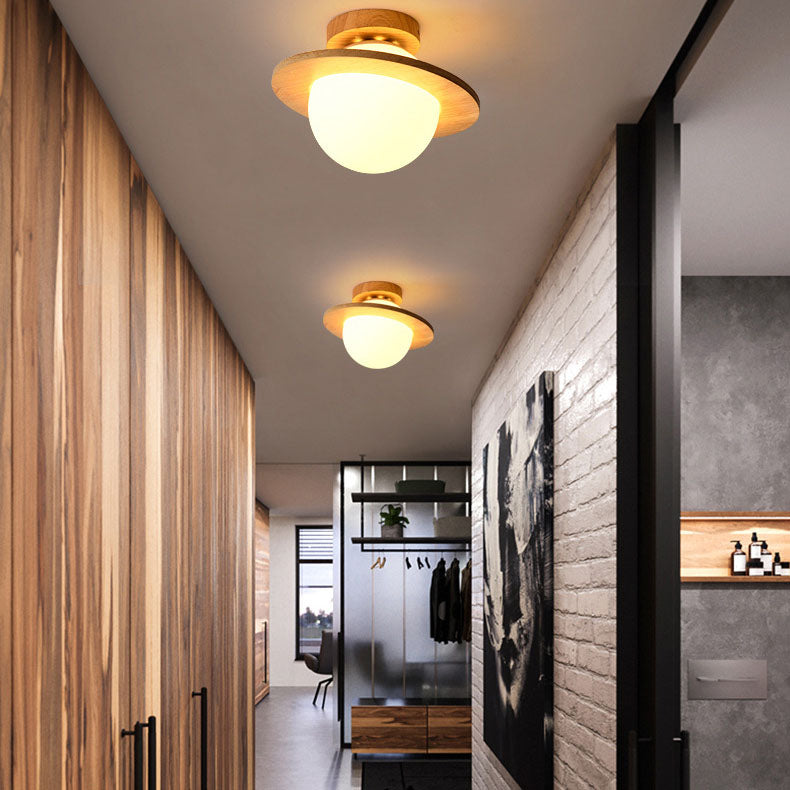 Japanese Minimalist Round Ball Wooden Glass 1-Light Semi-Flush Mount Light