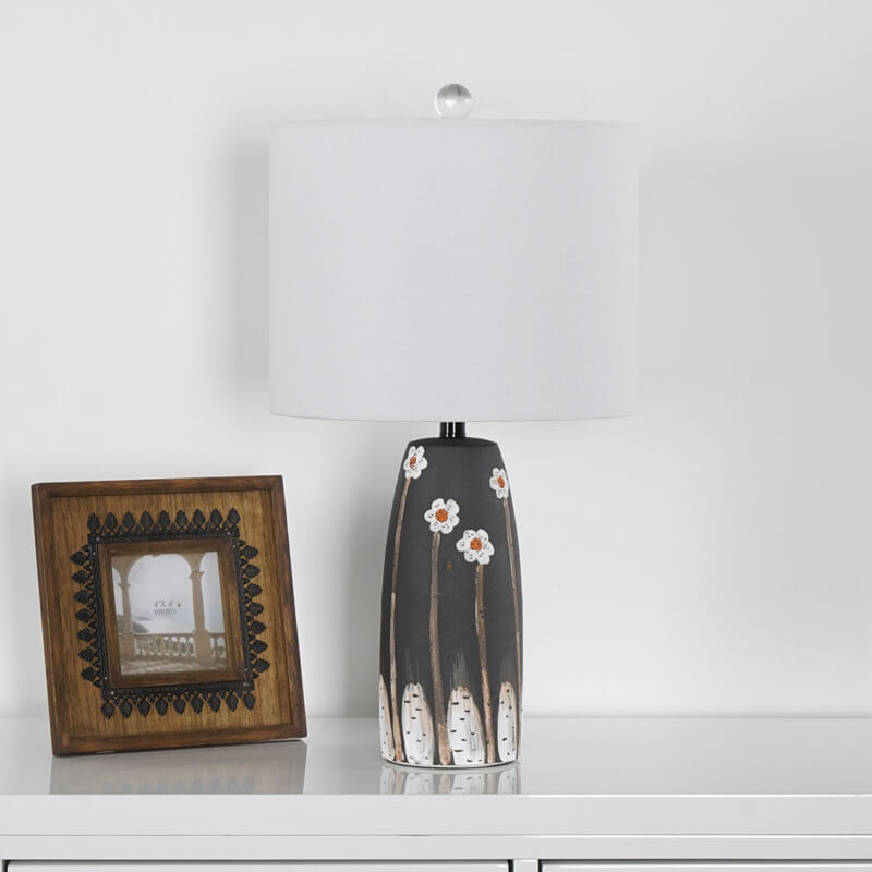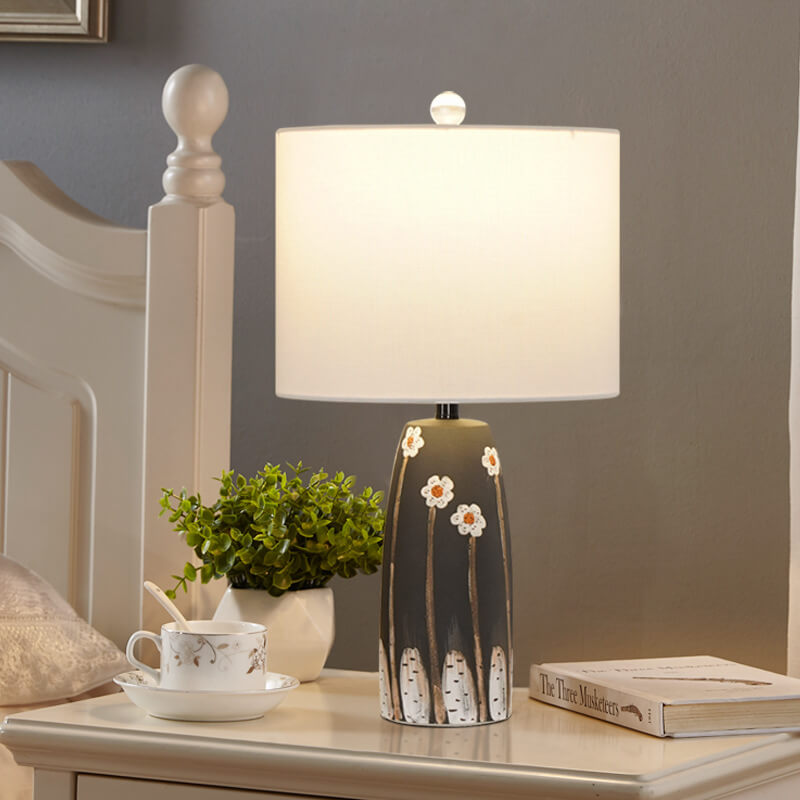 Japanese Minimalist Vintage Plum Blossom Ceramic Fabric 1-Light Table Lamp