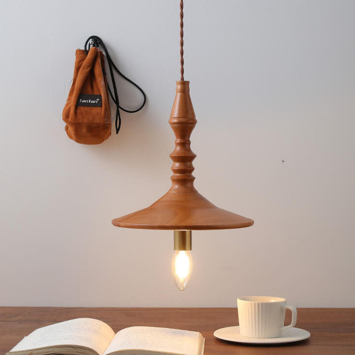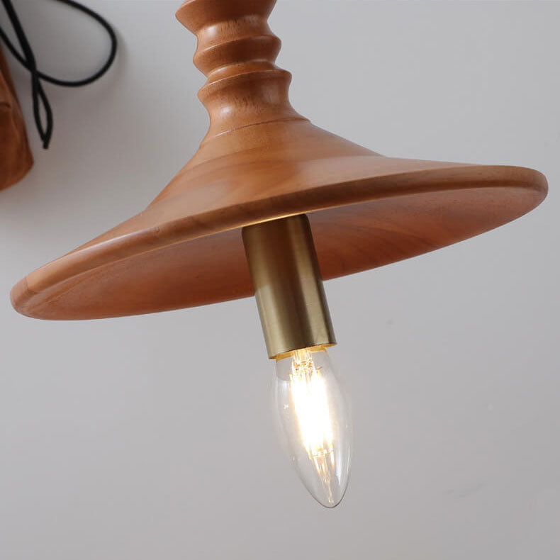 Japanese Vintage Brass Solid Wood Candlesticks Cone Plate 1-Light Pendant Light