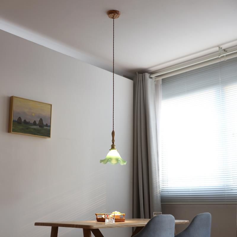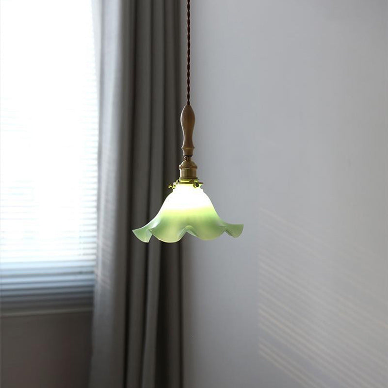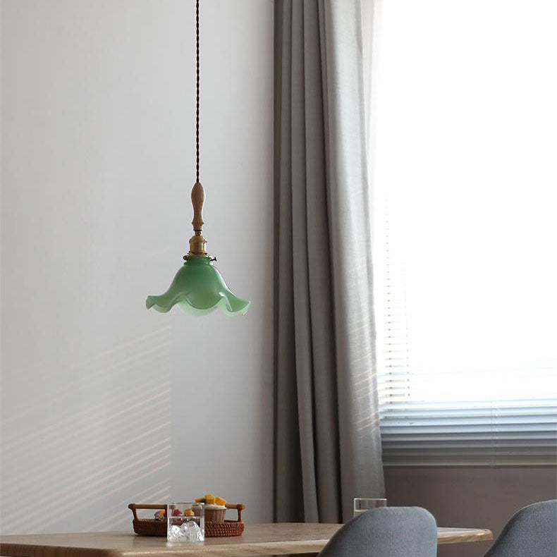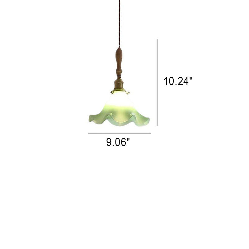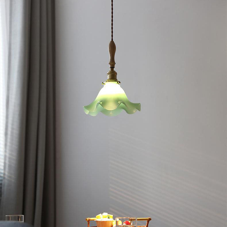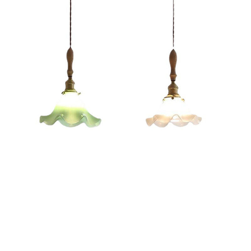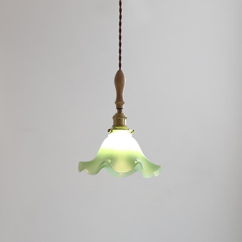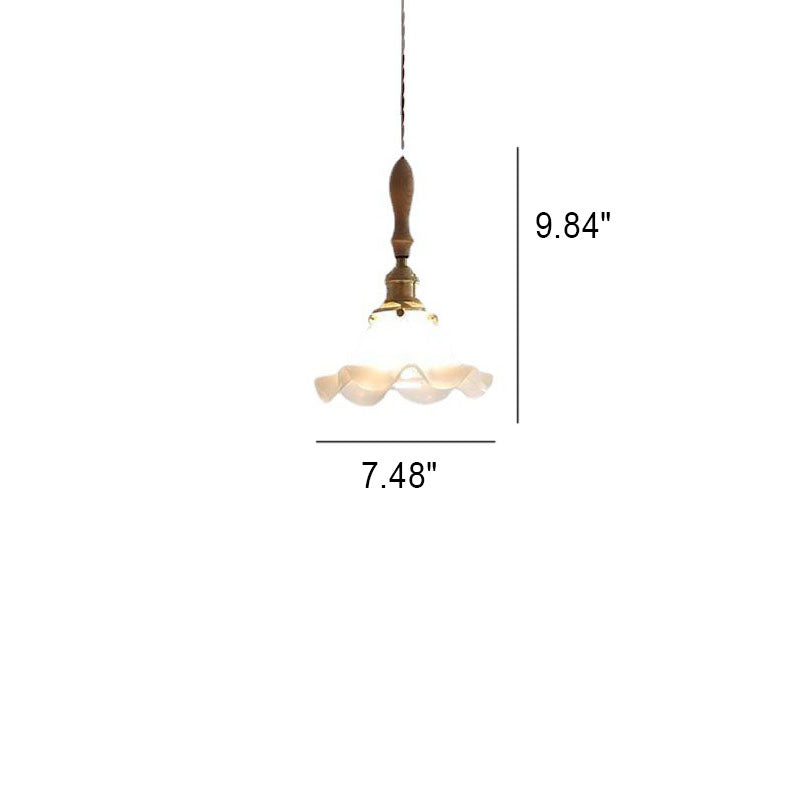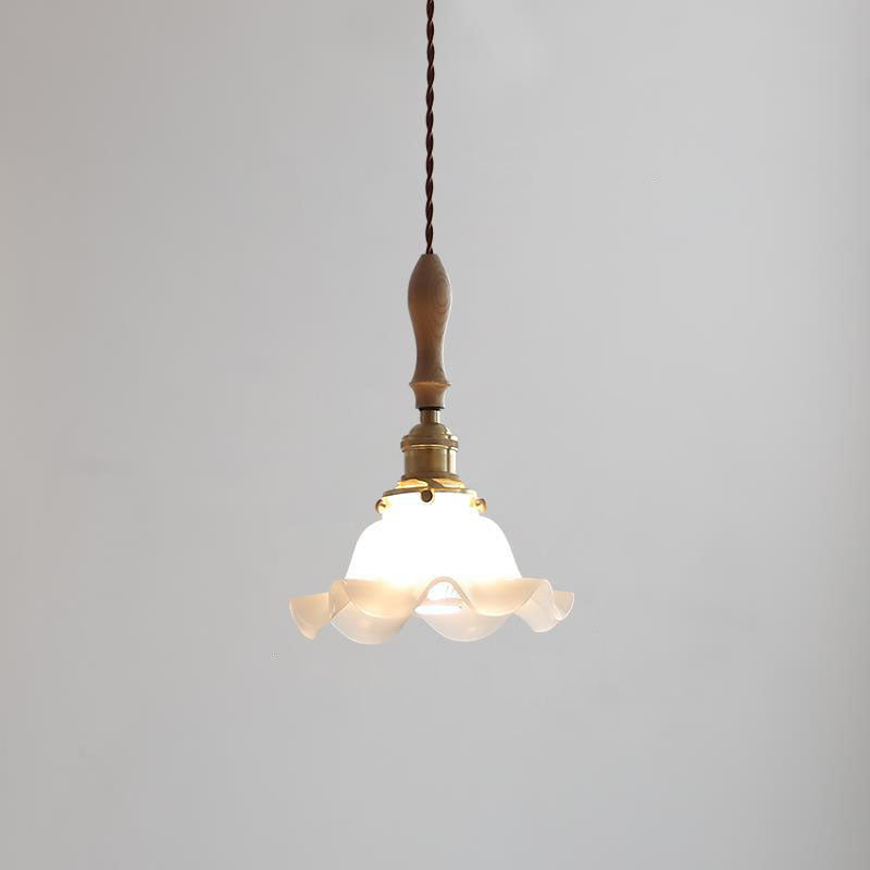 Japanese Vintage Glass Flower Petal Walnut 1-Light Pendant Light