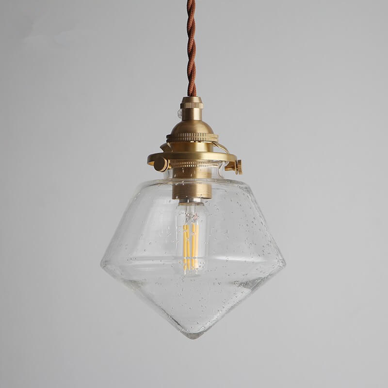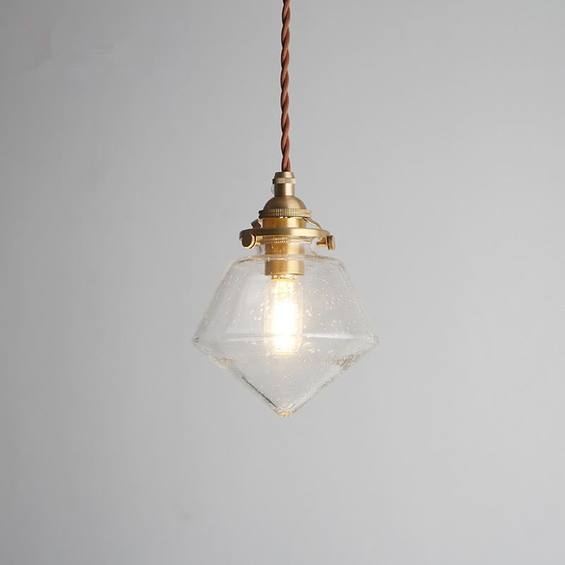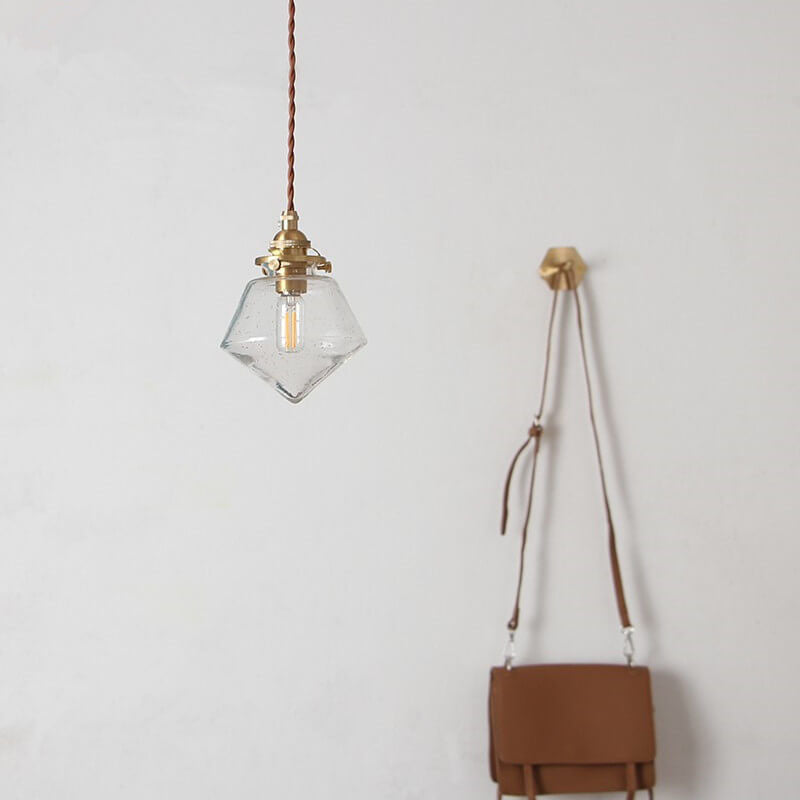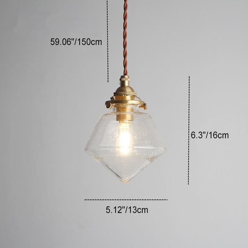 Japanese Vintage Rhombus Bubble Glass Jar 1-Light Pendant Light