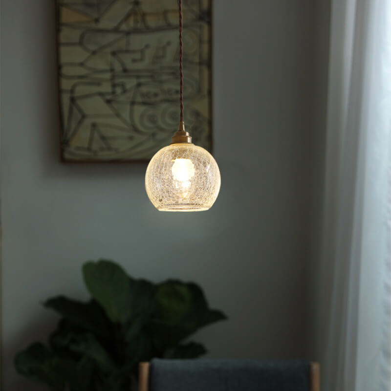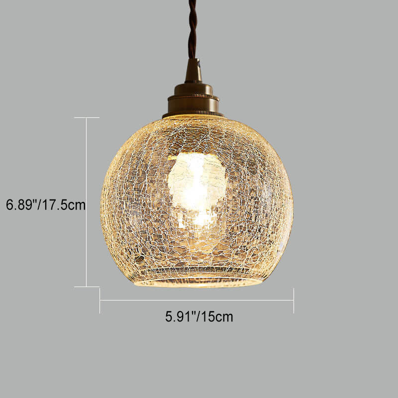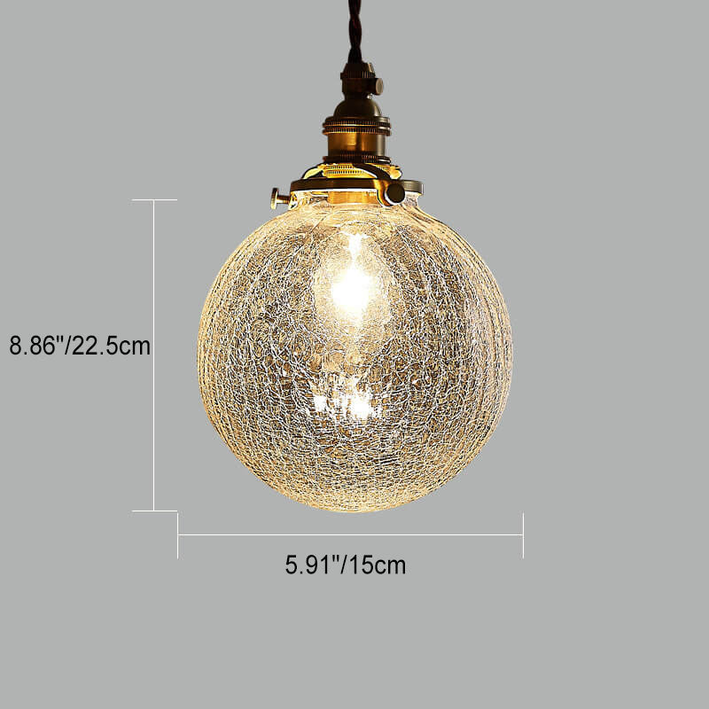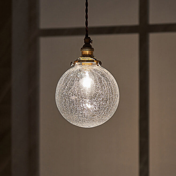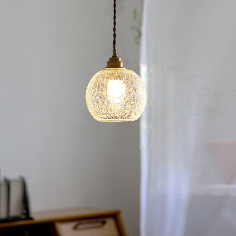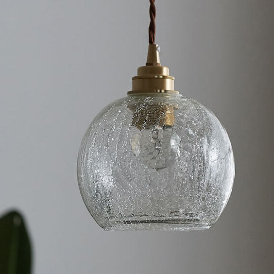 Japanese Vintage Round Crackle Glass Brass 1-Light Pendant Light