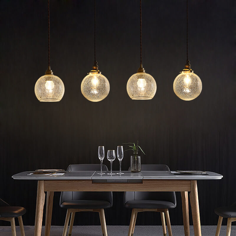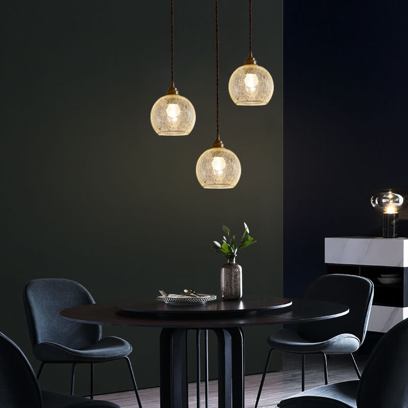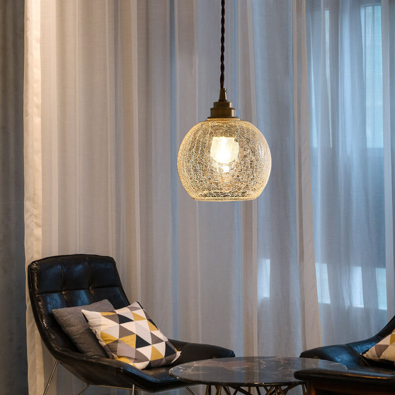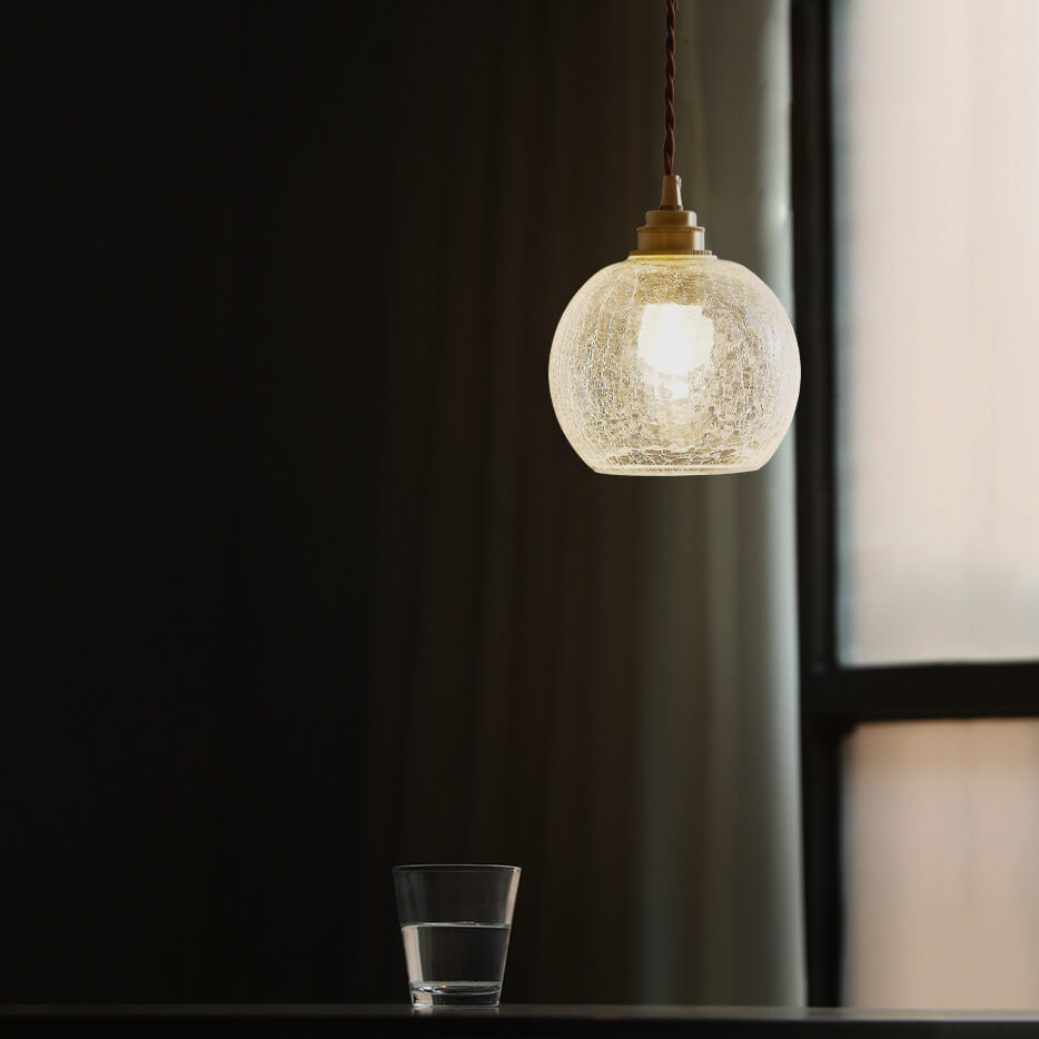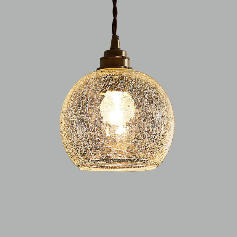 Japanese Vintage Round Crackle Glass Brass 1-Light Pendant Light