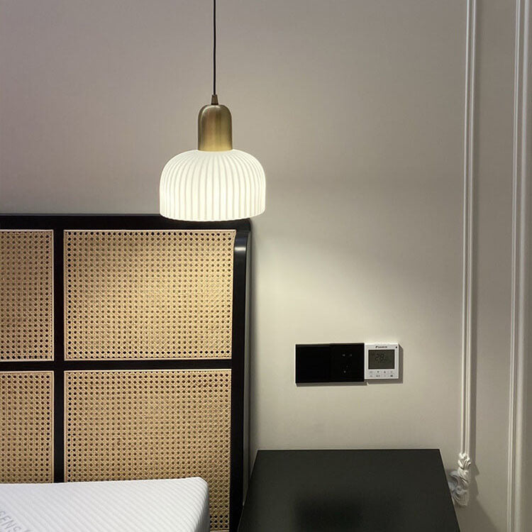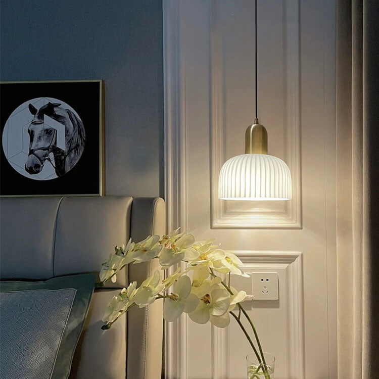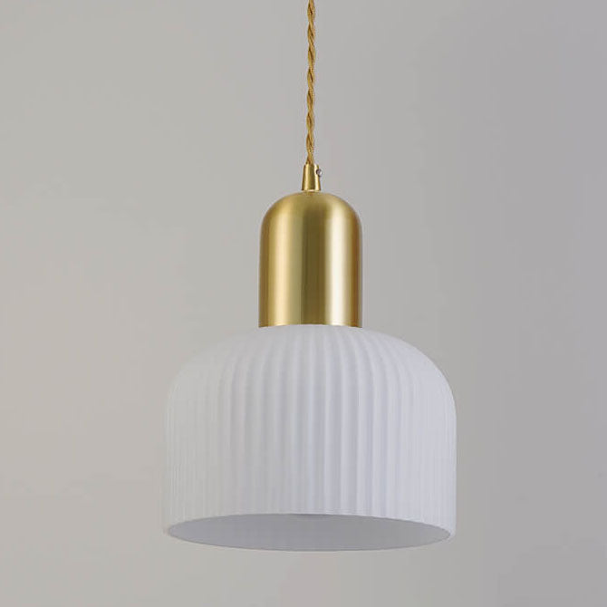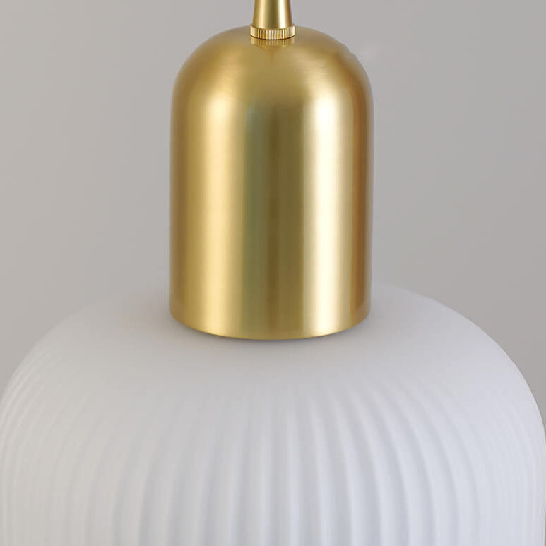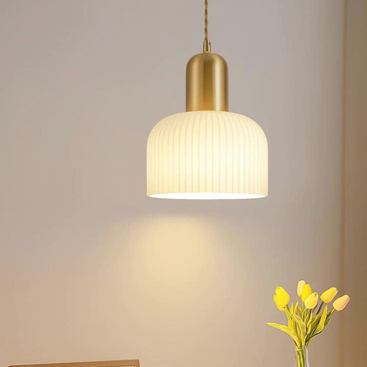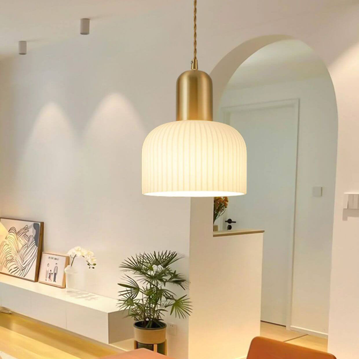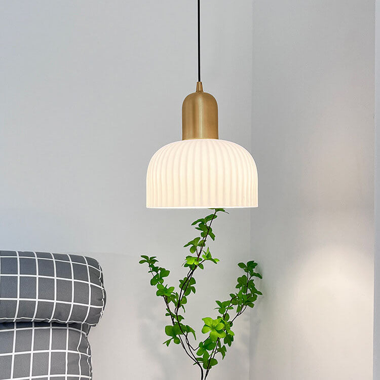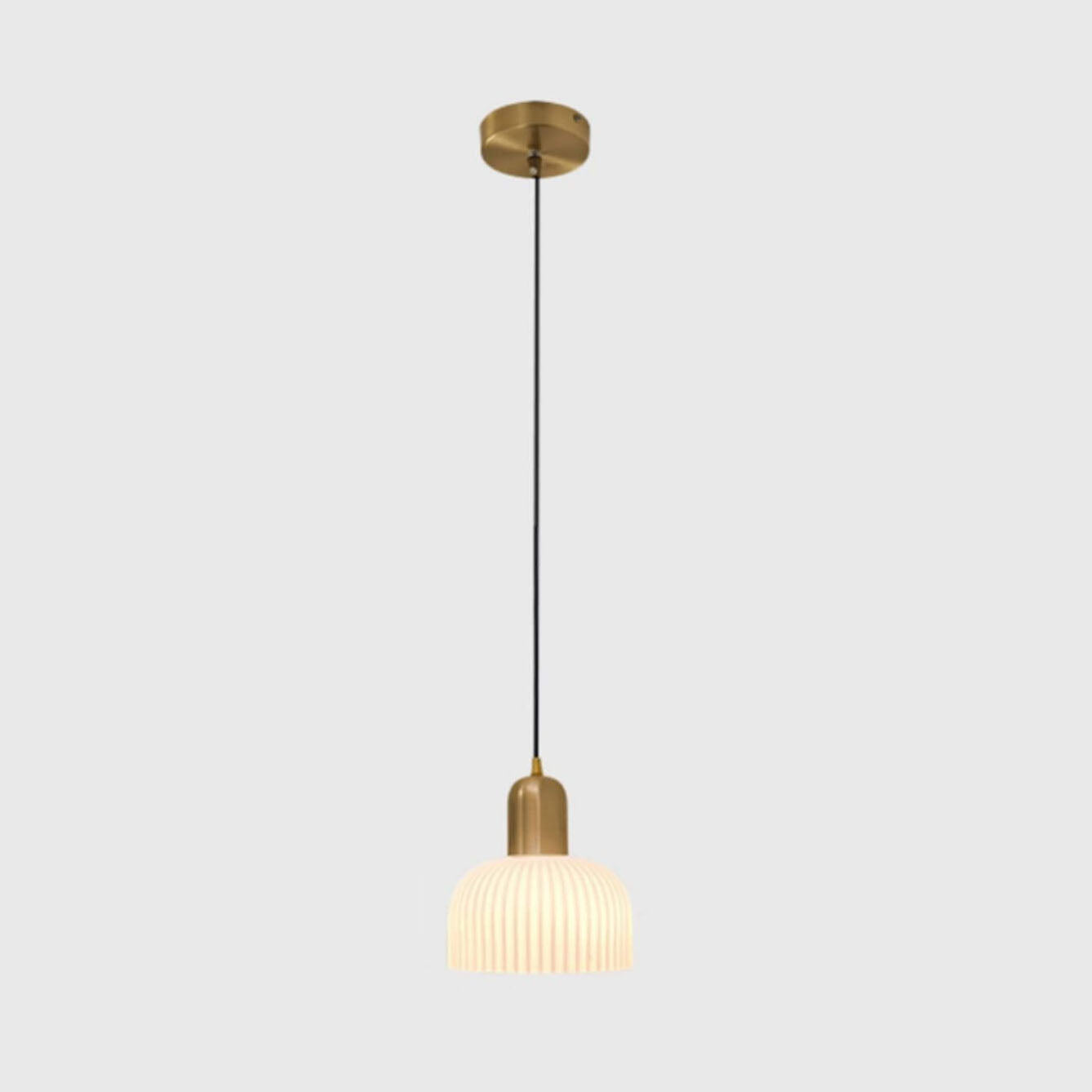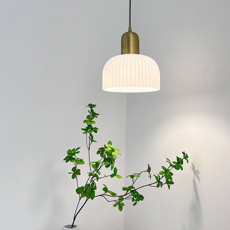 Japanese Wabi-Sabi Brass Semi-circle Pleated Glass 1-Light Pendant Light