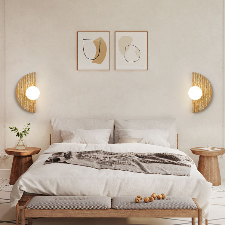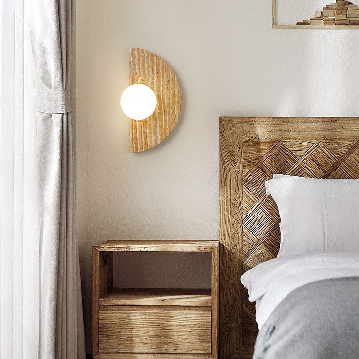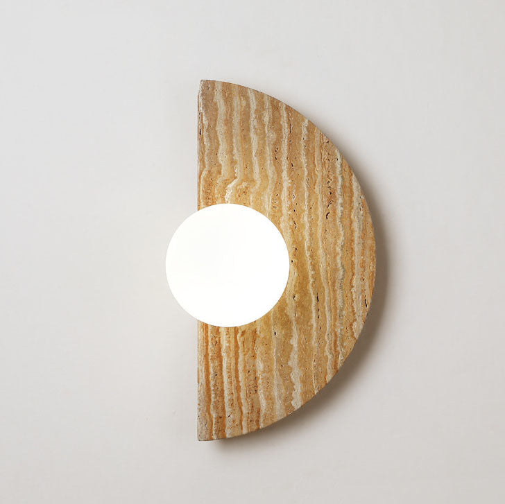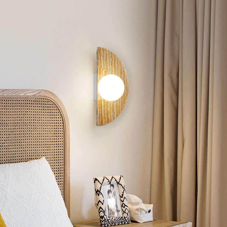 Japanese Wabi-sabi Semi-circular Stone Glass 1-Light Wall Sconce Lamp