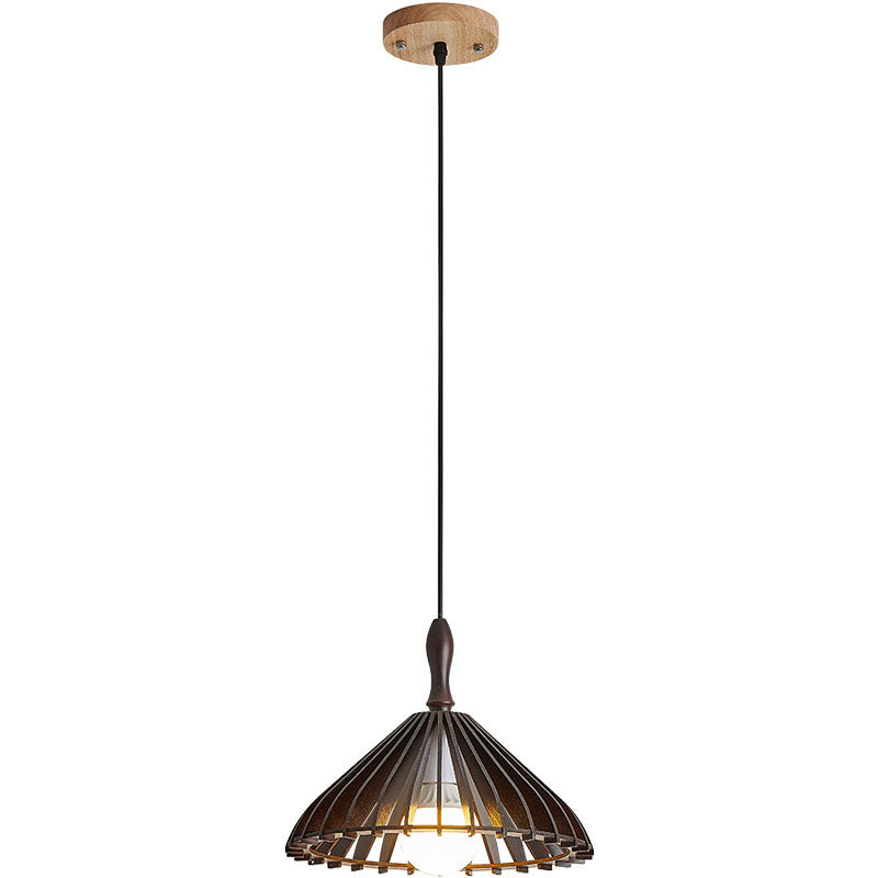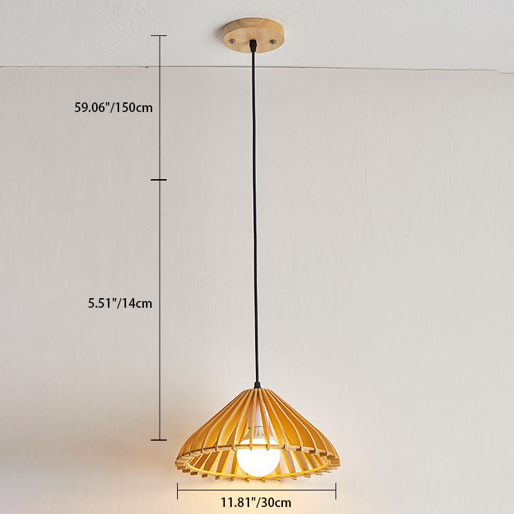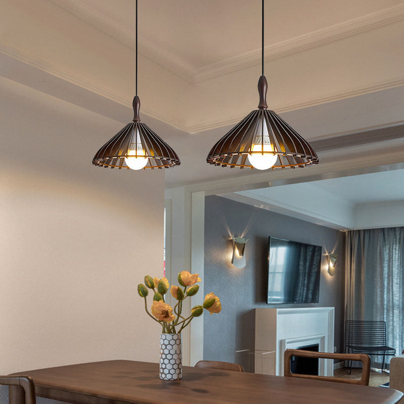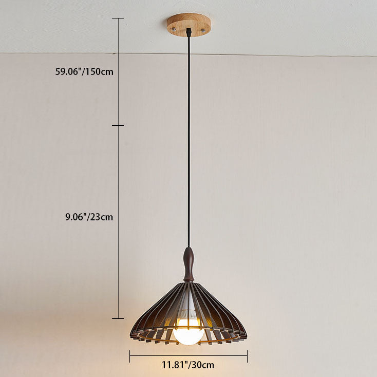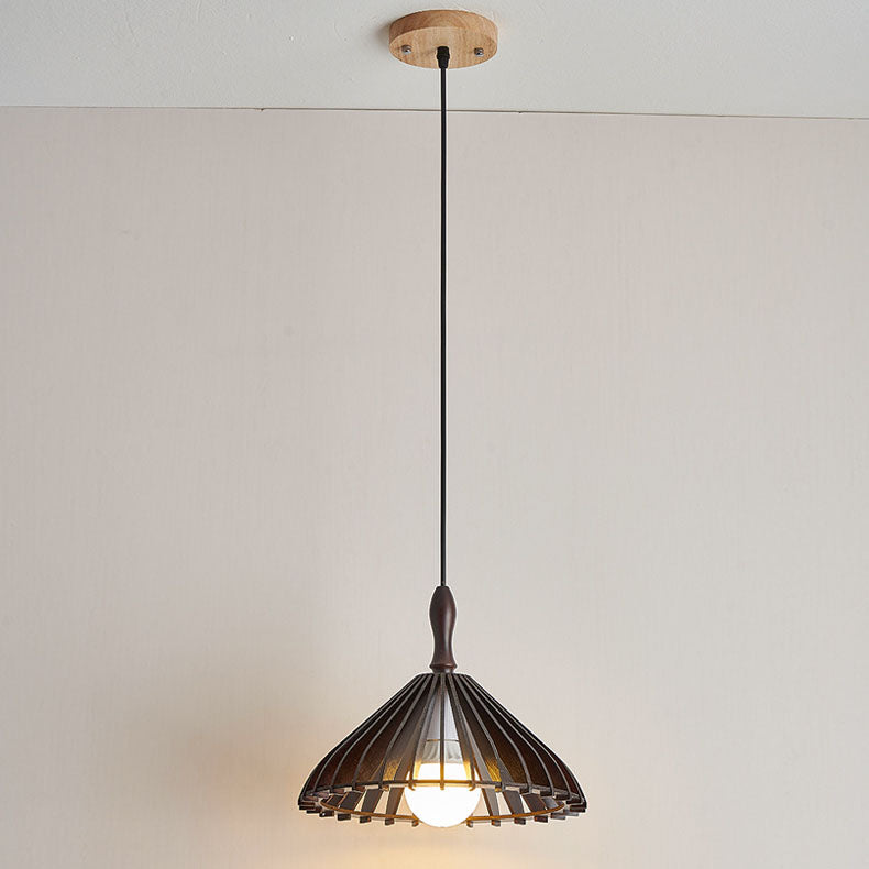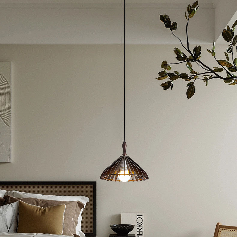 Japanese Wabi-Sabi Style Walnut Tapered Hollow 1-Light Pendant Light