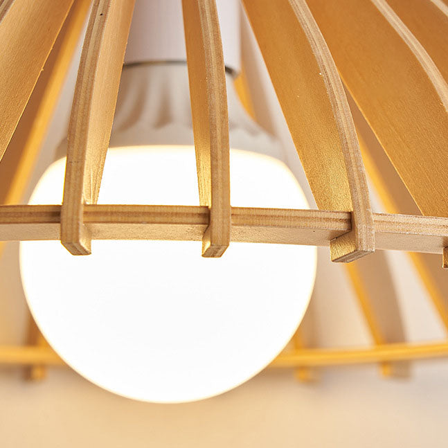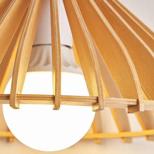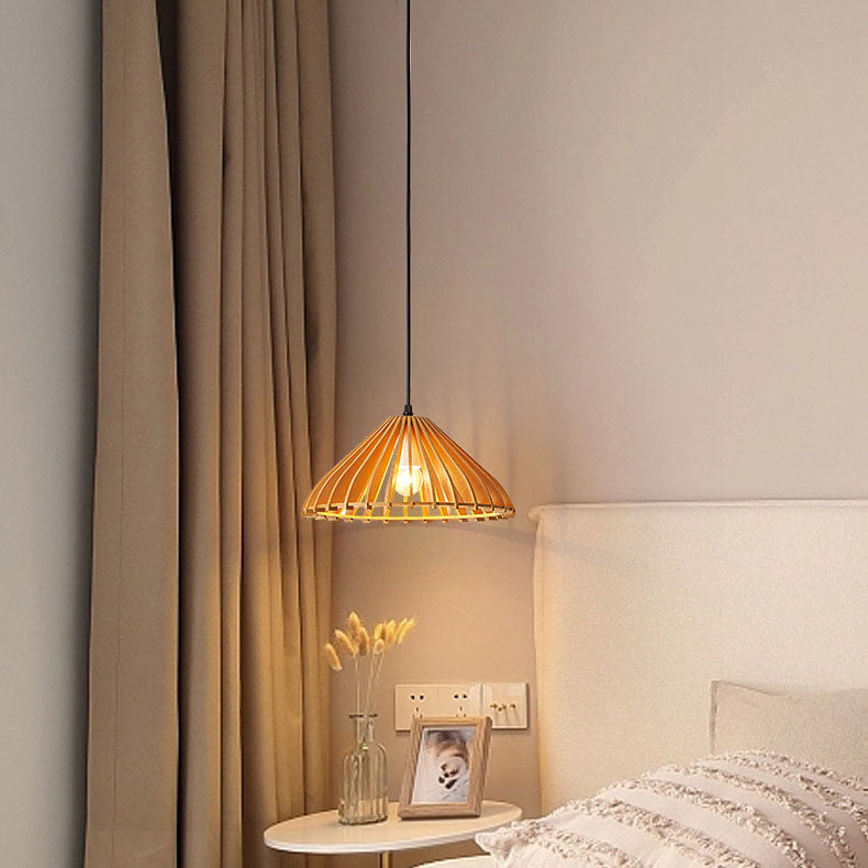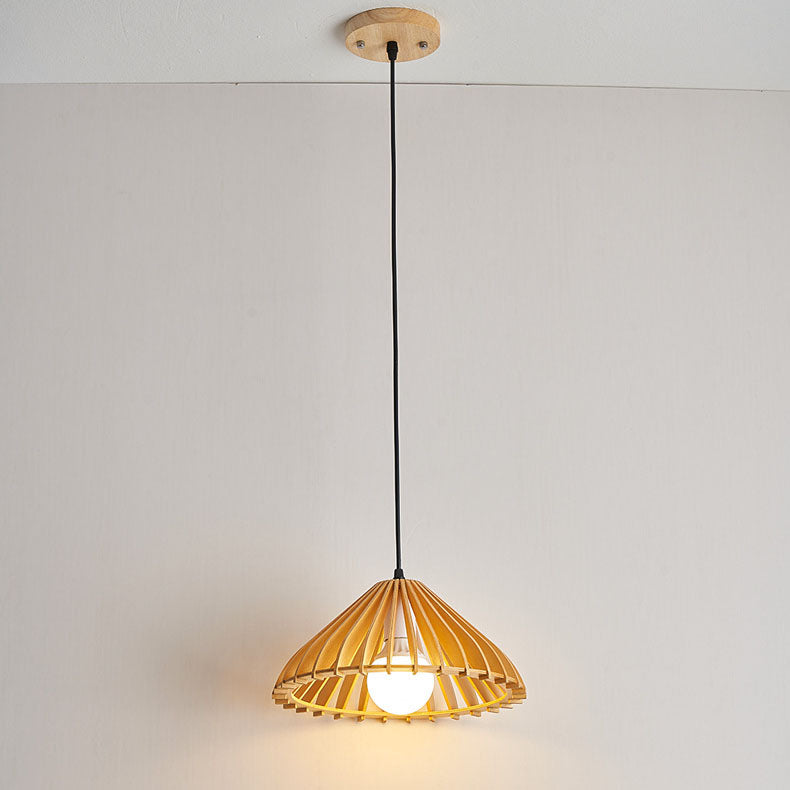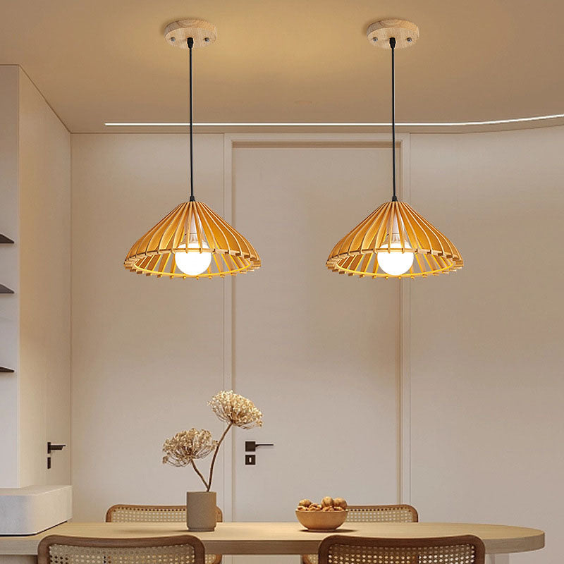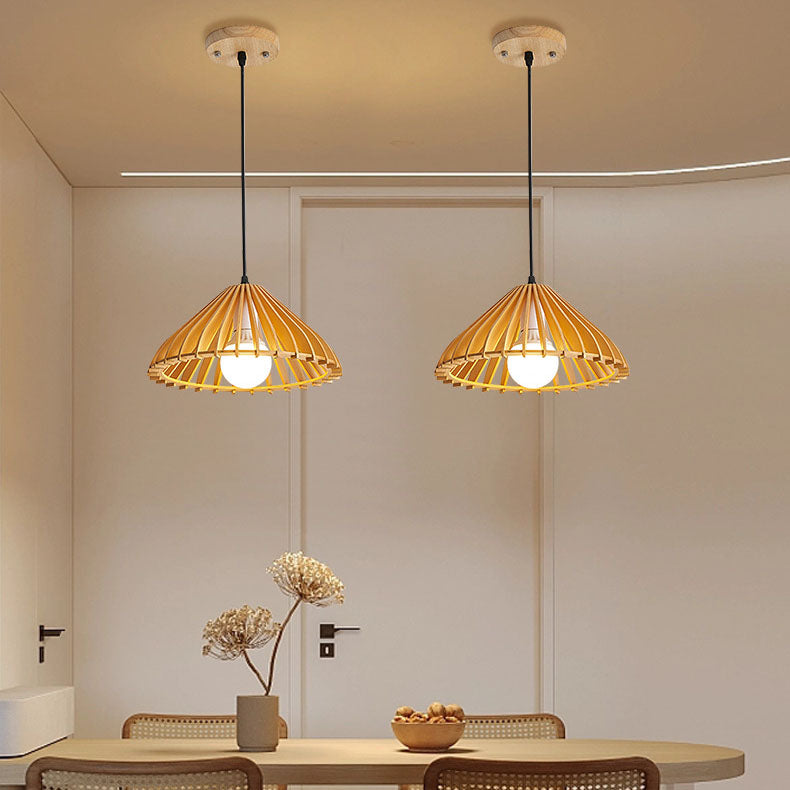 Japanese Wabi-Sabi Style Walnut Tapered Hollow 1-Light Pendant Light
