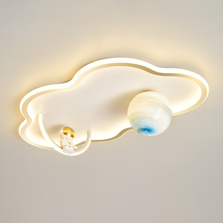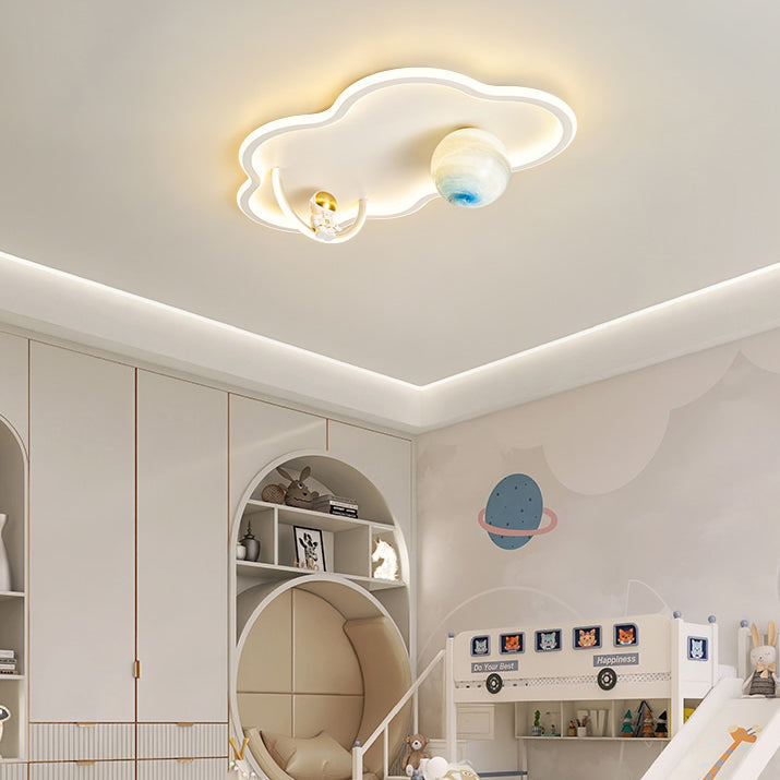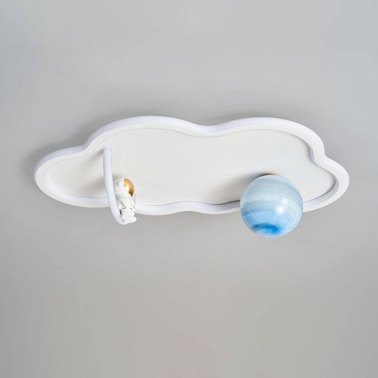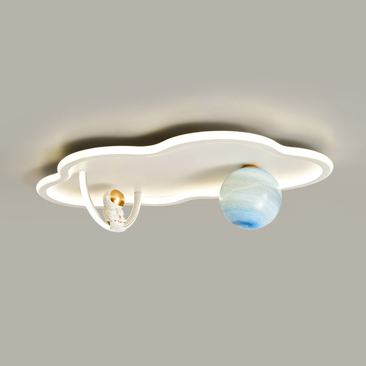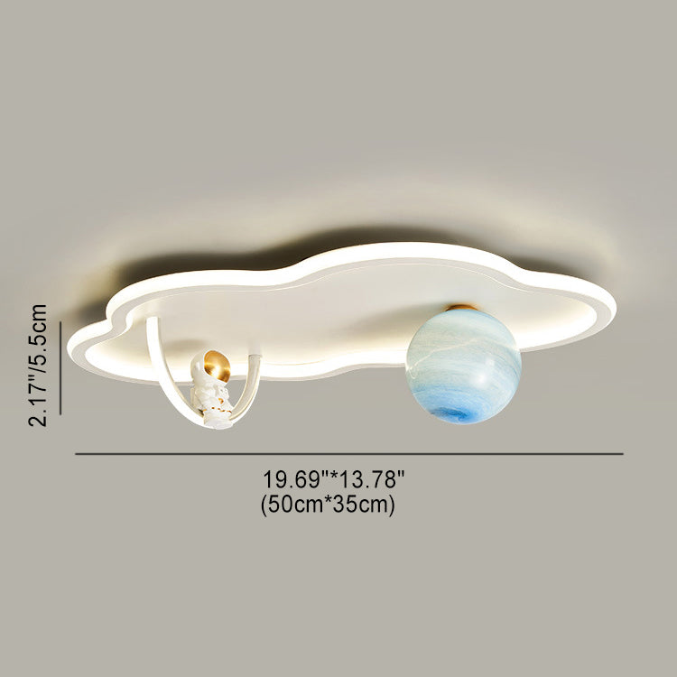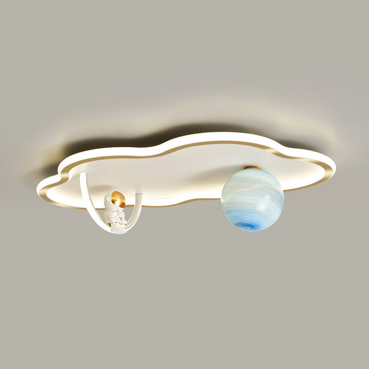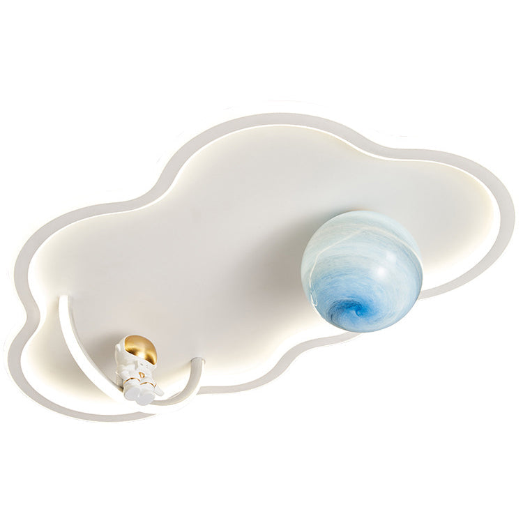 Modern Art Deco Astronaut Moon Round Cloud Silicone Aluminum Iron LED Flush Mount Ceiling Light For Bedroom