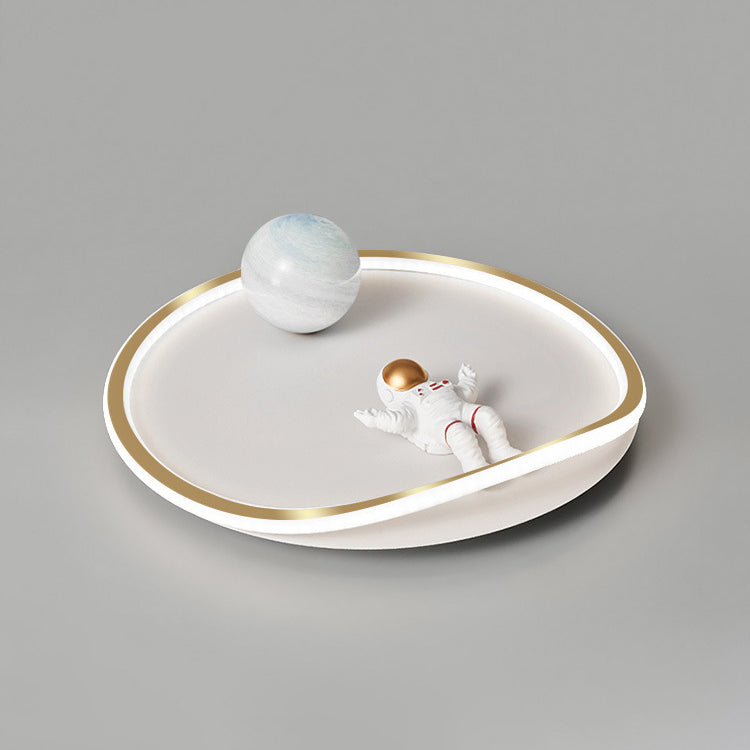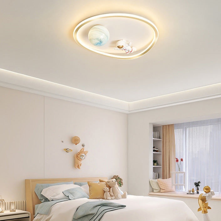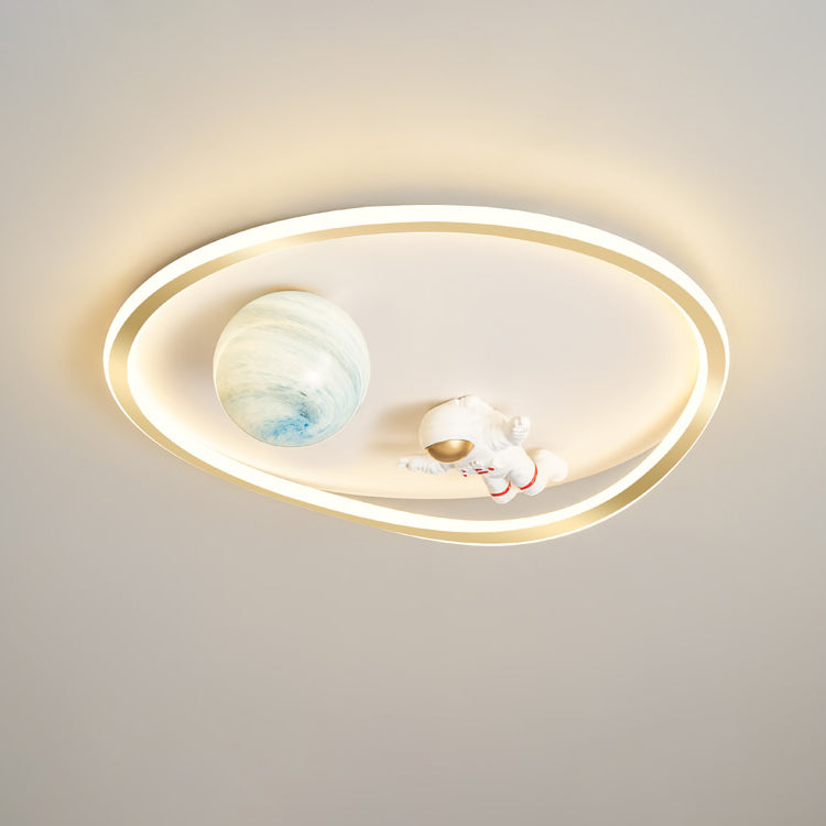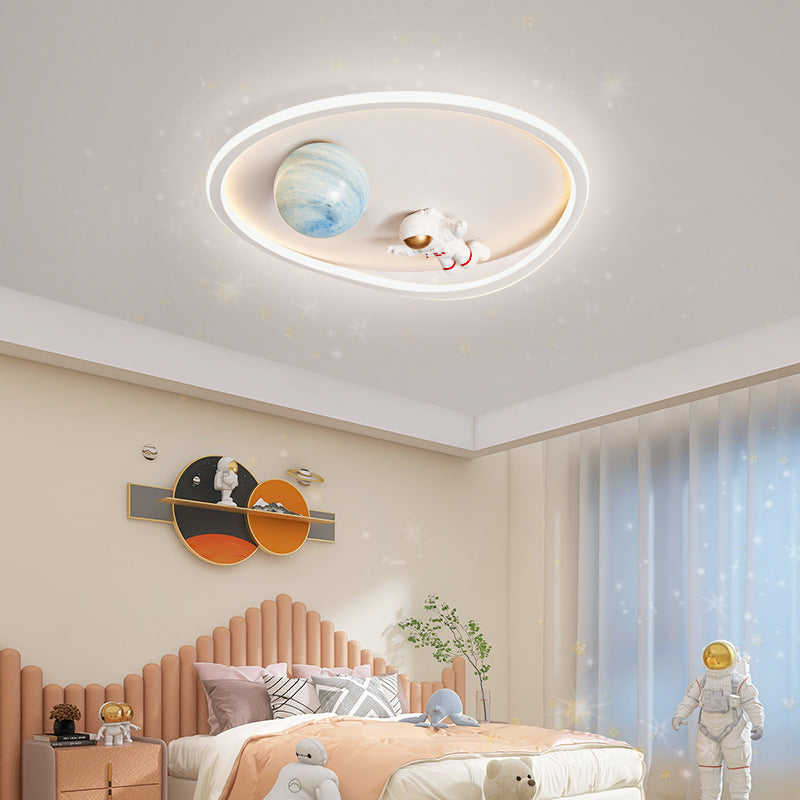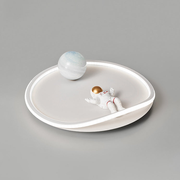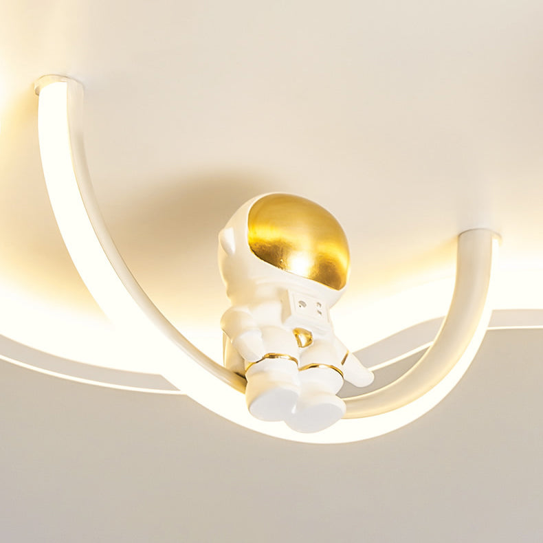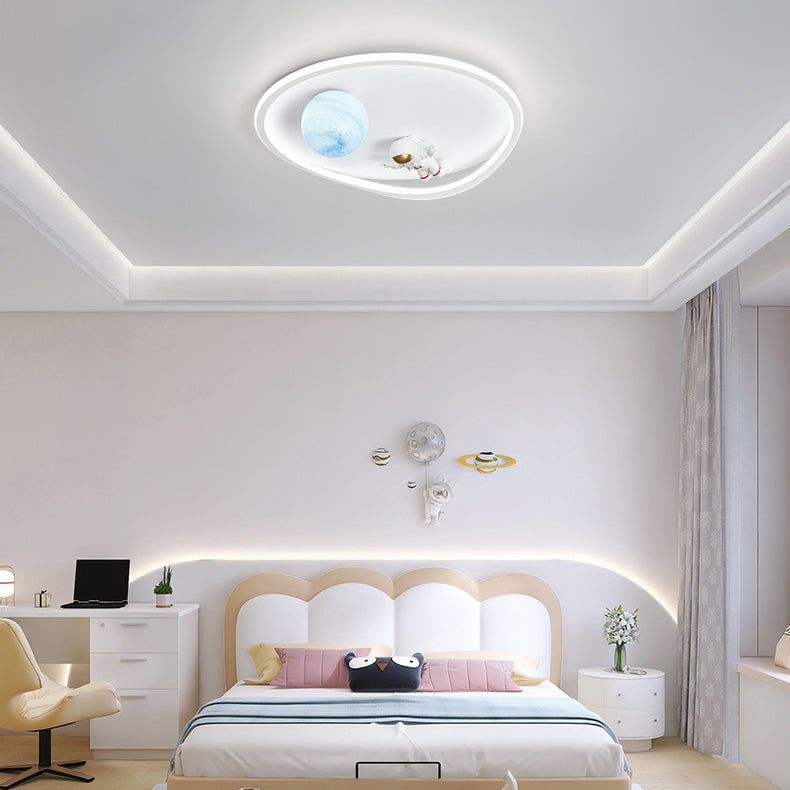 Modern Art Deco Astronaut Moon Round Cloud Silicone Aluminum Iron LED Flush Mount Ceiling Light For Bedroom