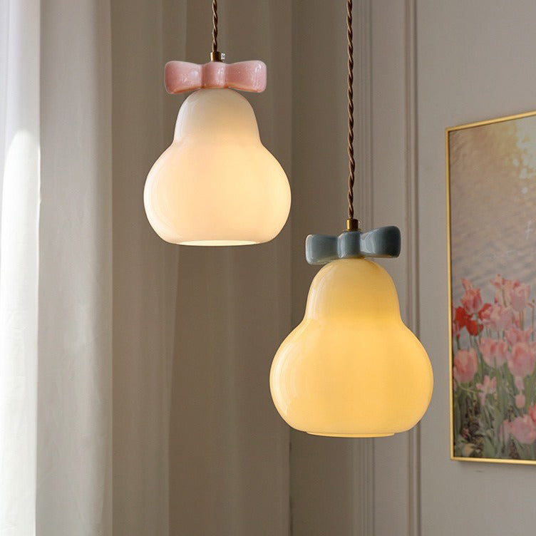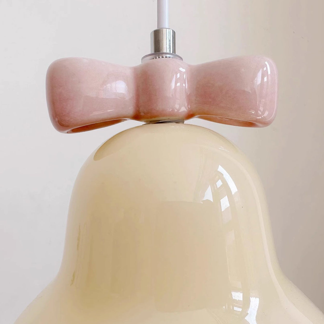 Modern Art Deco Bow Bells Iron Ceramic Glass 1-Light Pendant Light For Living Room