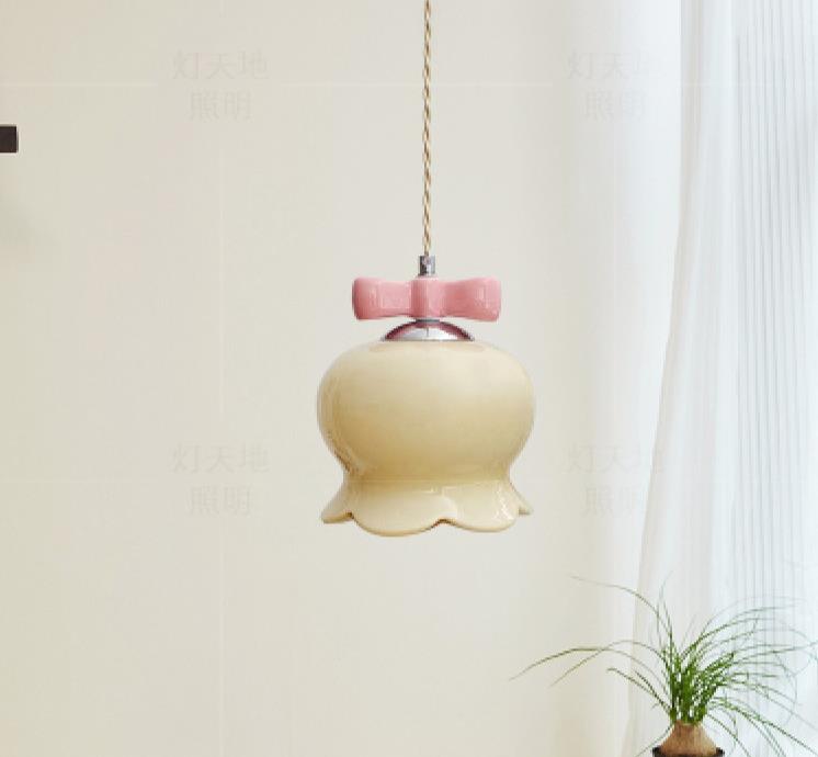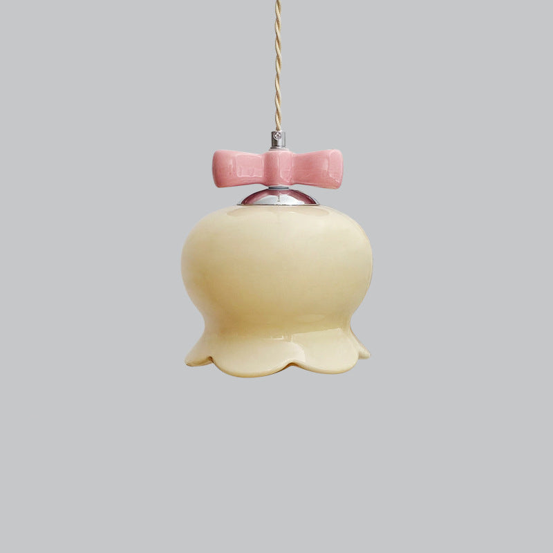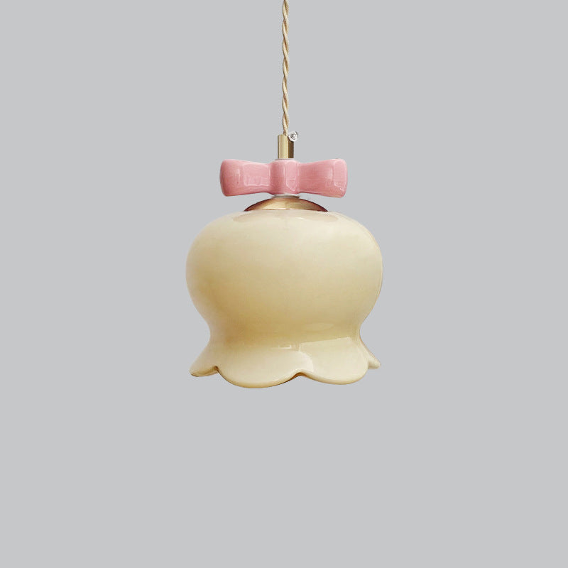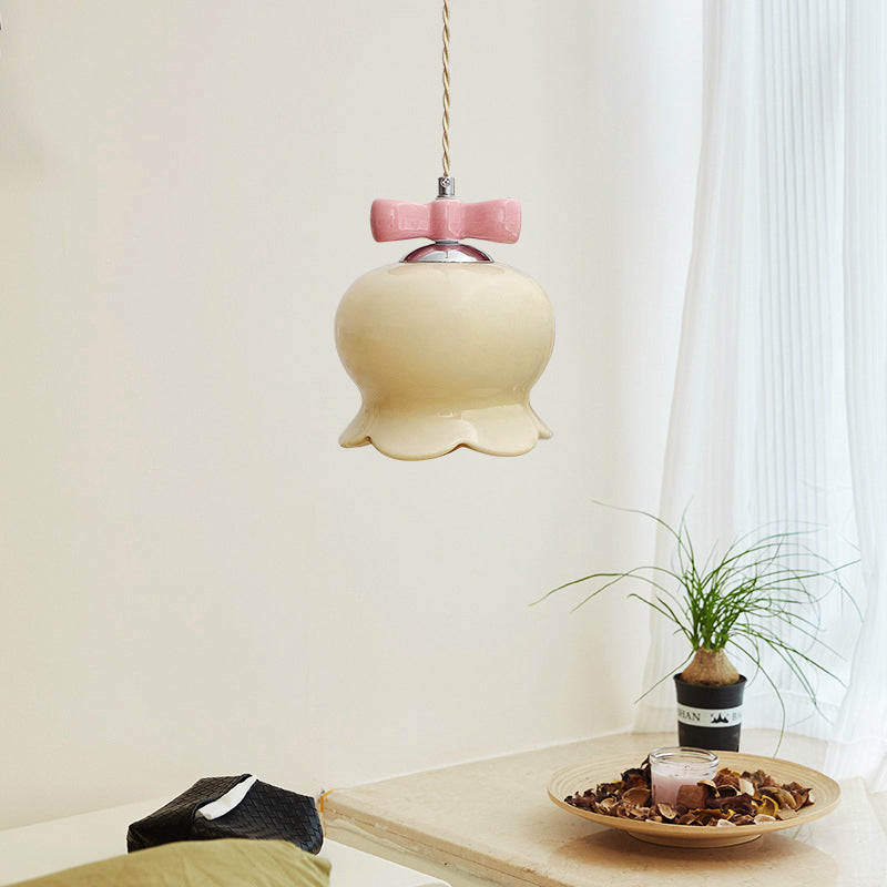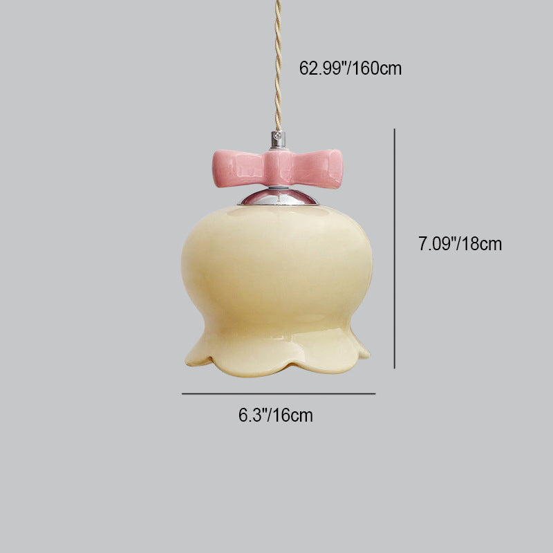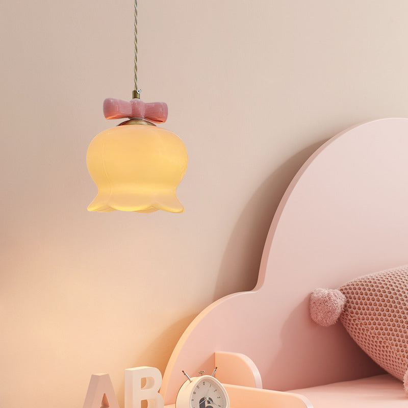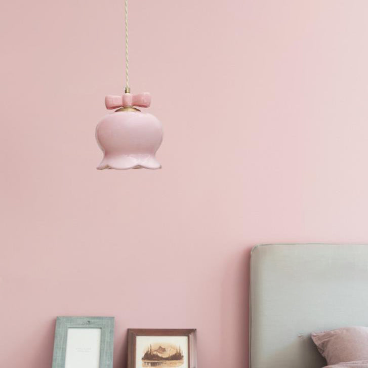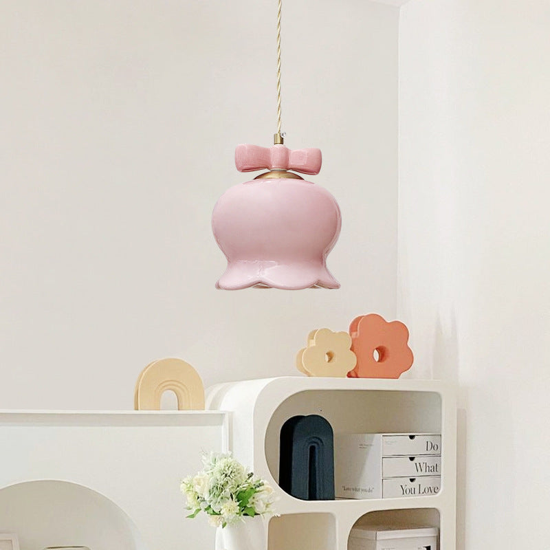 Modern Art Deco Bow Tie Bell Orchid Flower Shade 1-Light Pendant Light For Bedroom