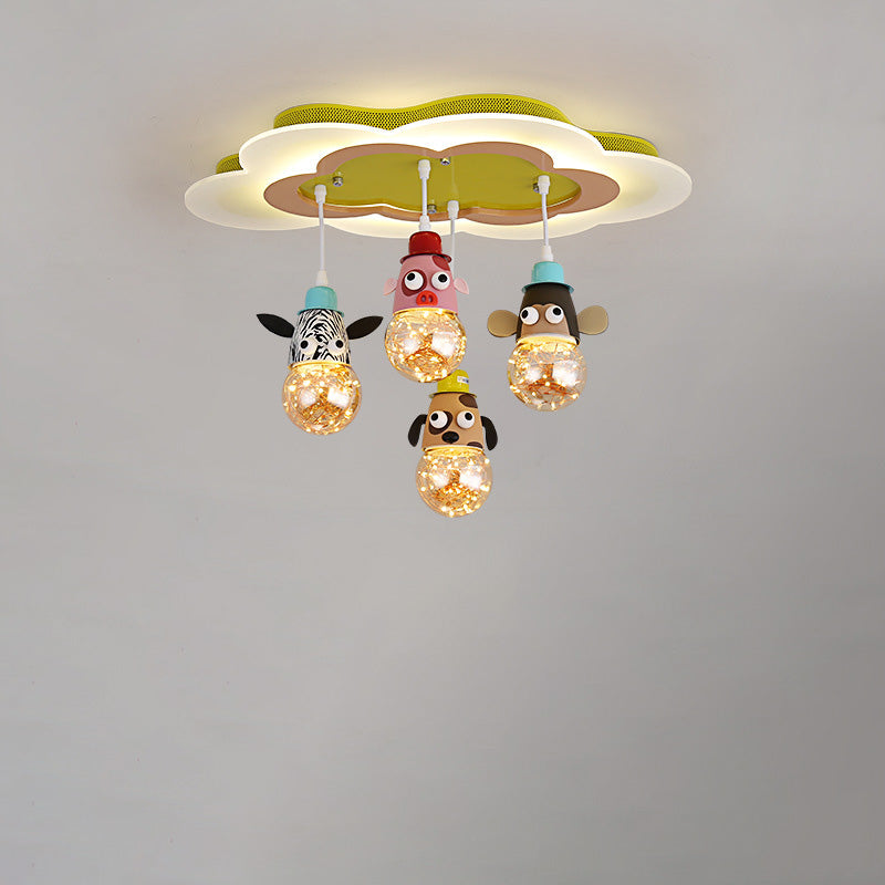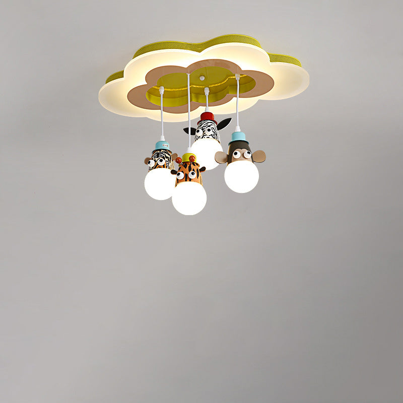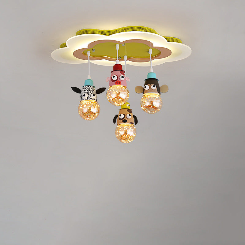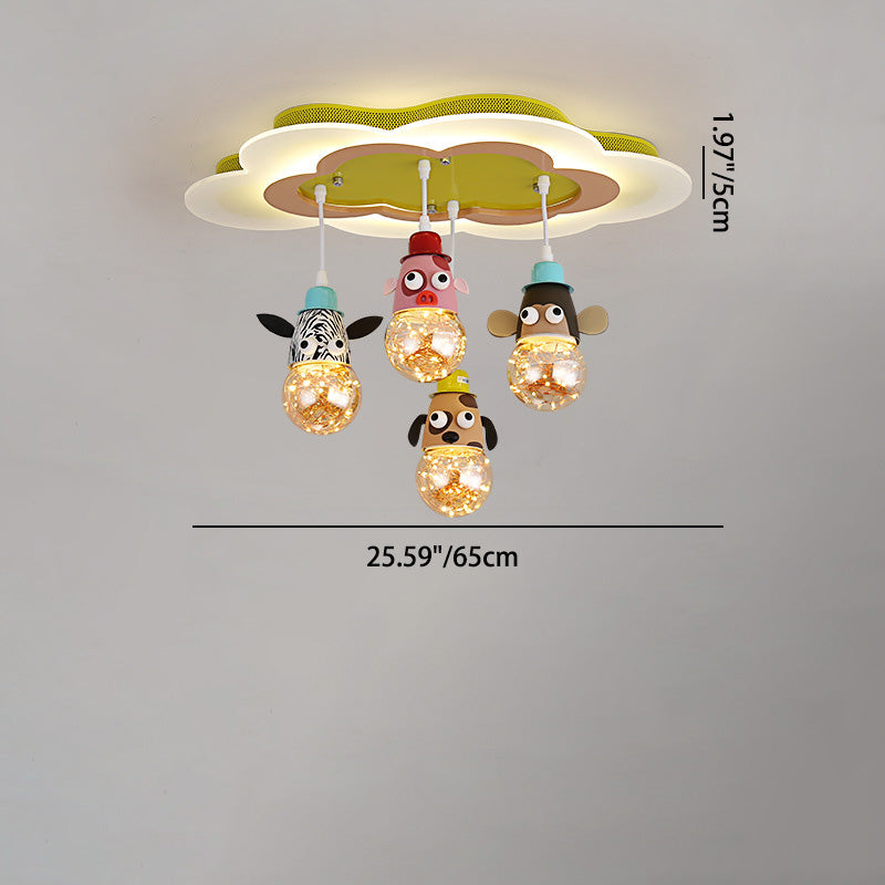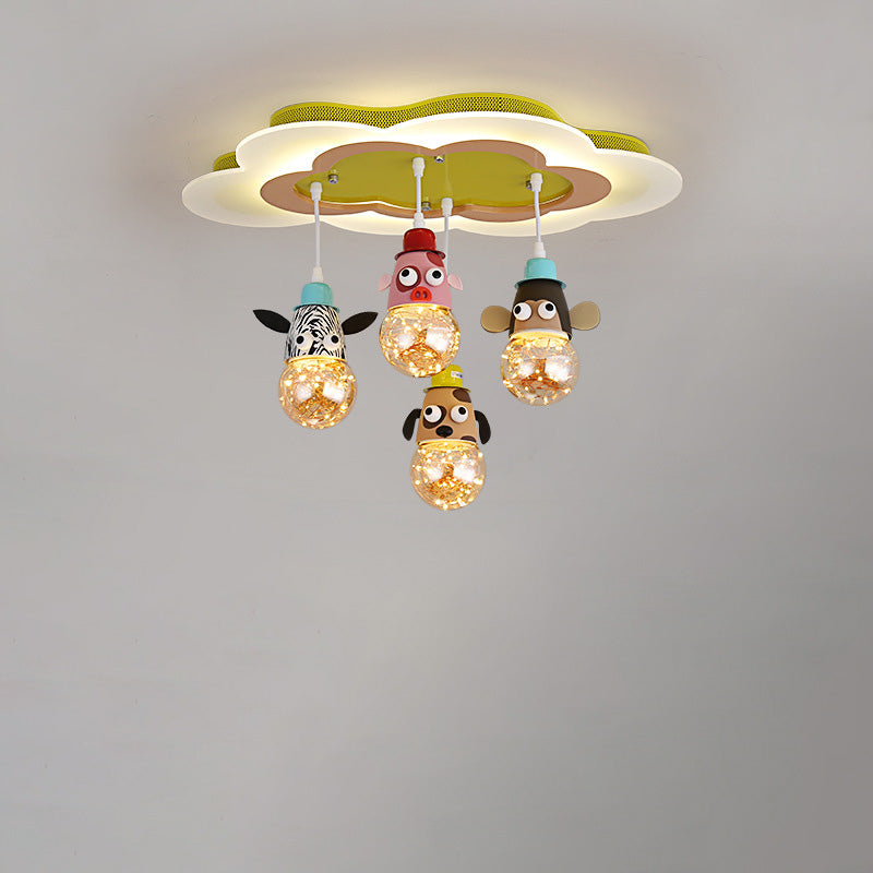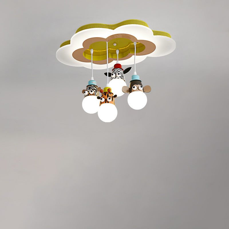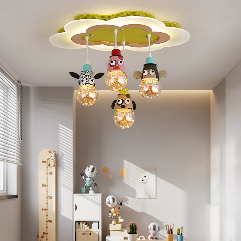 Modern Art Deco Cartoon Clouds Glass Iron LED Flush Mount Ceiling Light For Living Room