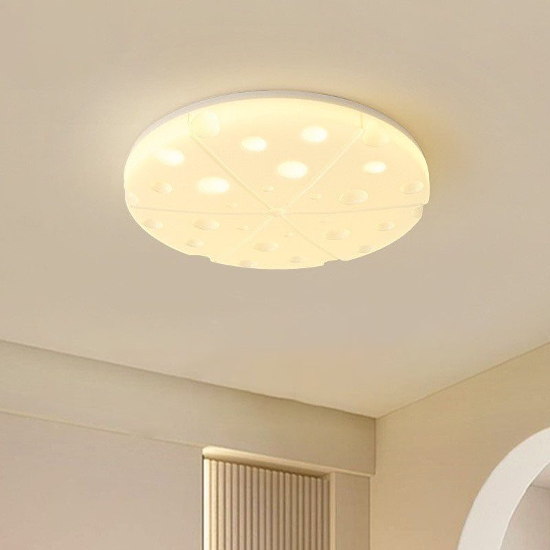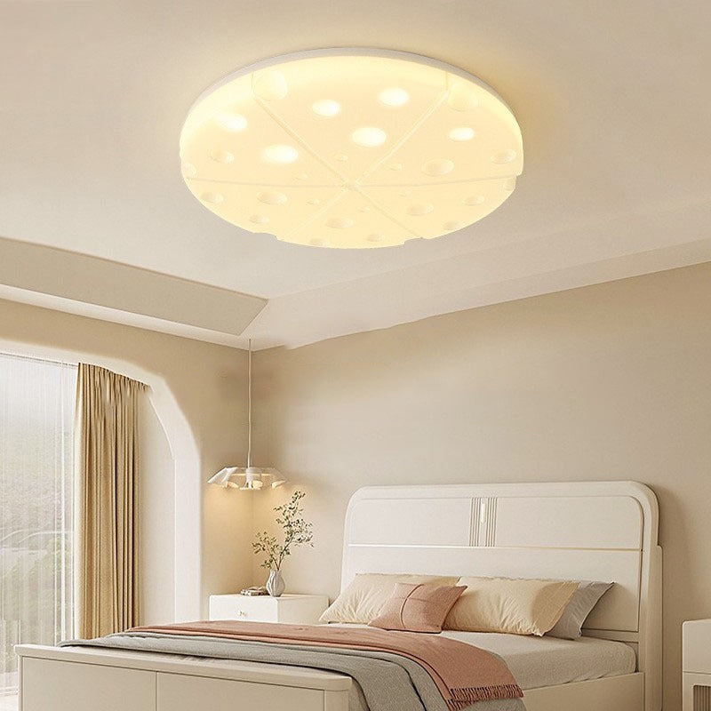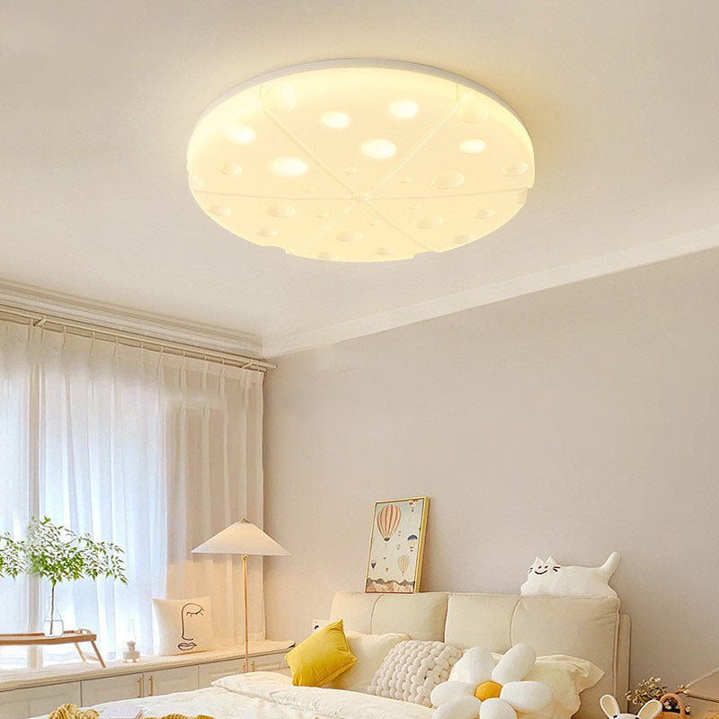 Modern Art Deco Cheese Round Dome Iron Rotational Molding LED Flush Mount Ceiling Light For Bedroom