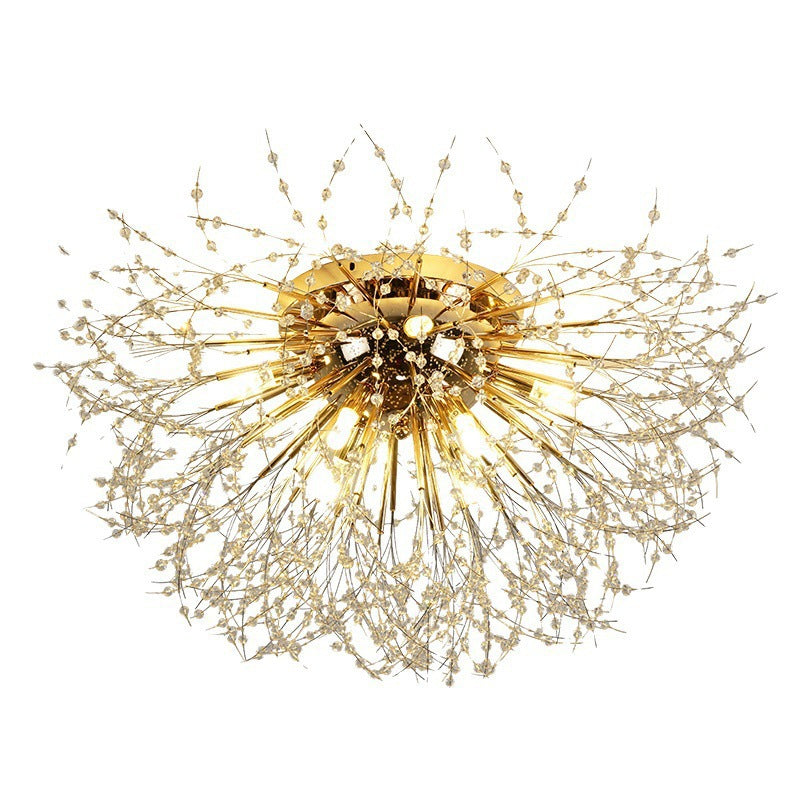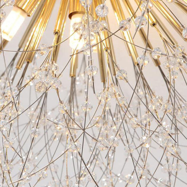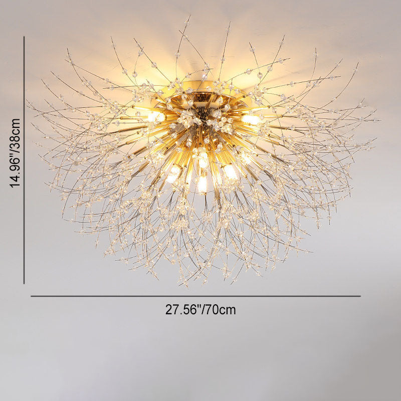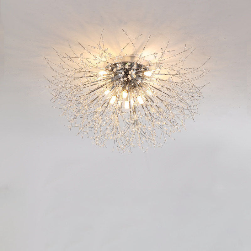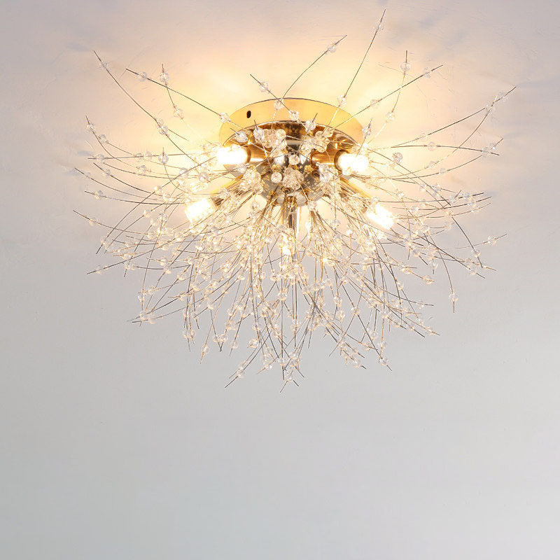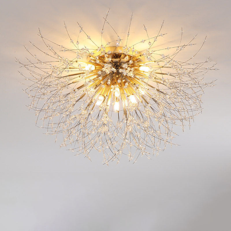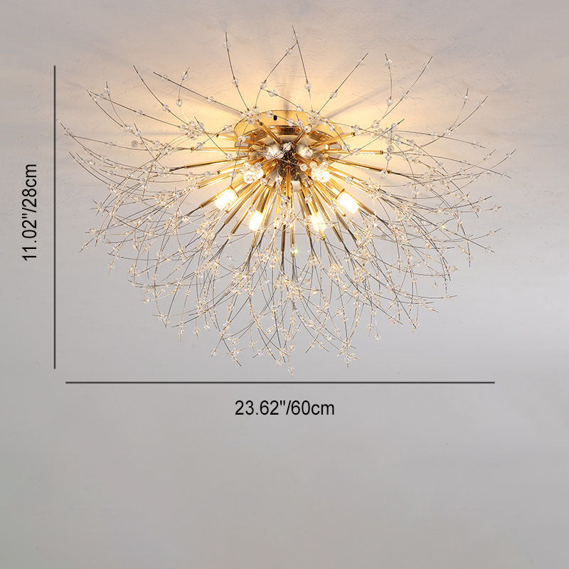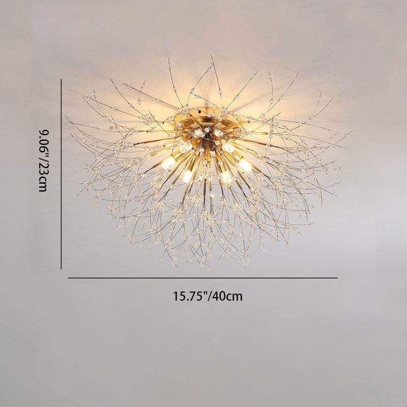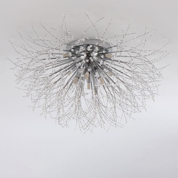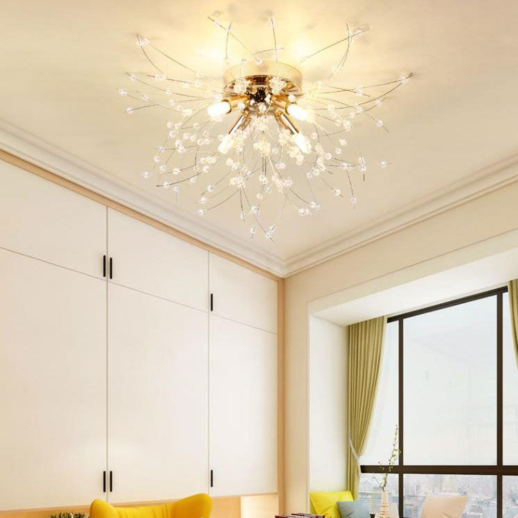 Modern Art Deco Crystal Beads Dandelion Aluminum Strip Shape 4/5/6/8-Light Semi-Flush Mount Ceiling Light For Living Room