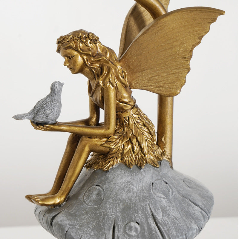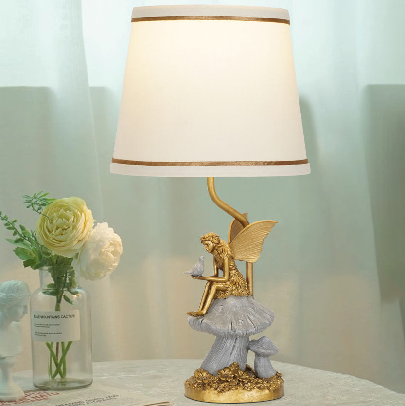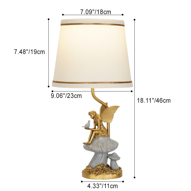Modern Art Deco Cylinder Angel Resin Fabric Hardware 1-Light Table Lamp For Bedroom
