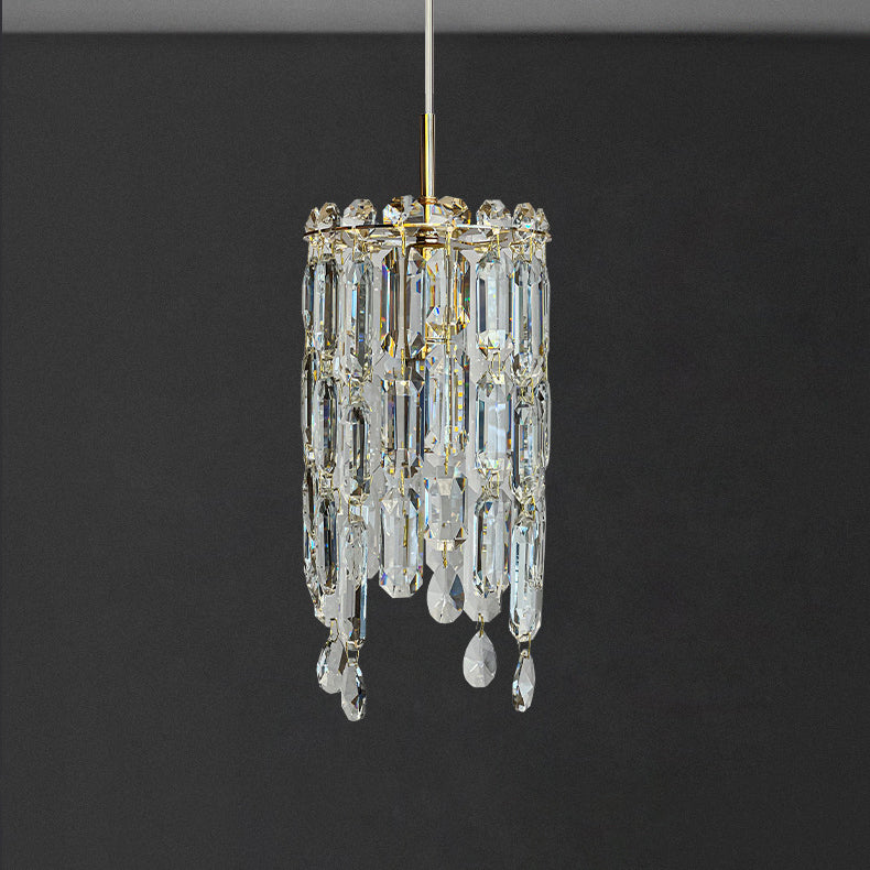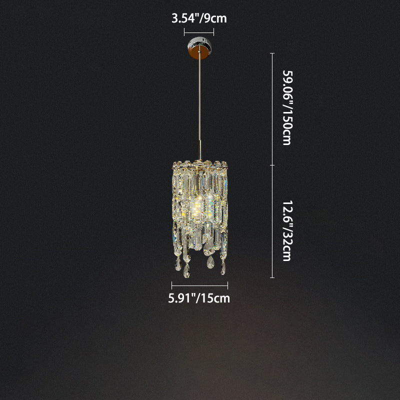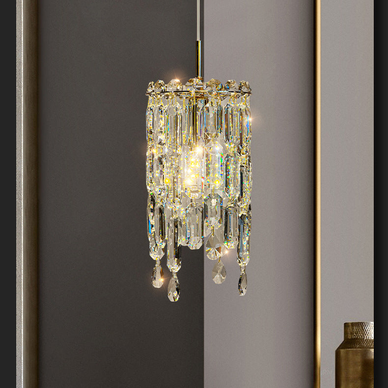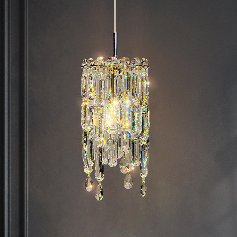 Modern Art Deco Cylinder Hardware Crystal 1-Light Pendant Light For Living Room