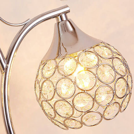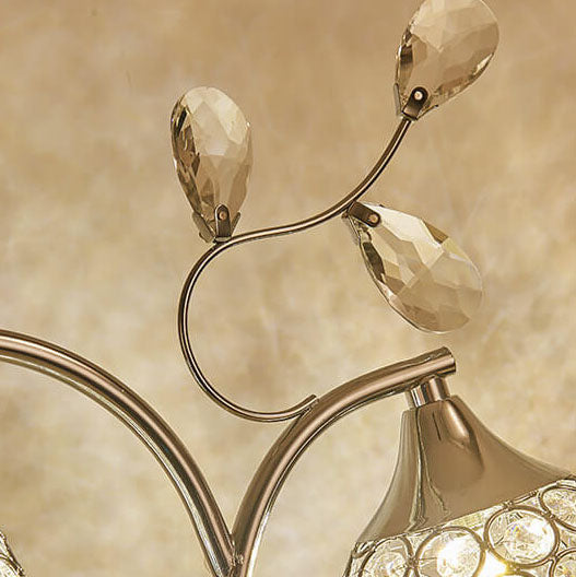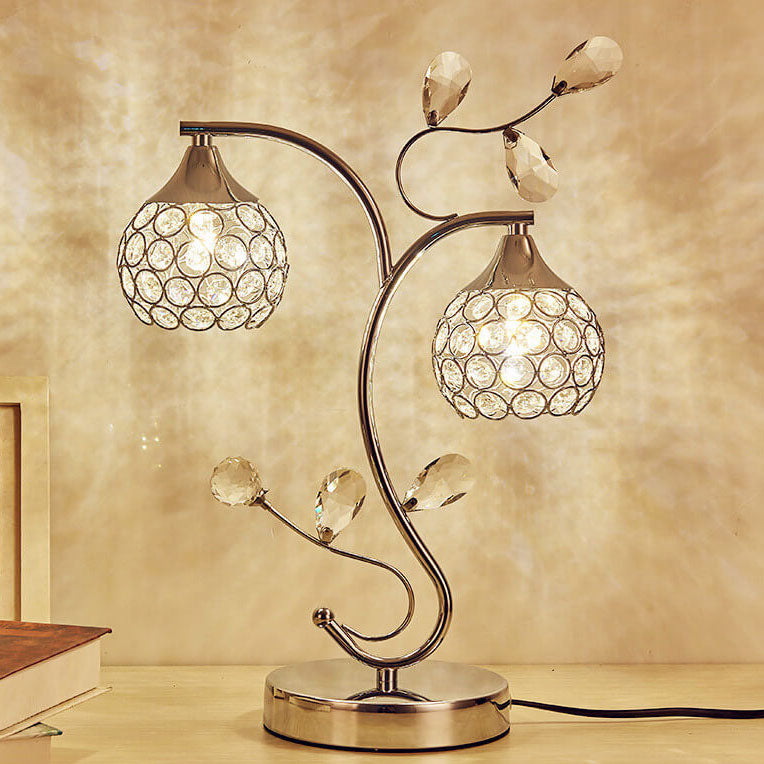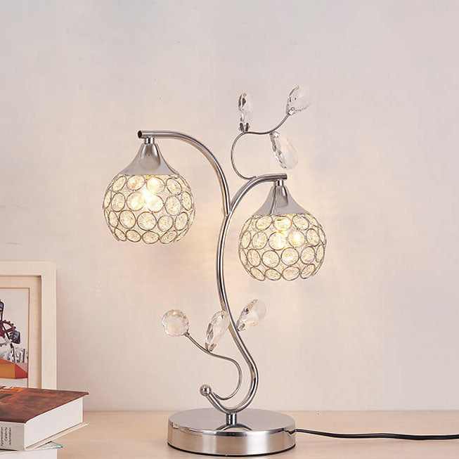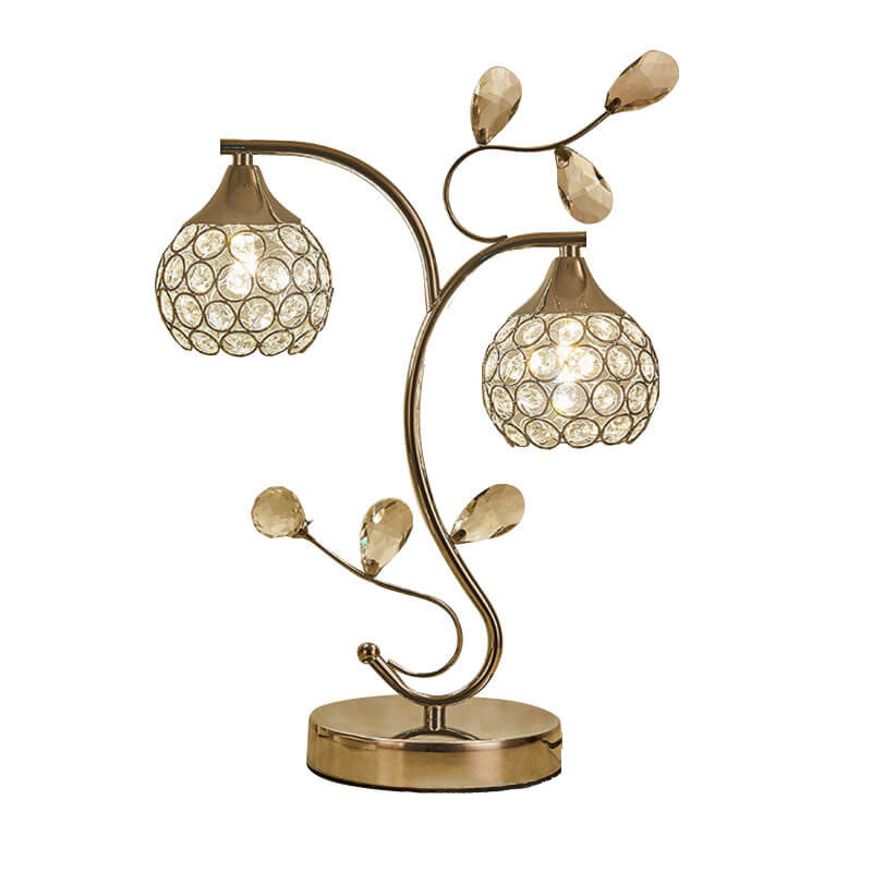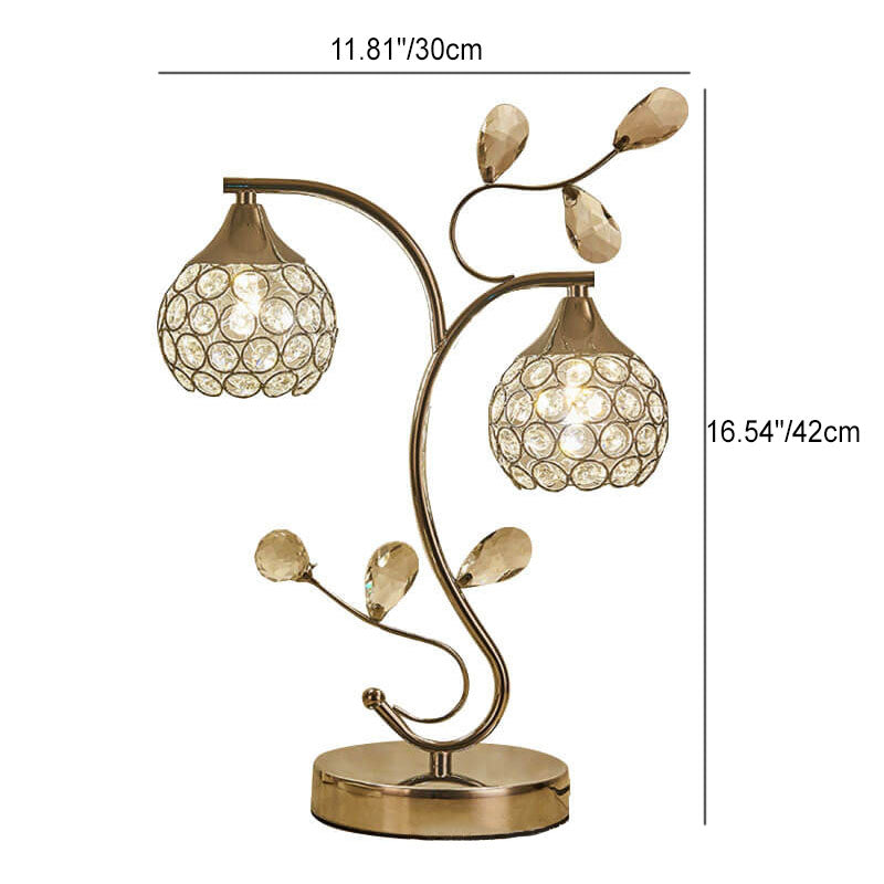 Modern Art Deco Floral Branch Design Crystal Iron 2-Light Table Lamp For Bedroom