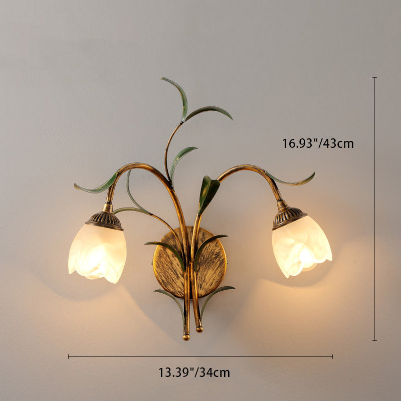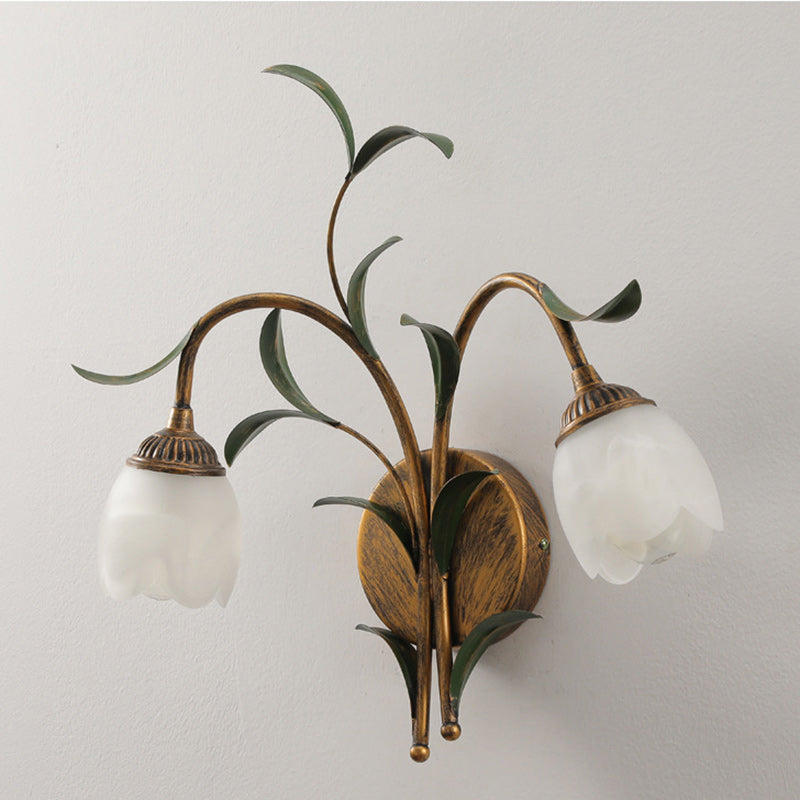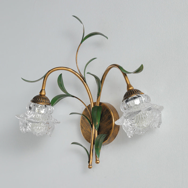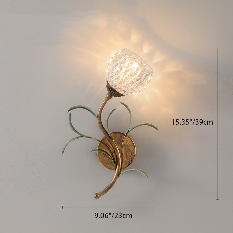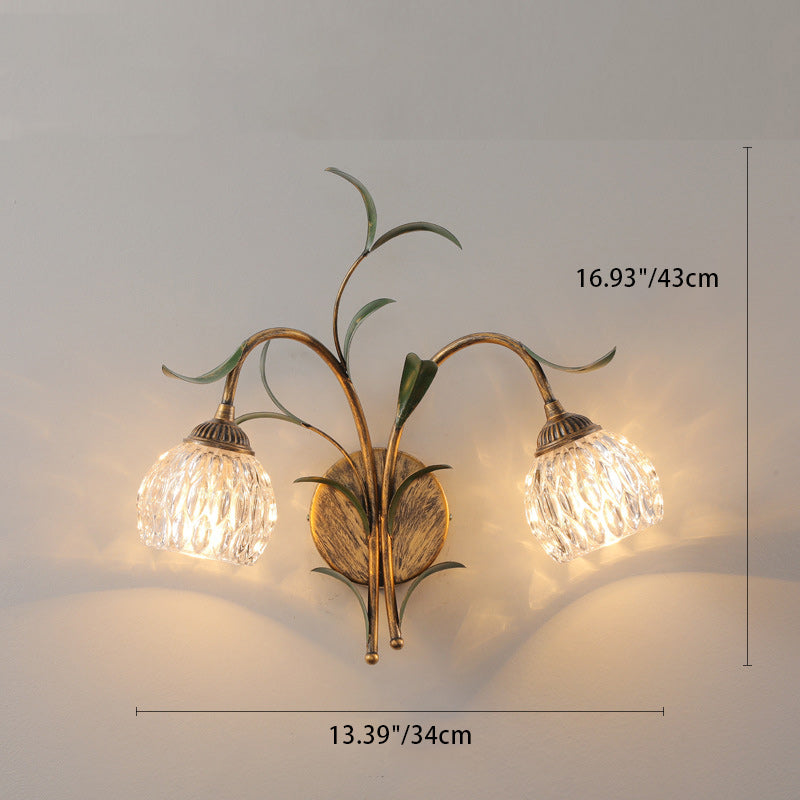 Modern Art Deco Flower Leaf Crystal Glass Iron 1/2 Light Wall Sconce Lamp For Bedroom