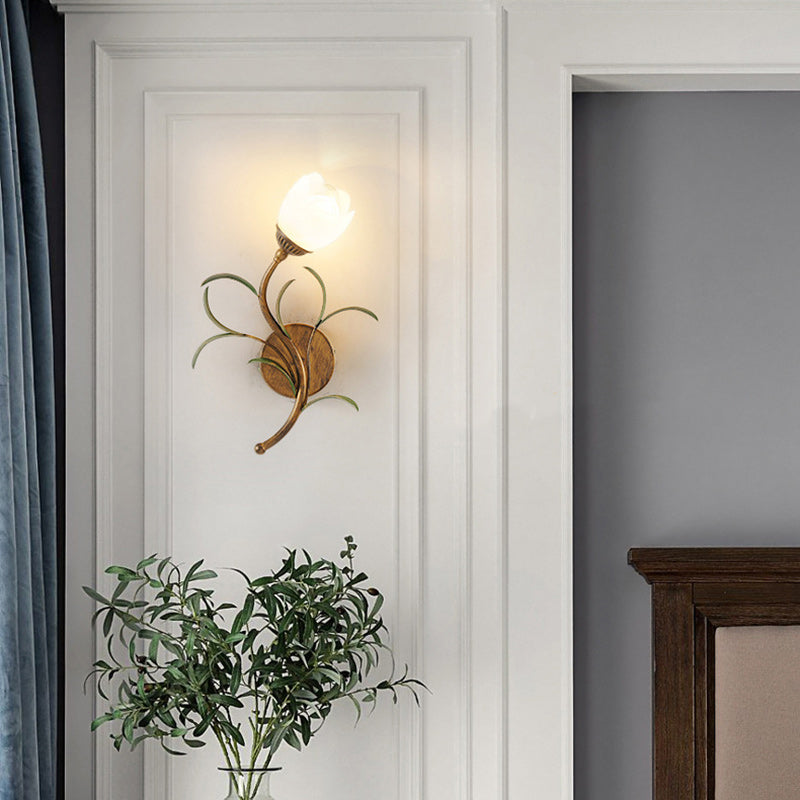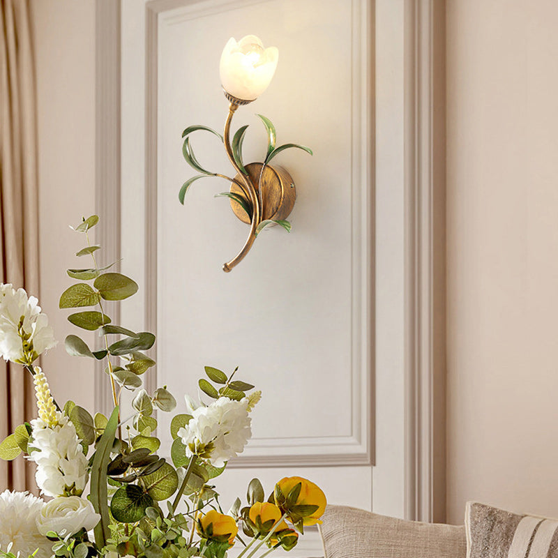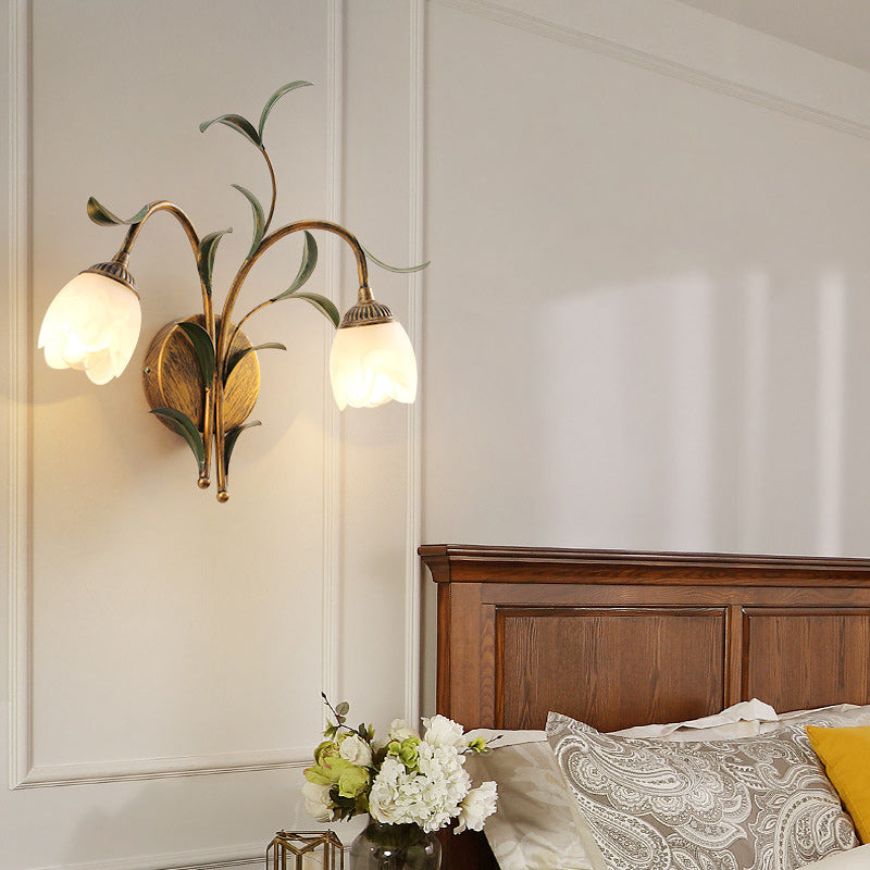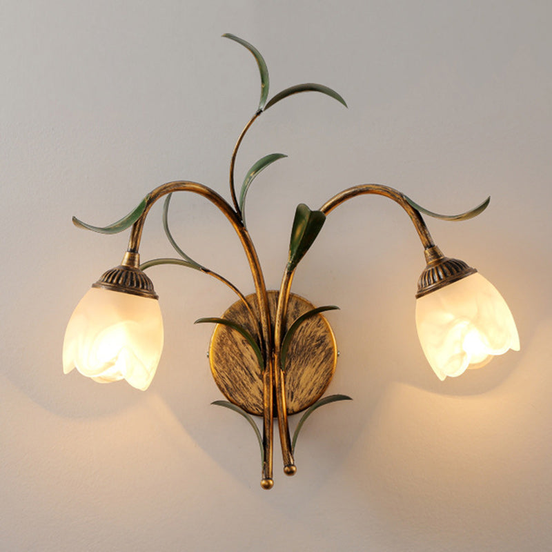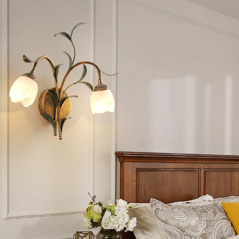 Modern Art Deco Flower Leaf Crystal Glass Iron 1/2 Light Wall Sconce Lamp For Bedroom