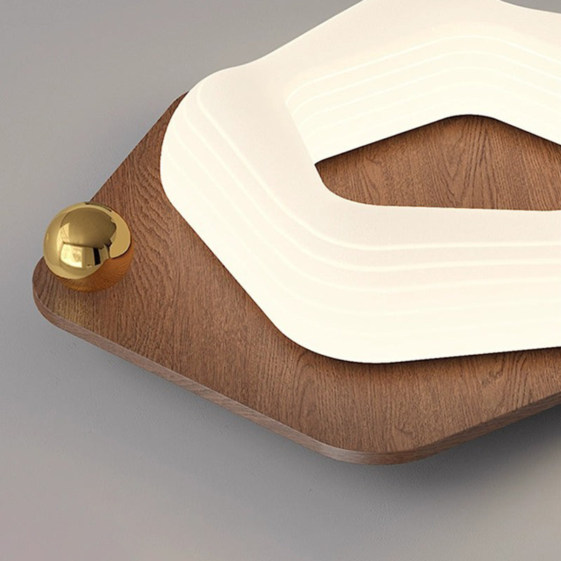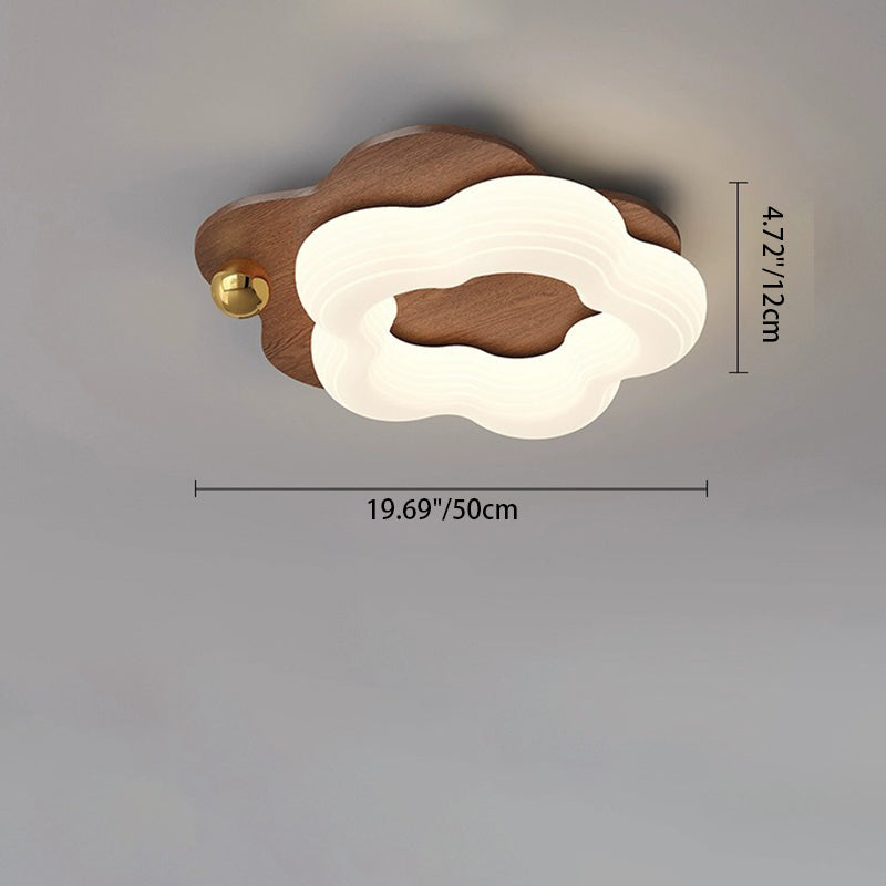 Modern Art Deco Flower Pentagon Round Triangle Wood Rotational Molding LED Flush Mount Ceiling Light For Bedroom