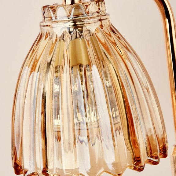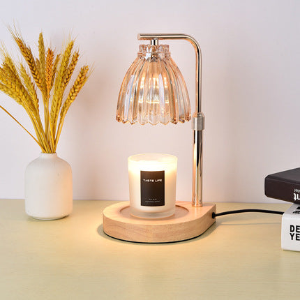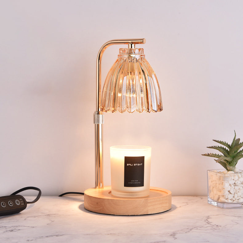 Modern Art Deco Flower Shaped Glass Iron Wood 1-Light Melting Wax Table Lamp For Bedroom