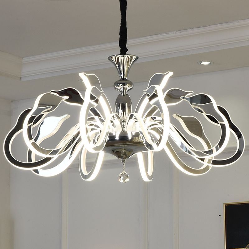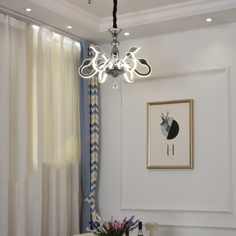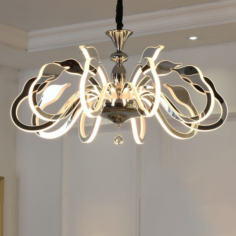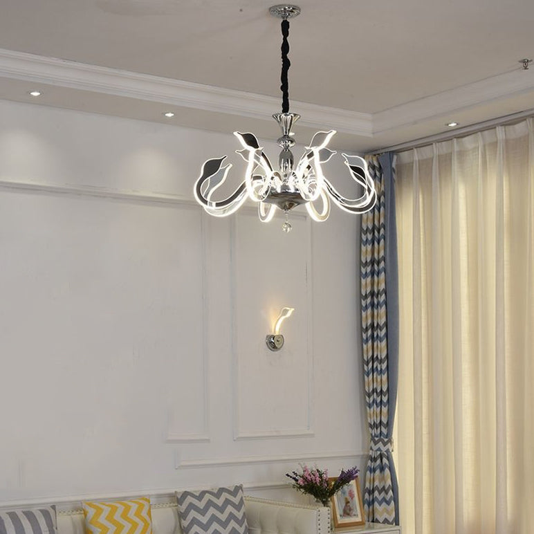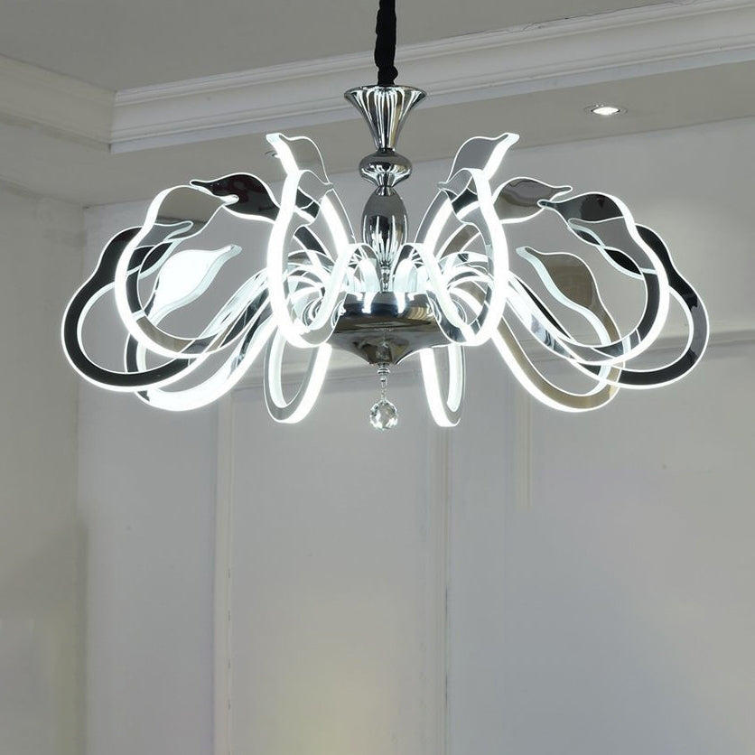Modern Art Deco Iron Crystal Acrylic Swan LED Chandeliers For Living Room