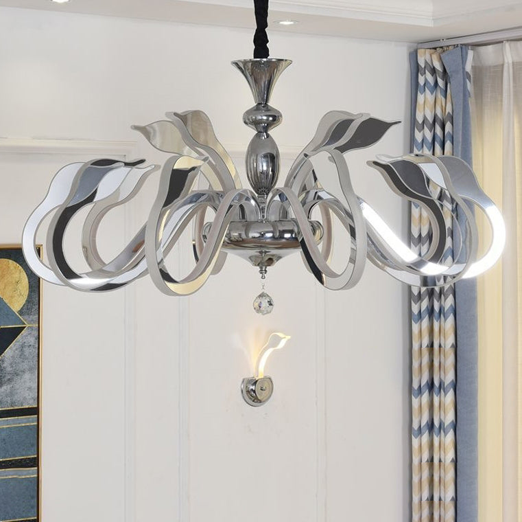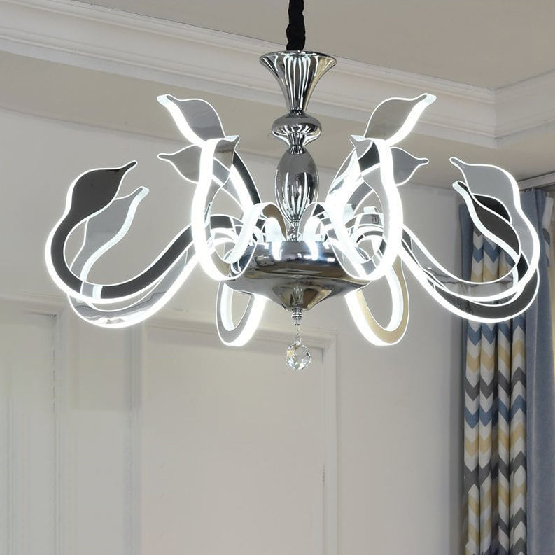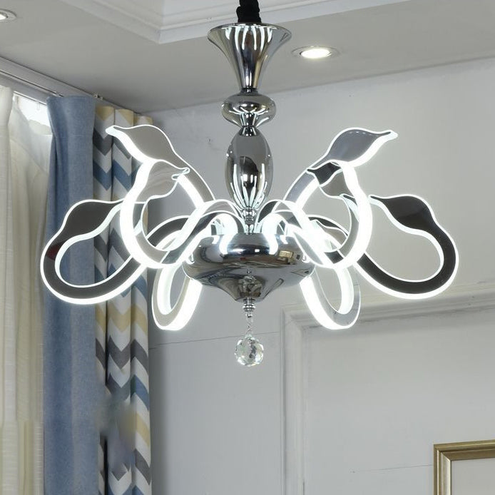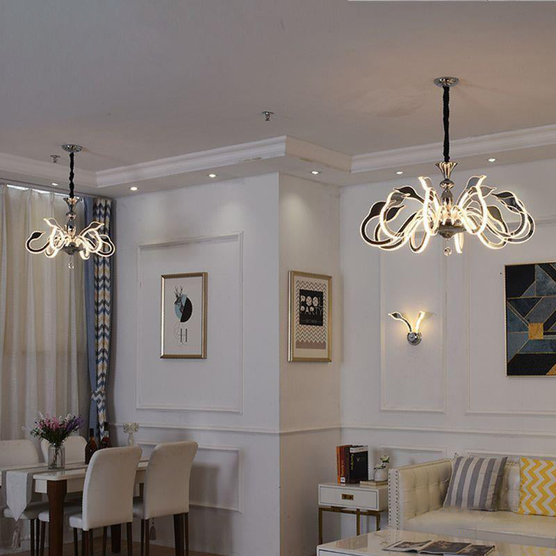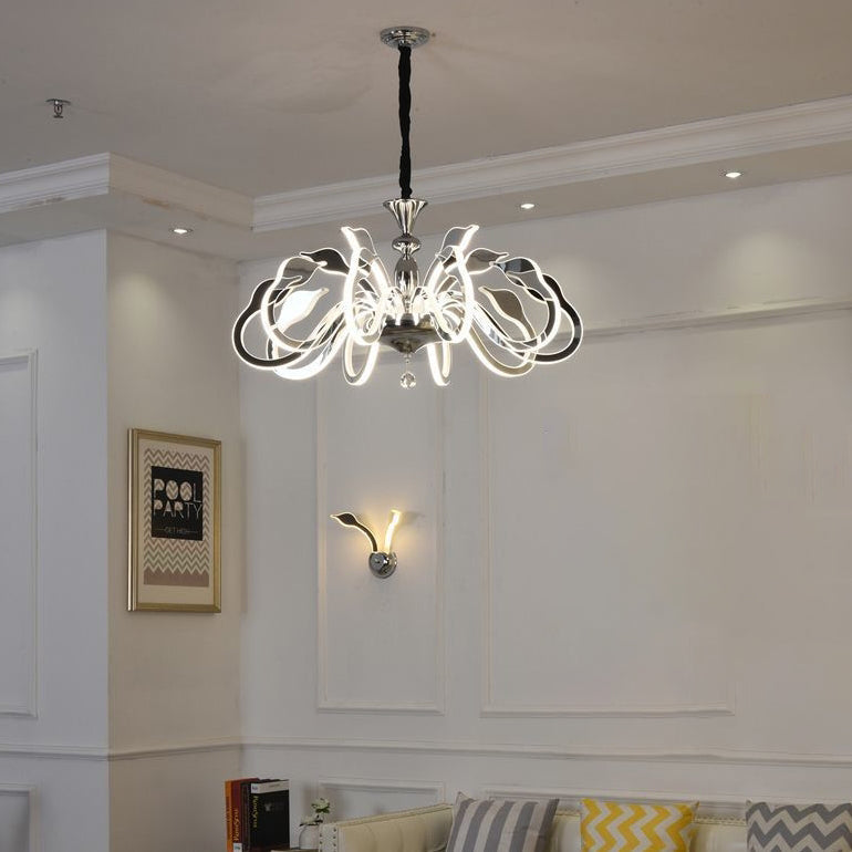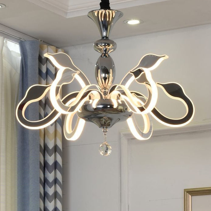 Modern Art Deco Iron Crystal Acrylic Swan LED Chandeliers For Living Room