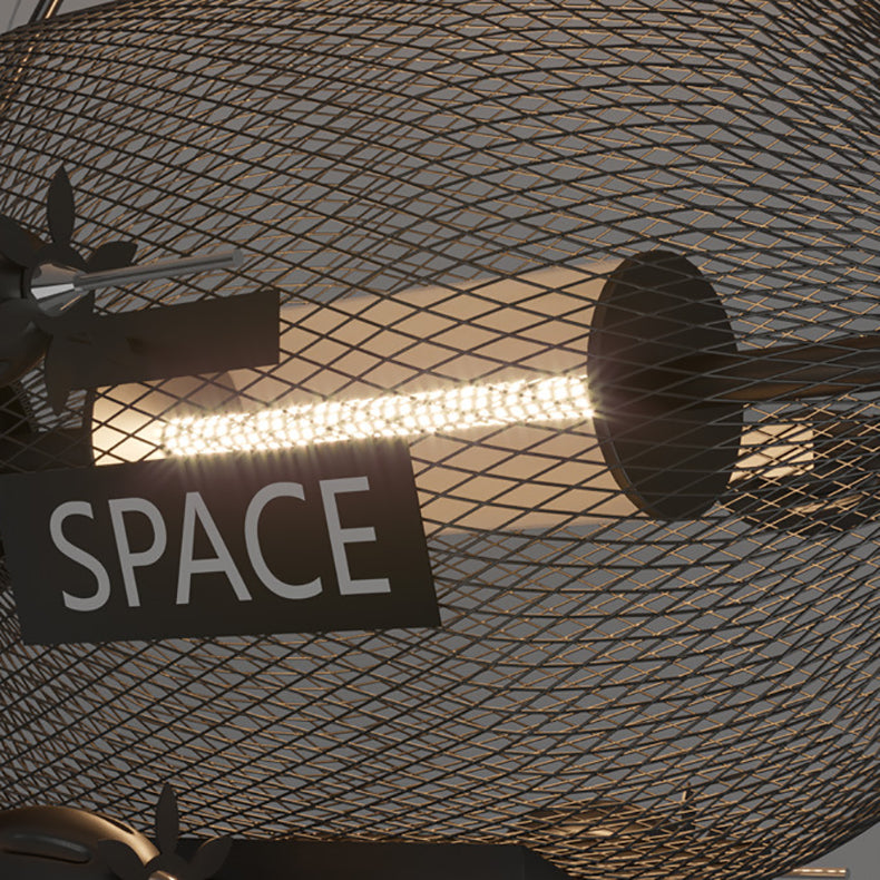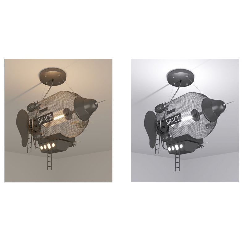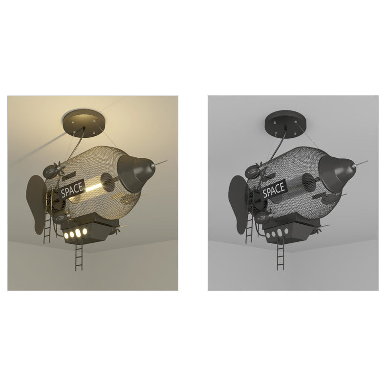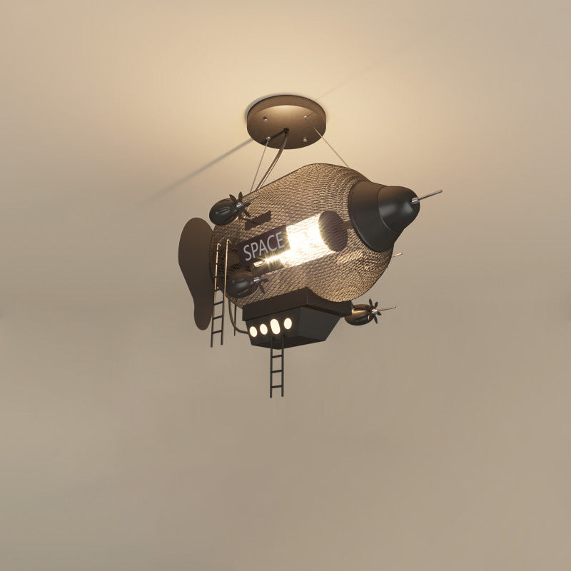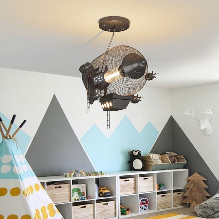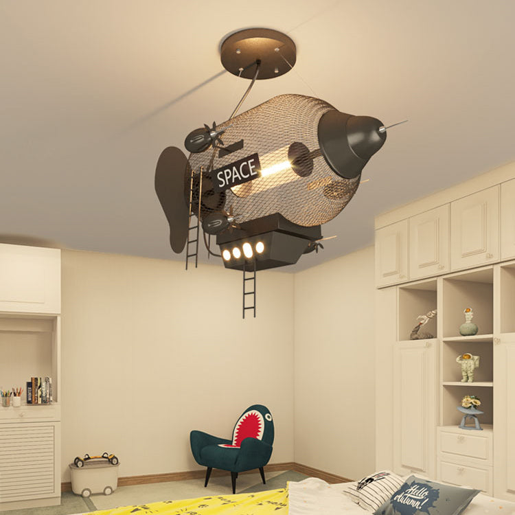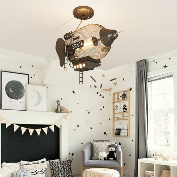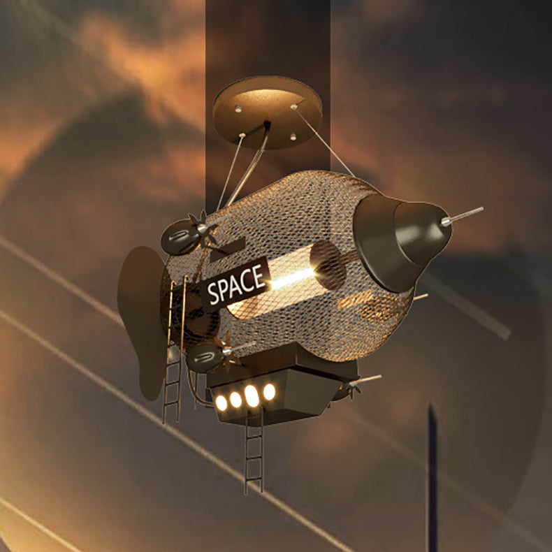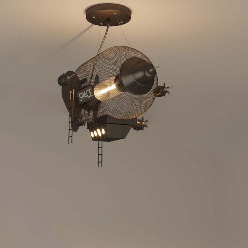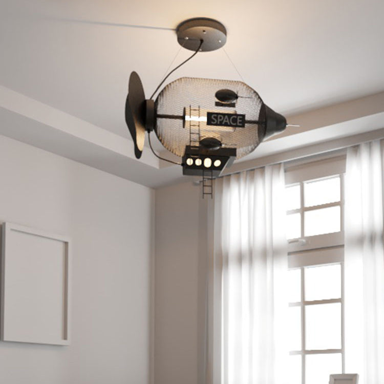 Modern Art Deco Iron Glass PVC Spaceship LED Pendant Light For Bedroom