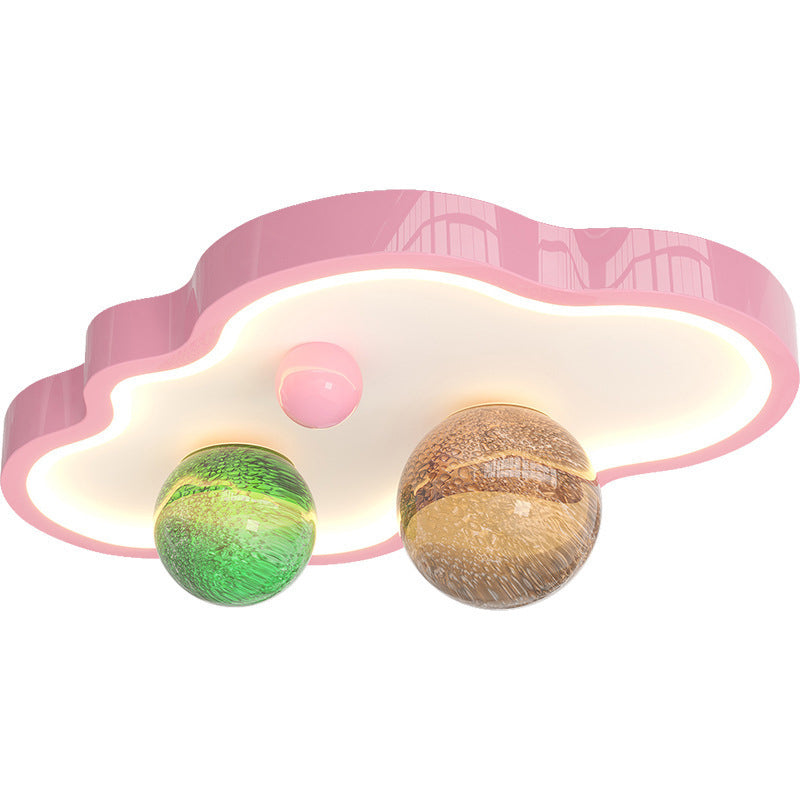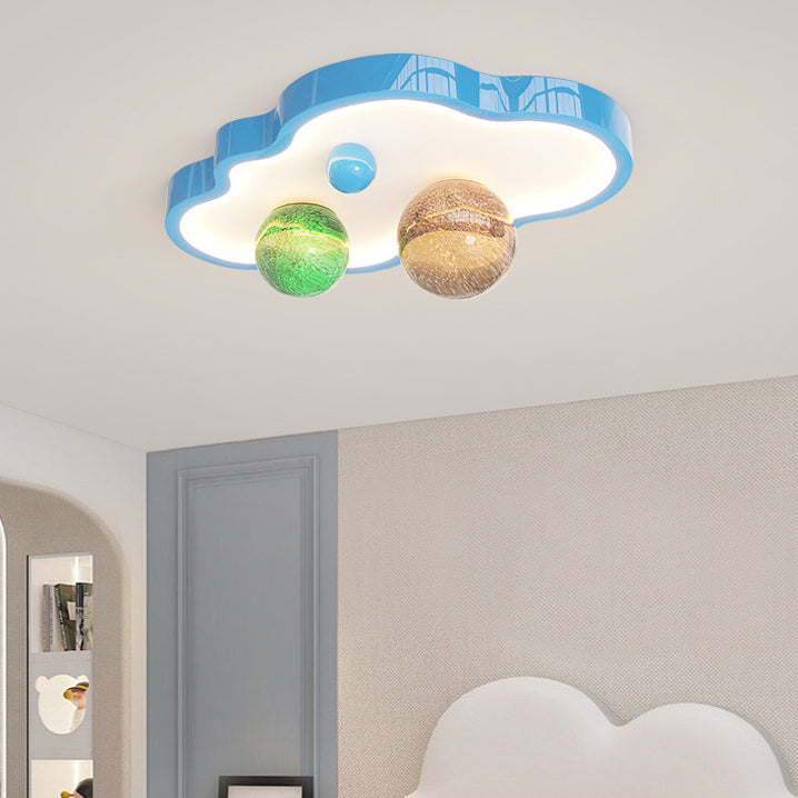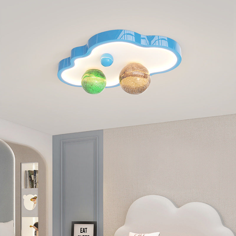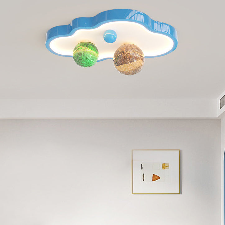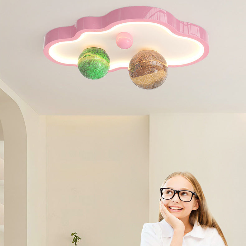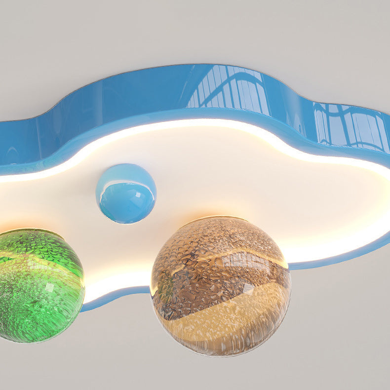 Modern Art Deco Planet Clouds Acrylic Glass Iron LED Flush Mount Ceiling Light For Living Room