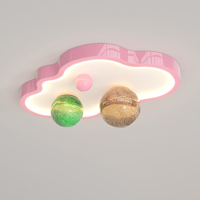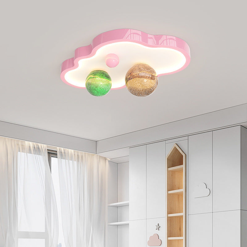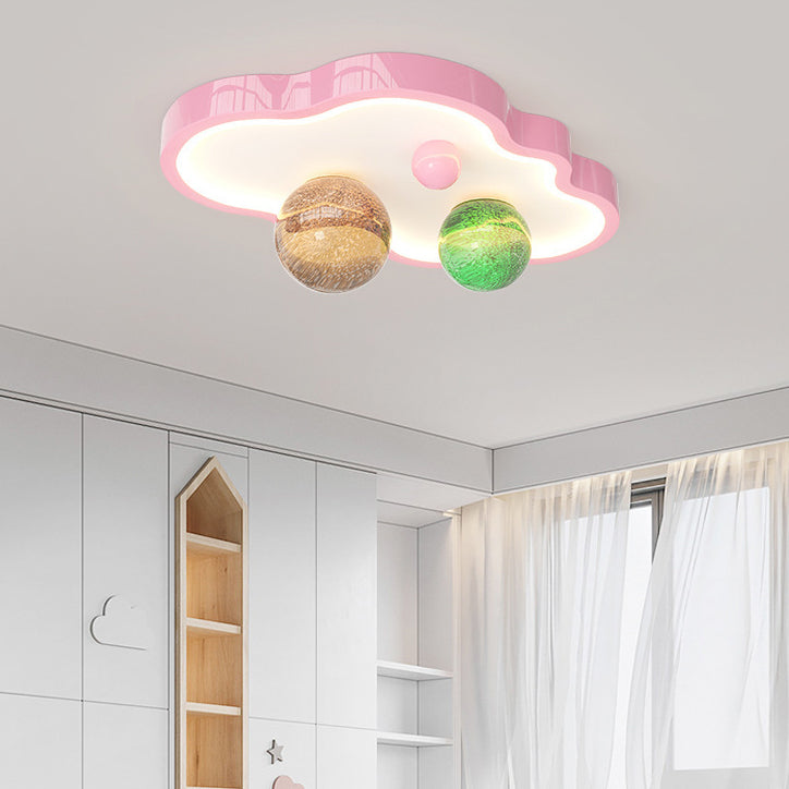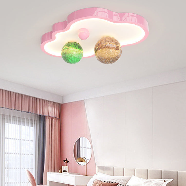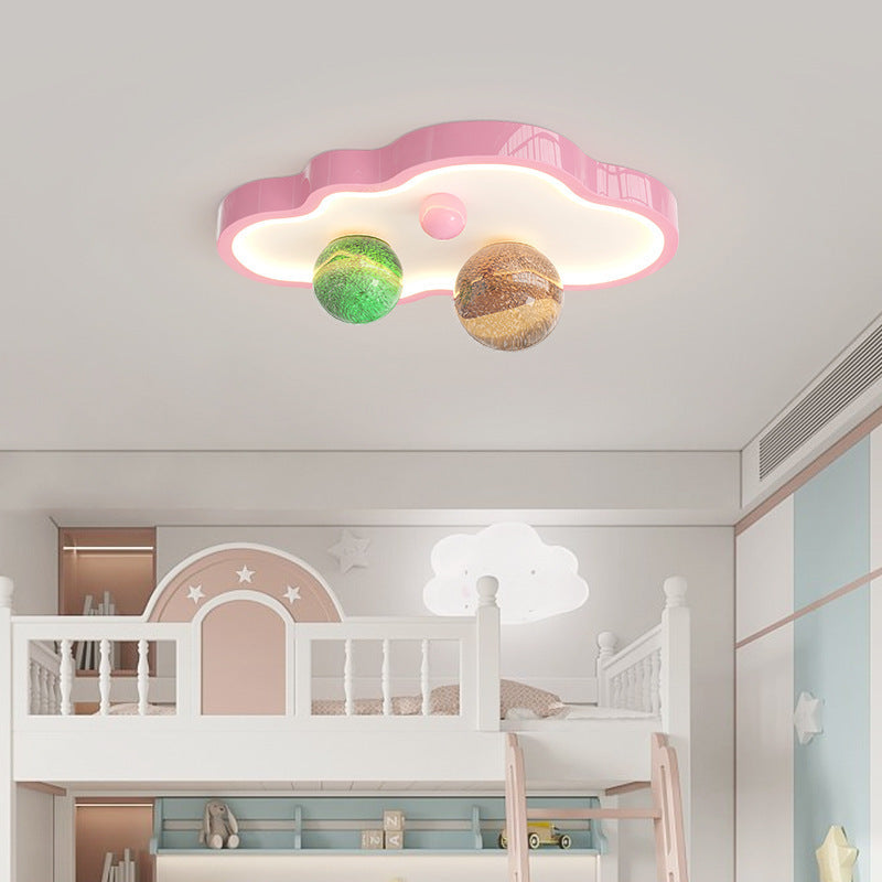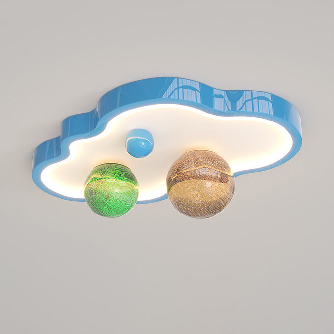 Modern Art Deco Planet Clouds Acrylic Glass Iron LED Flush Mount Ceiling Light For Living Room