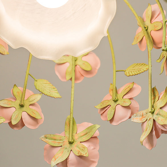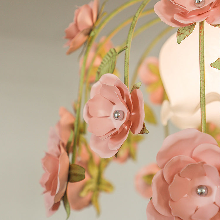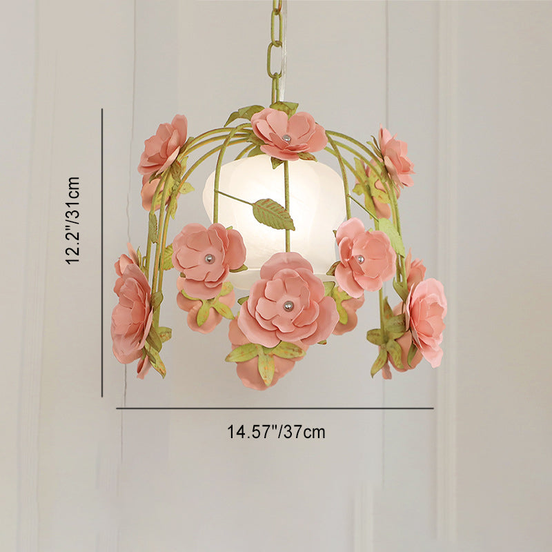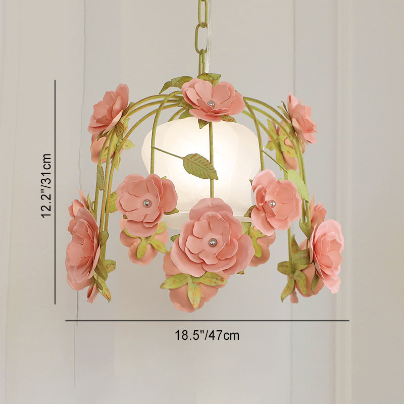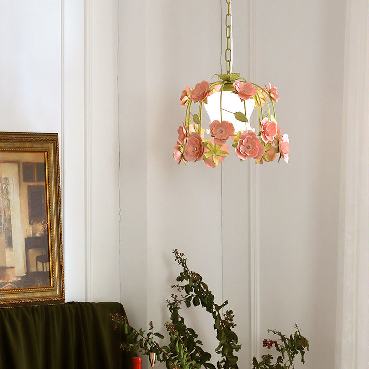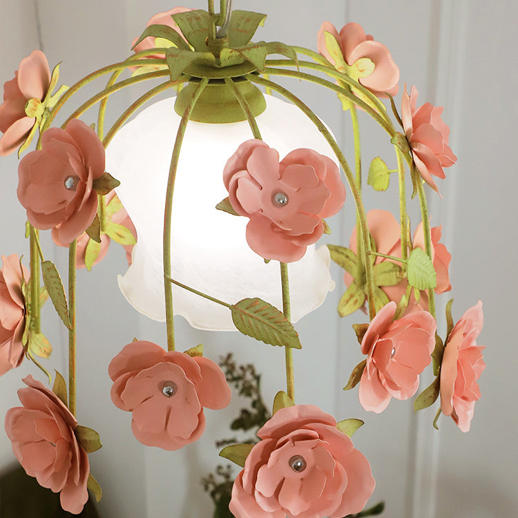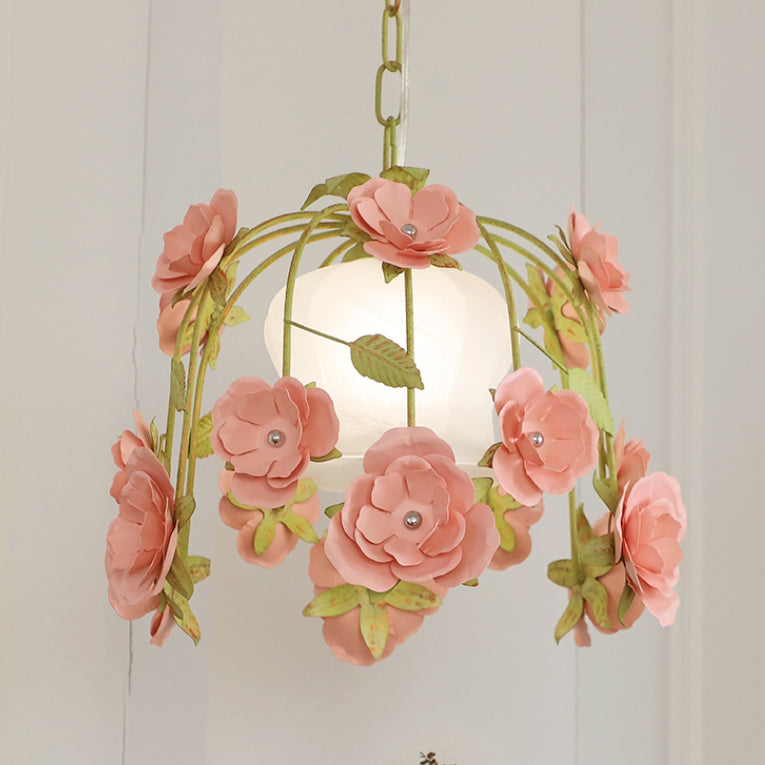 Modern Art Deco Rose Round Iron Glass 1-Light Pendant Light For Bedroom