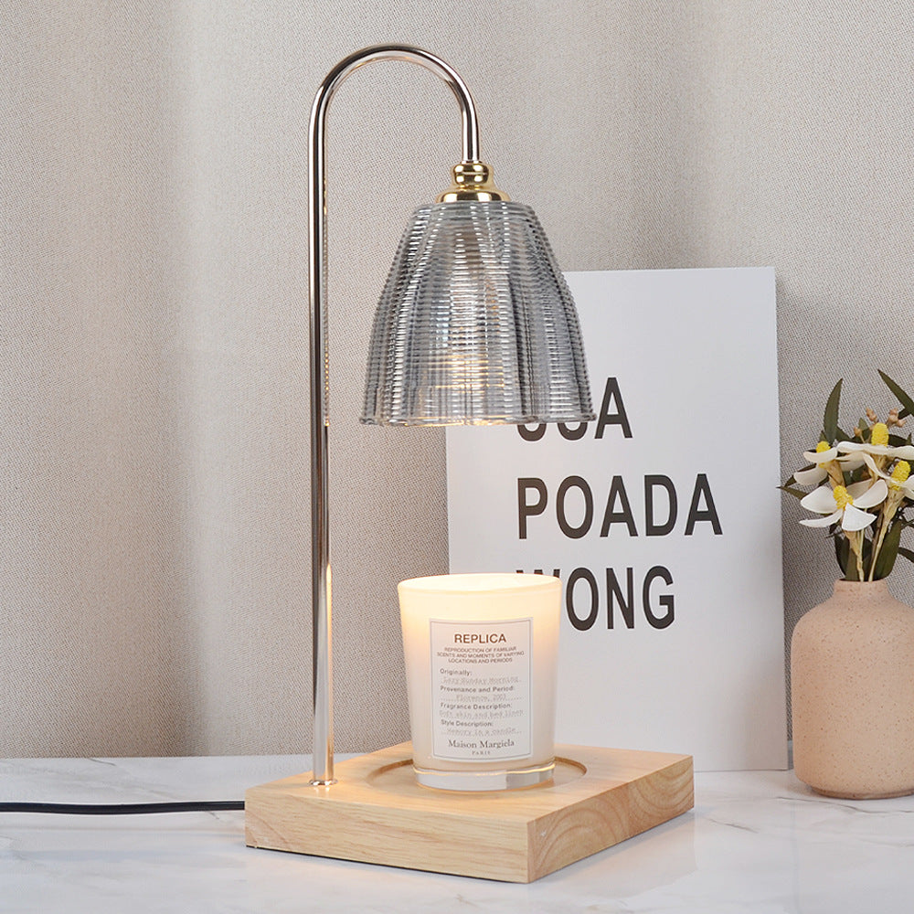 Modern Art Deco Round Cup Shape Wooden Base Iron Frame Glass Shade 1-Light Aromatherapy Melted Wax Table Lamp For Bedroom