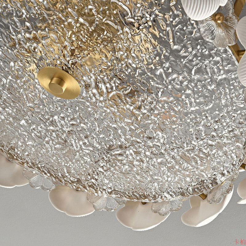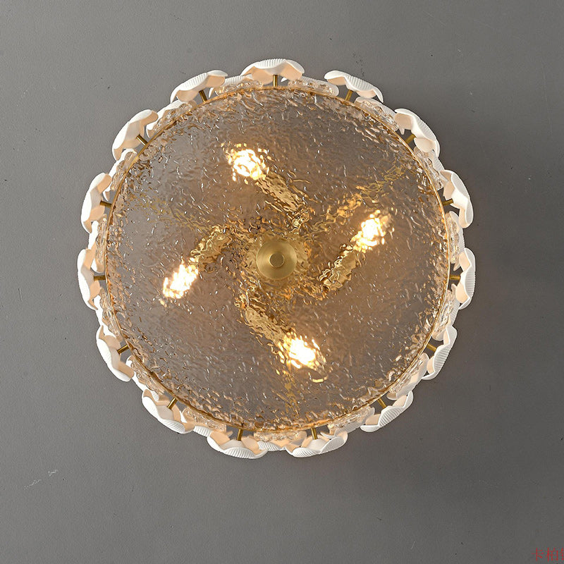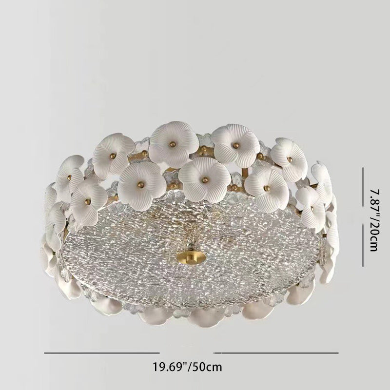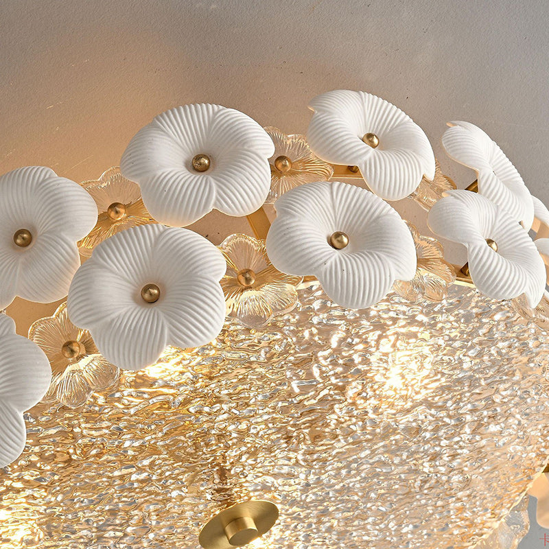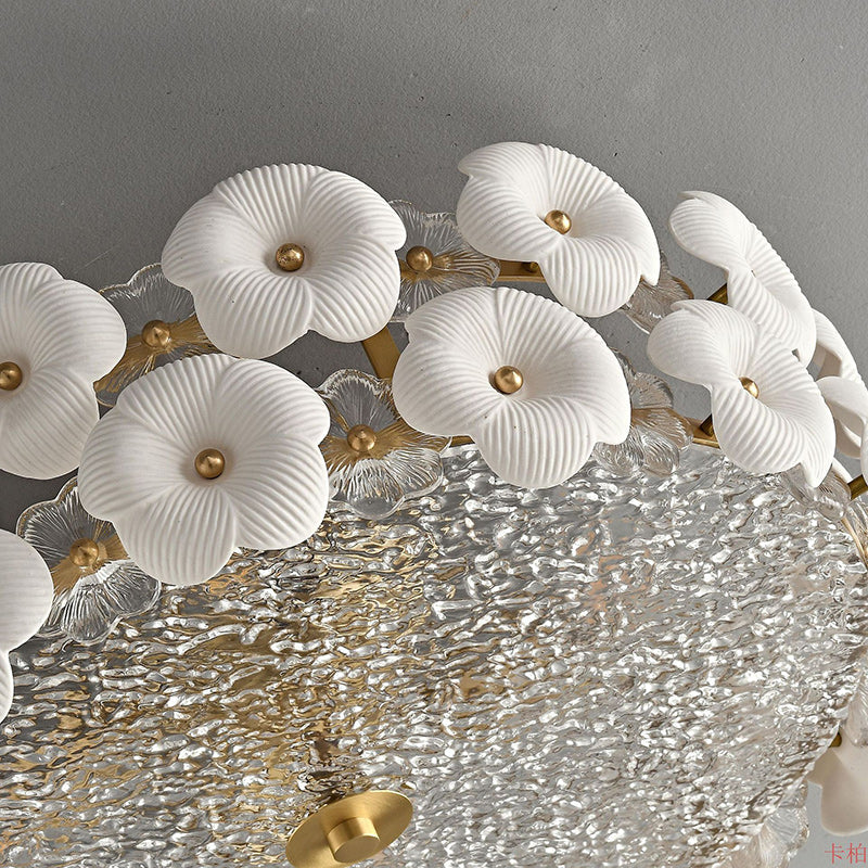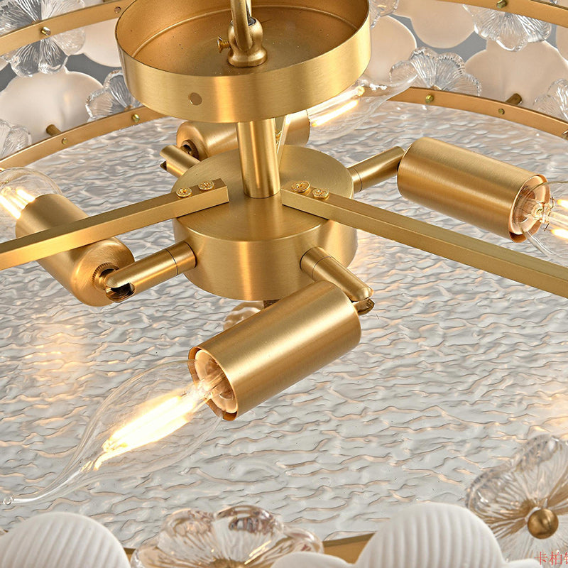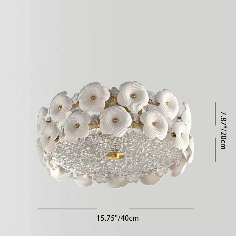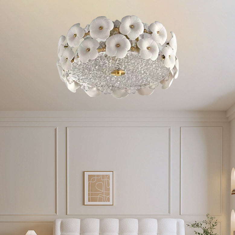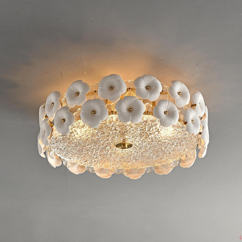 Modern Art Deco Round Flower Petal Brass Ceramic Glass 3/4 Light Flush Mount Ceiling Light For Living Room