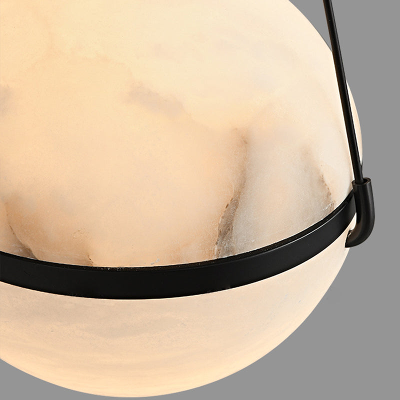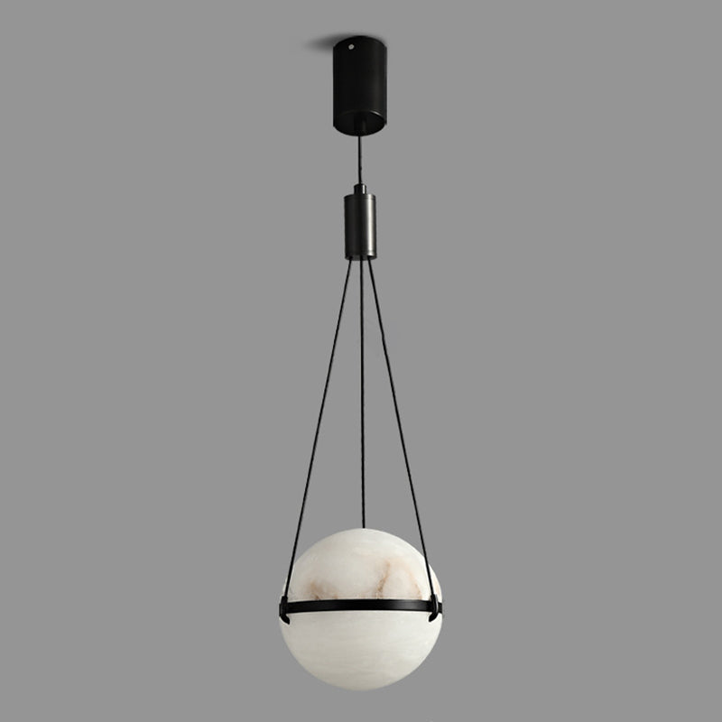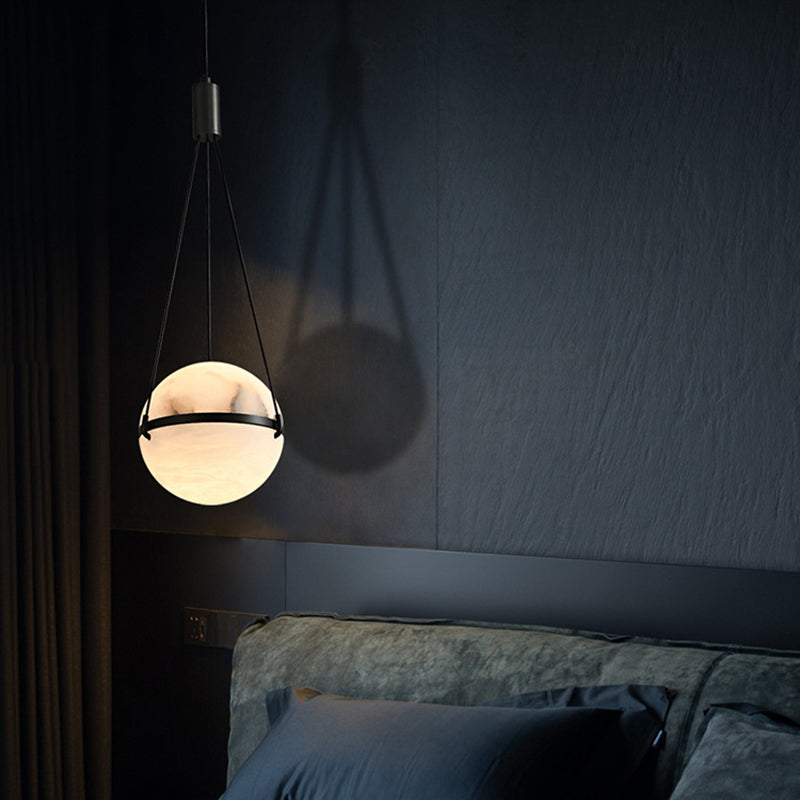 Modern Art Deco Sophisticated Spherical Copper Marble LED Pendant Light For Bedroom