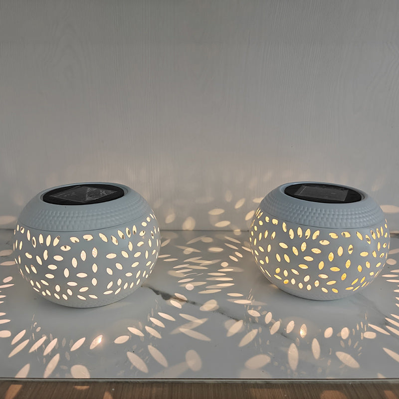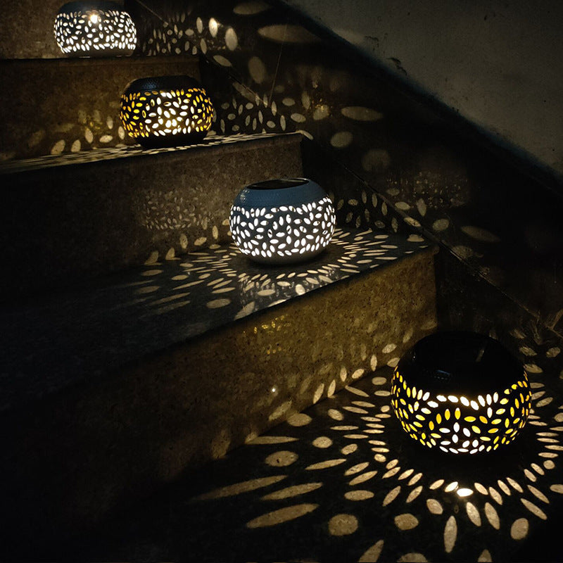 Modern Art Deco Waterproof Solar Hollowed-Out Bowl Iron LED Outdoor Light Landscape Lighting For Garden