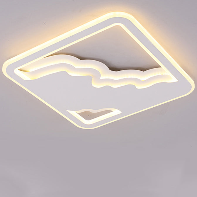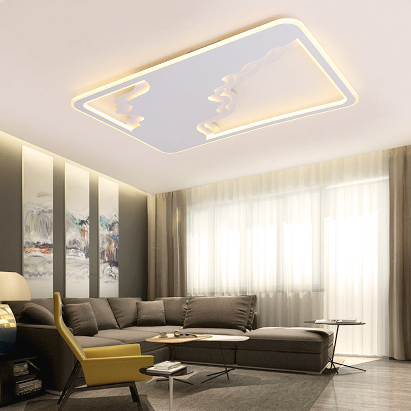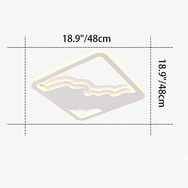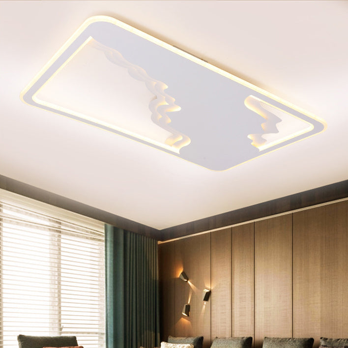 Modern Art Deco Wave Round Square Rectangle Acrylic Iron LED Flush Mount Ceiling Light For Living Room