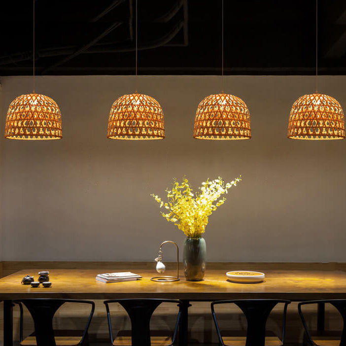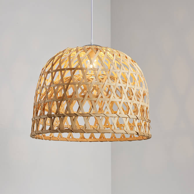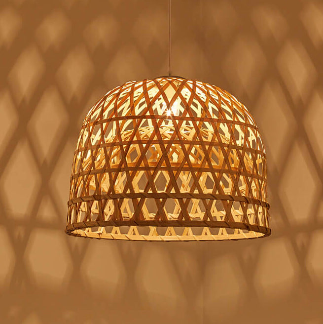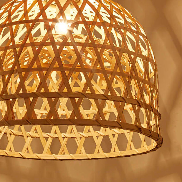 Modern Bamboo Weaving Dome Shape 1-Light Pendant Light
