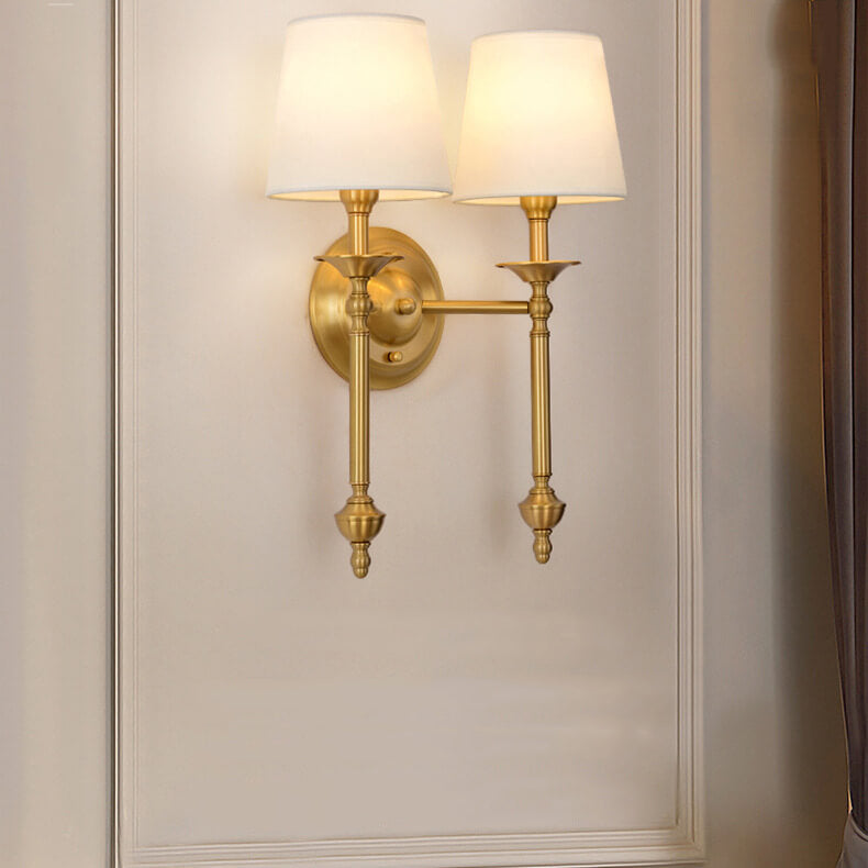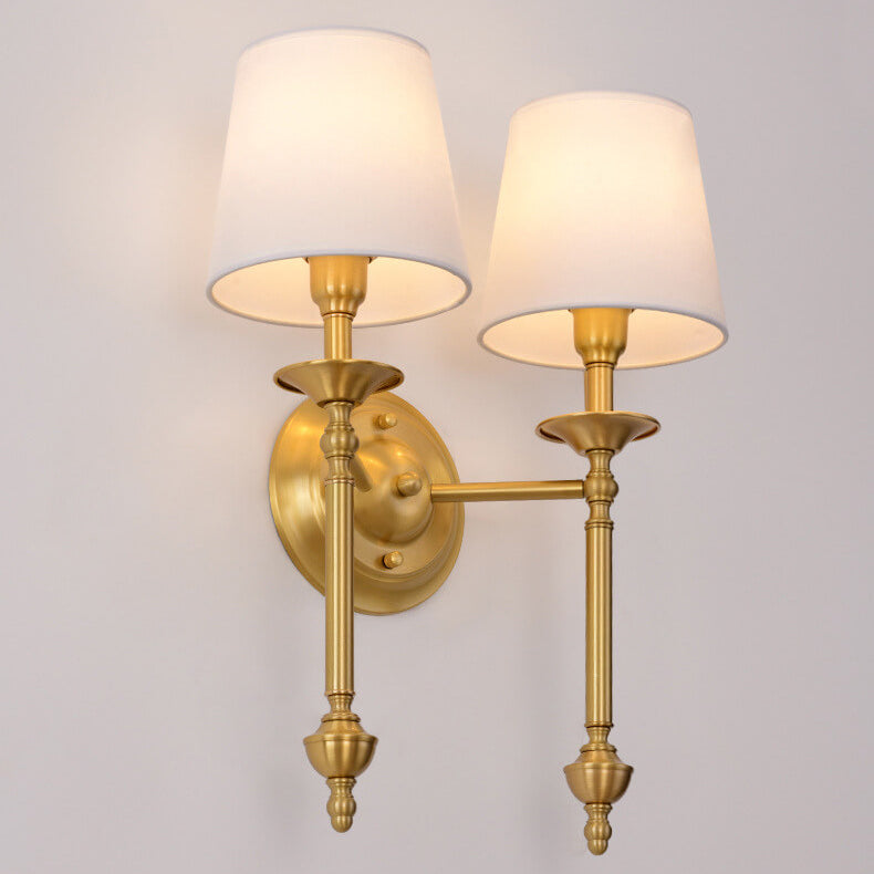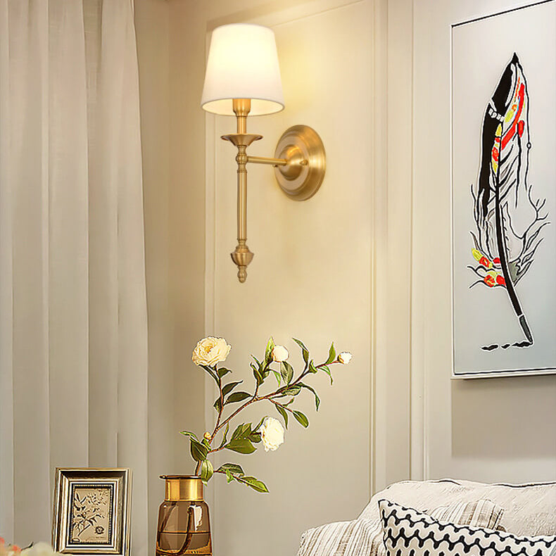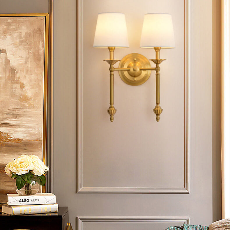 Modern Brass Fabric Shade 1/2 Light Wall Sconce Lamp