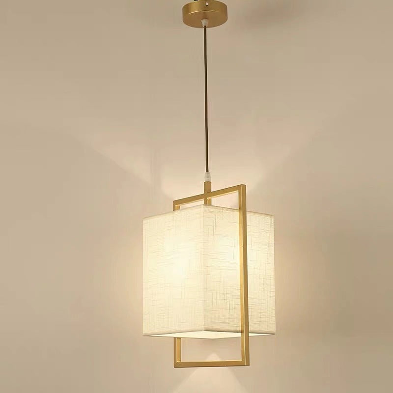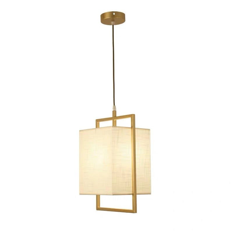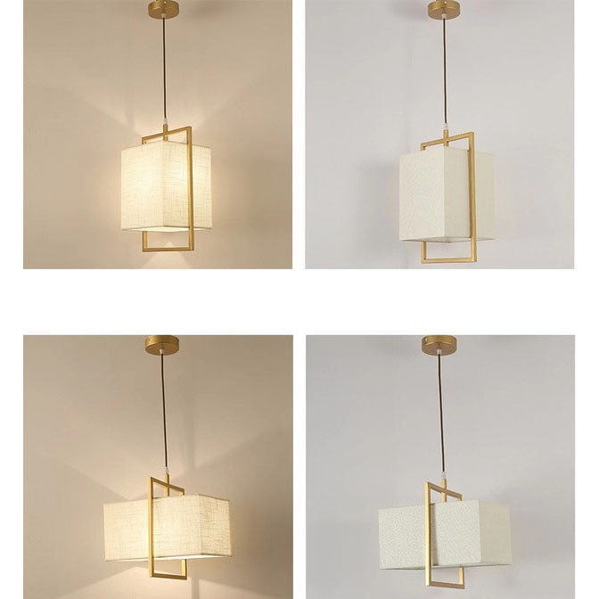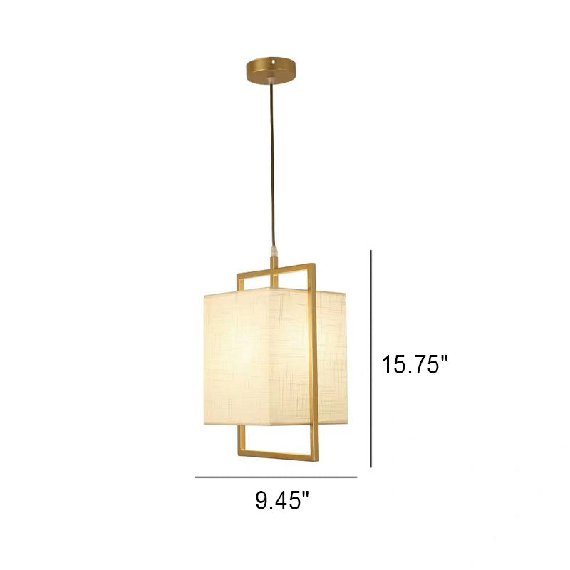 Modern Chinese Square Fabric Iron Frame 1-Light Pendant Light