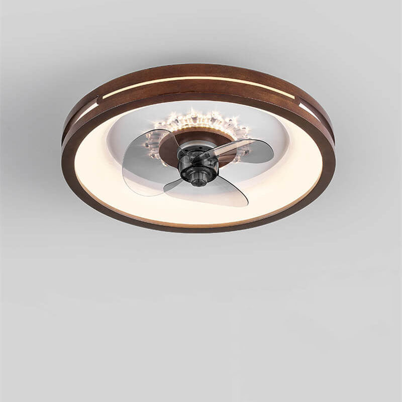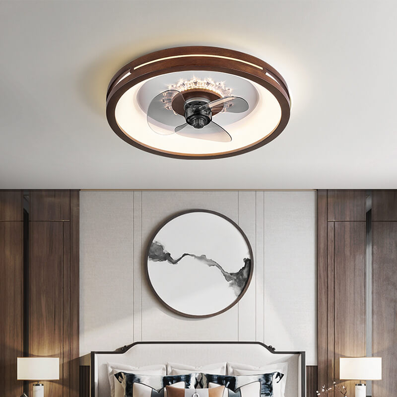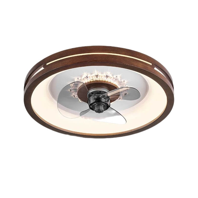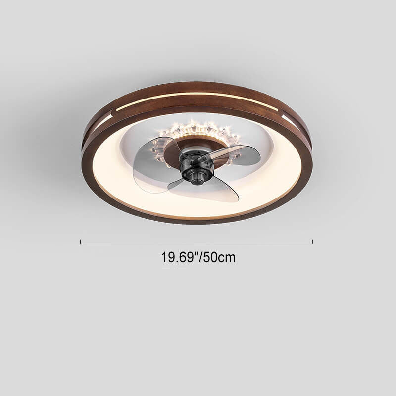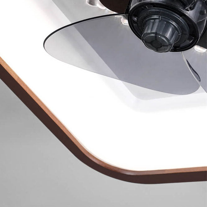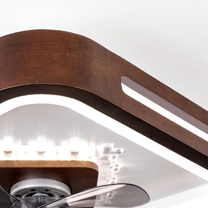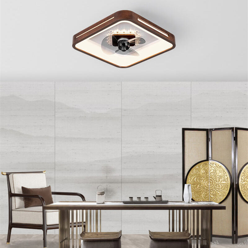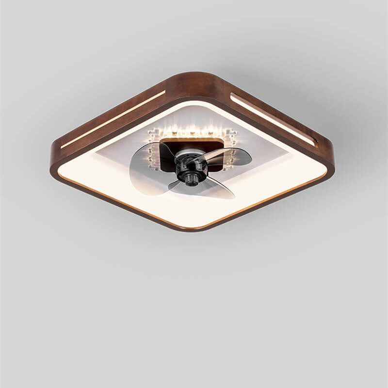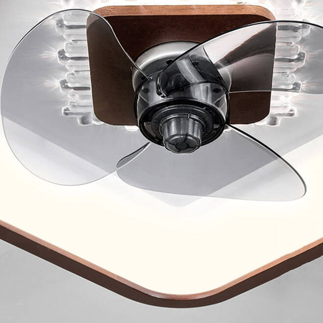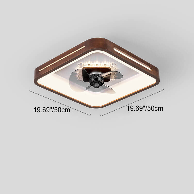 Modern Chinese Walnut Round Square Acrylic LED Flush Mount Ceiling Fan Light