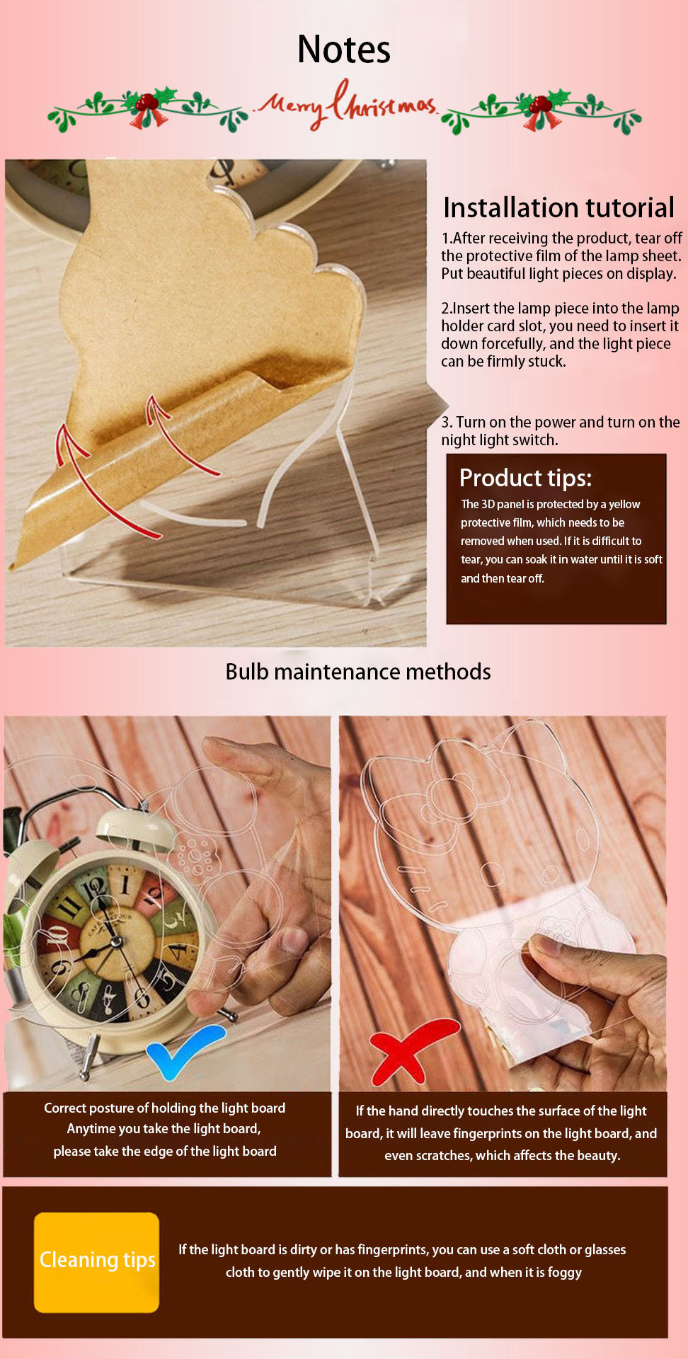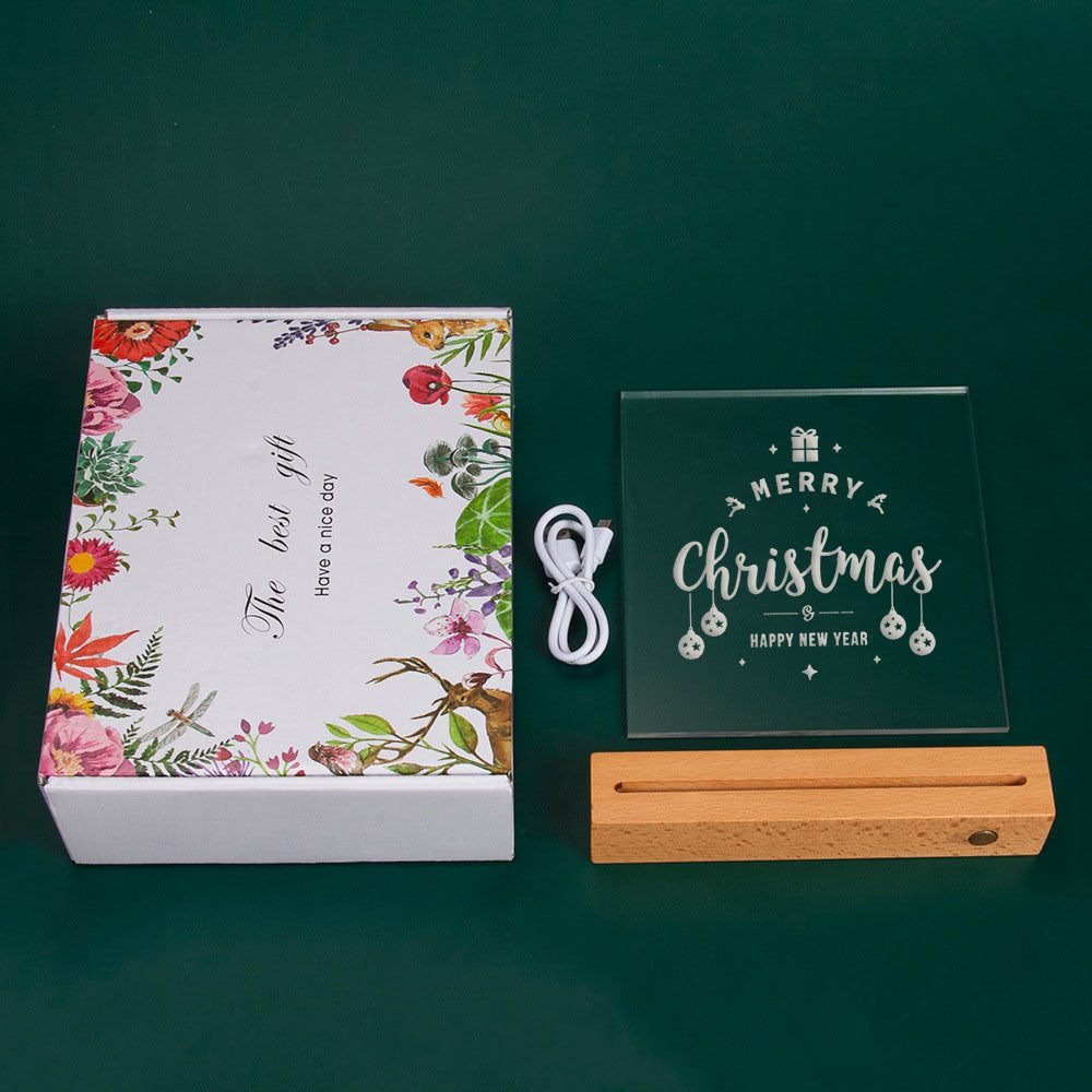 Modern Christmas Rectangular Acrylic Plate Solid Wood USB LED Table Lamp