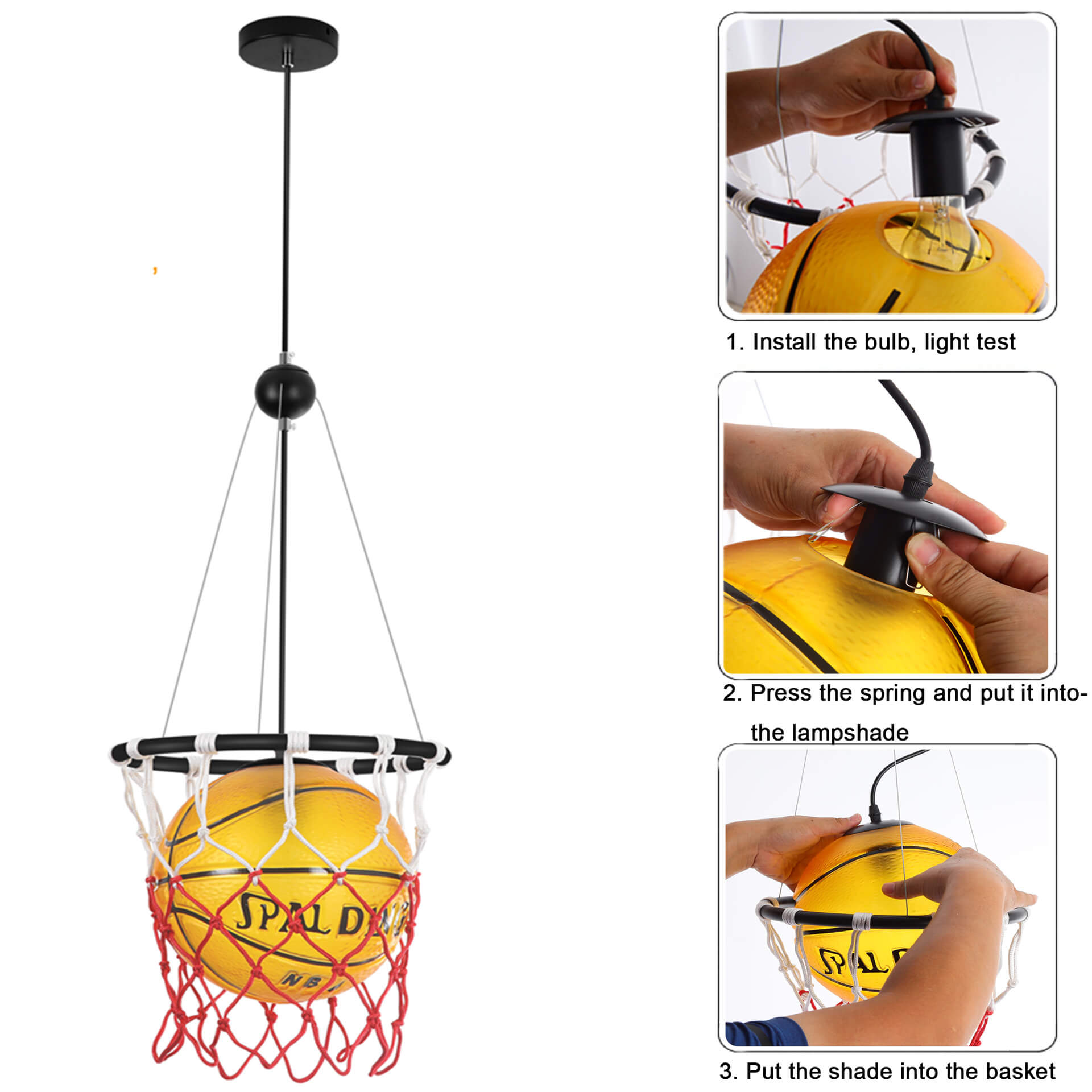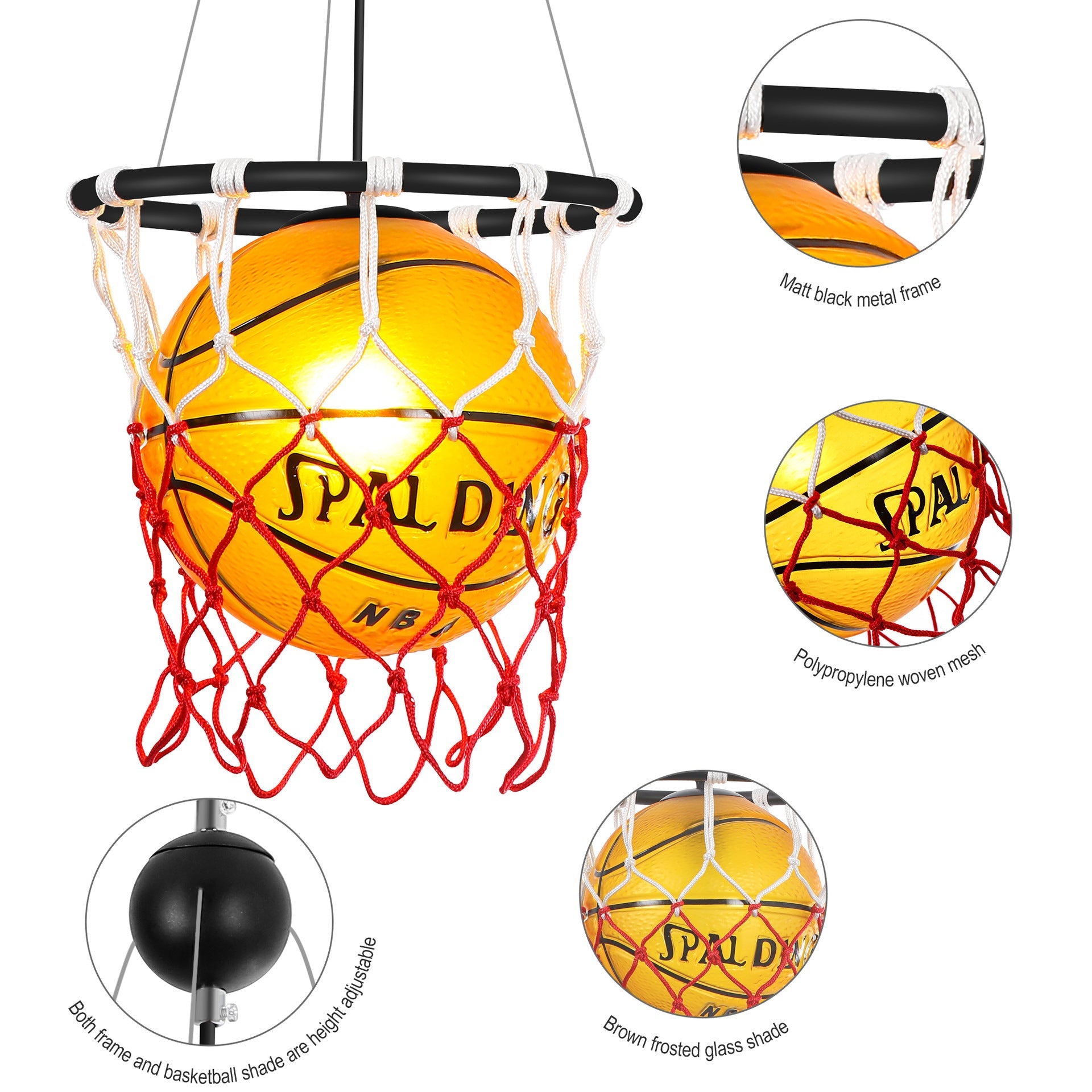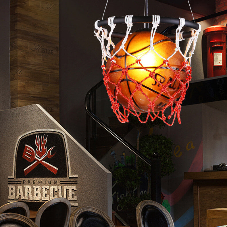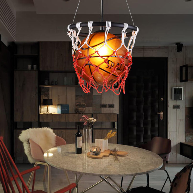 Modern Creative Basketball Iron Glass Mesh Rope 1-Light Pendant Light