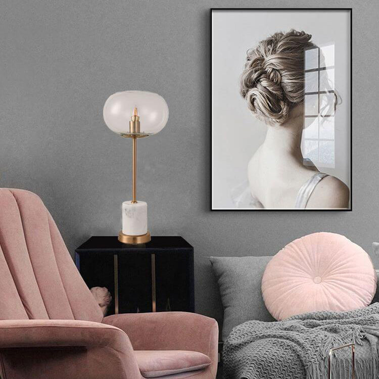 Modern Creative Glass Orb Marble Base 1-Light LED Table Lamp
