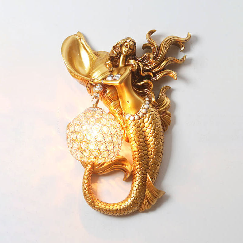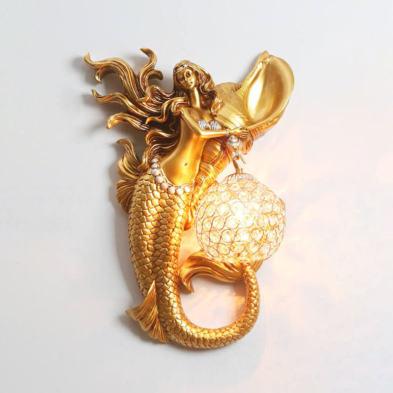 Modern Creative Resin Mermaid Shape Crystal Lampshade 1-Light Wall Sconce Lamp