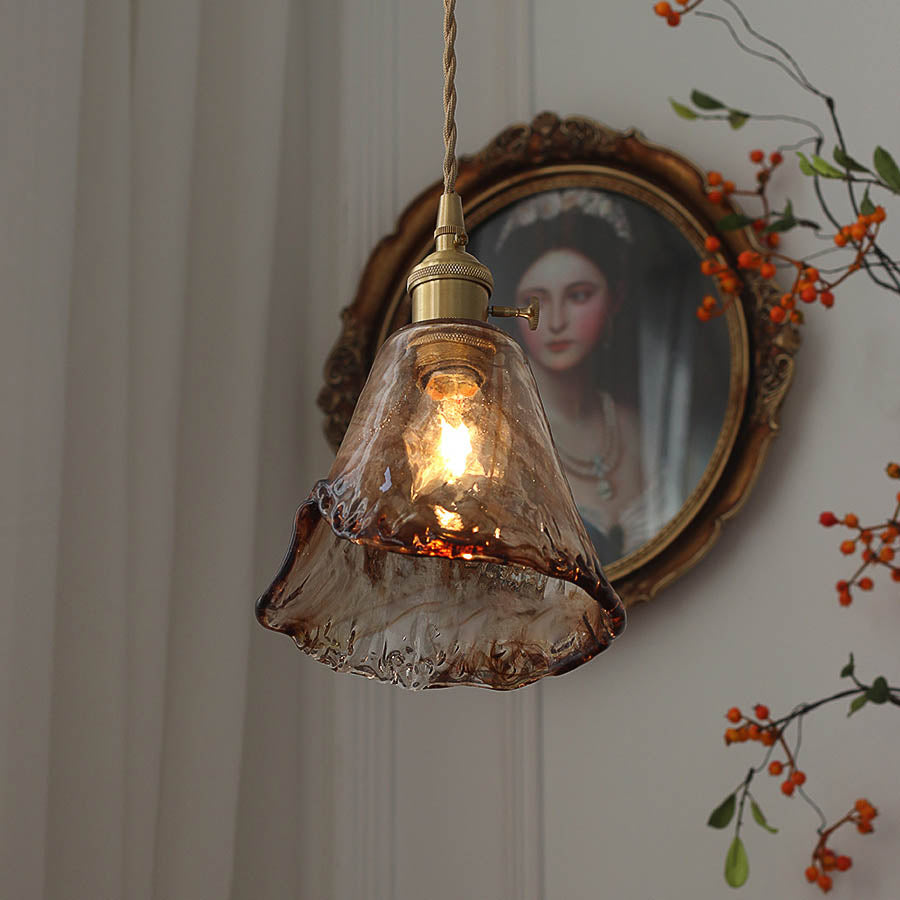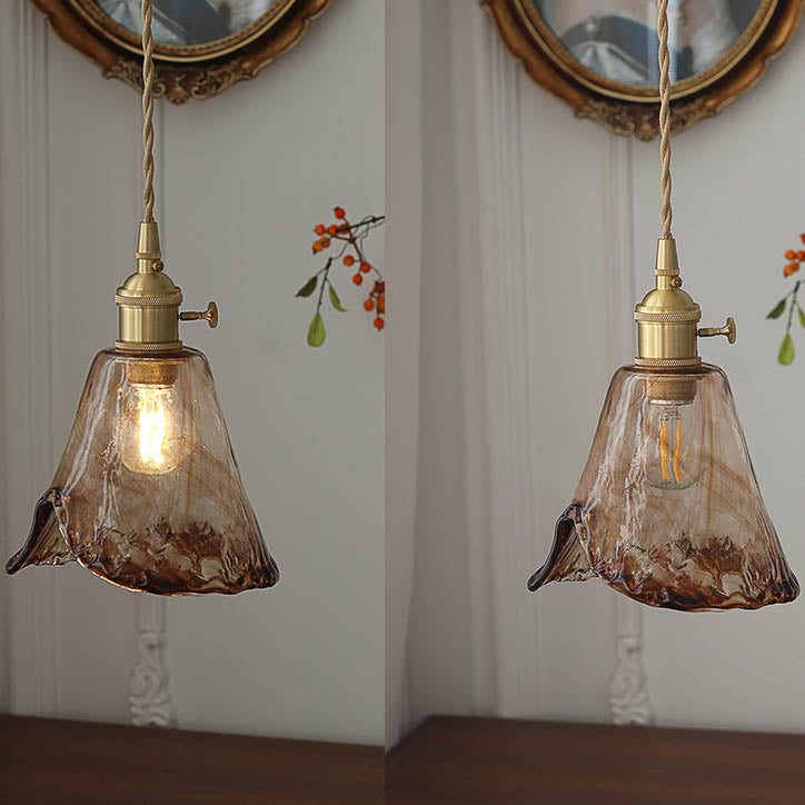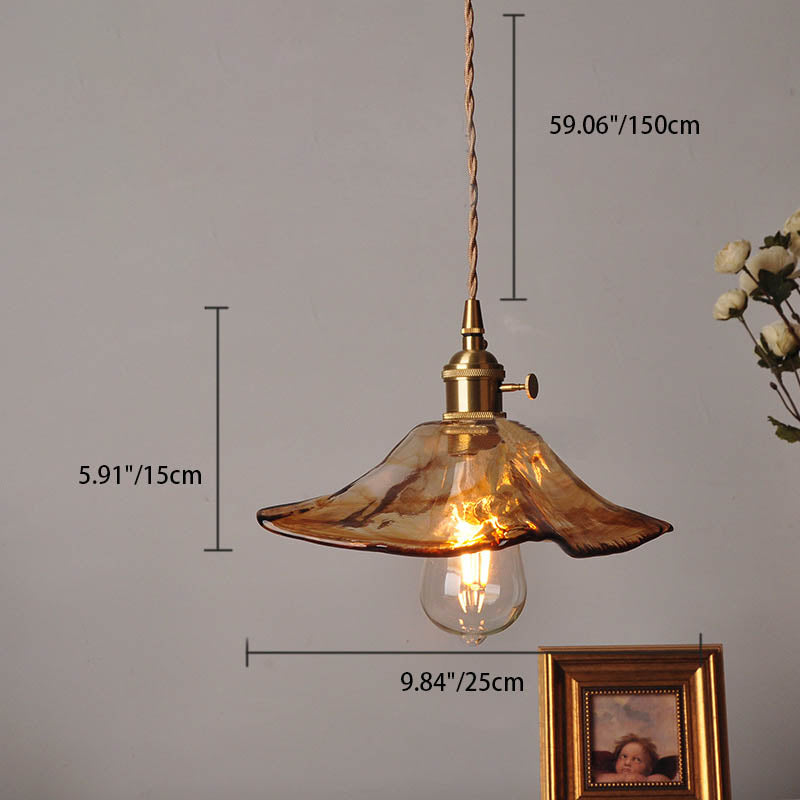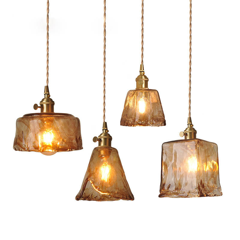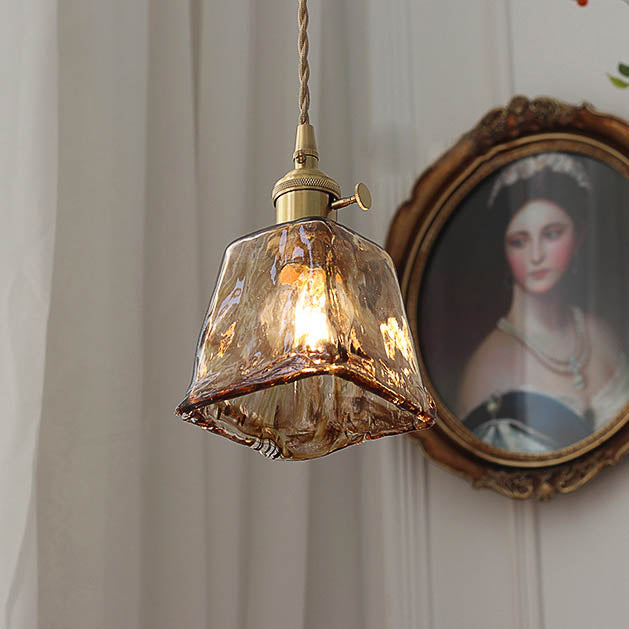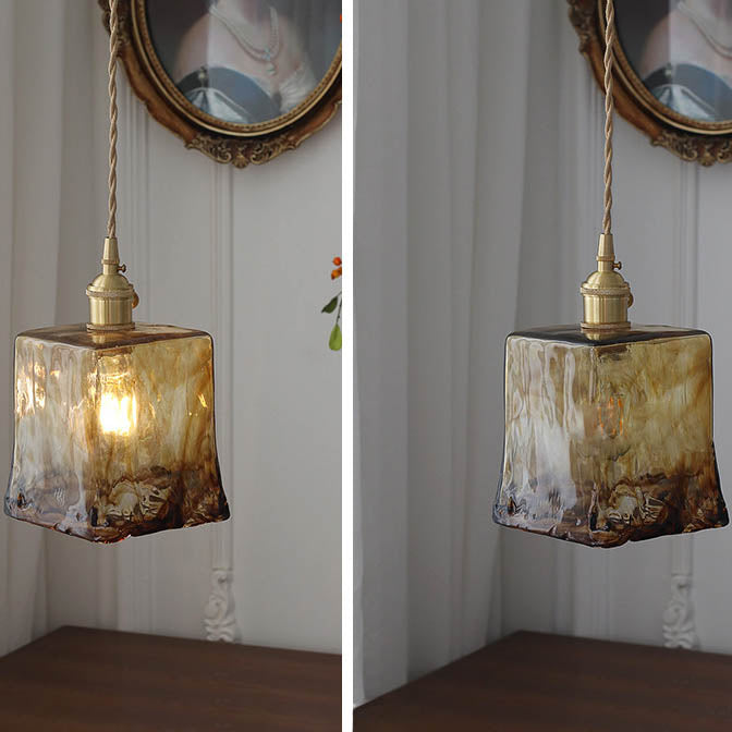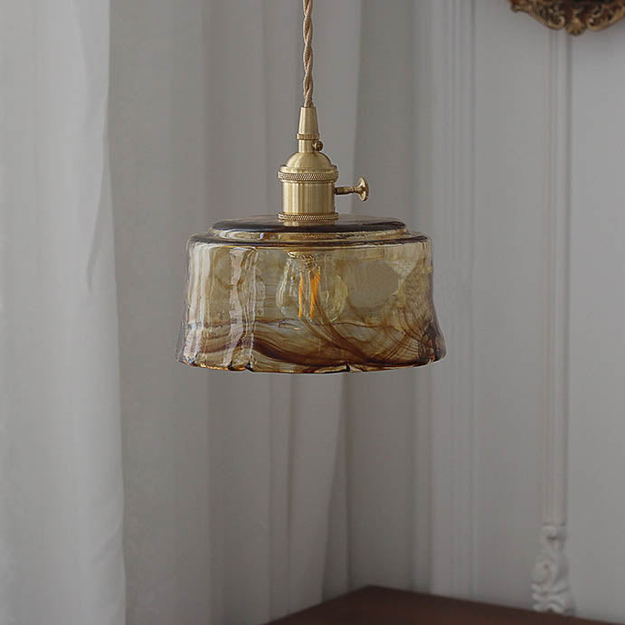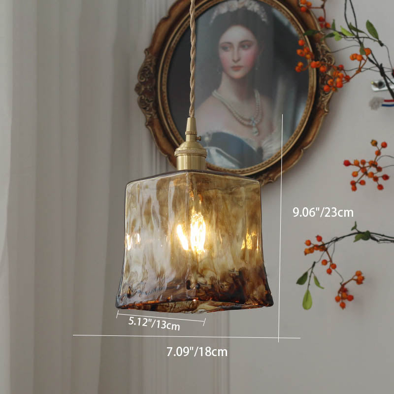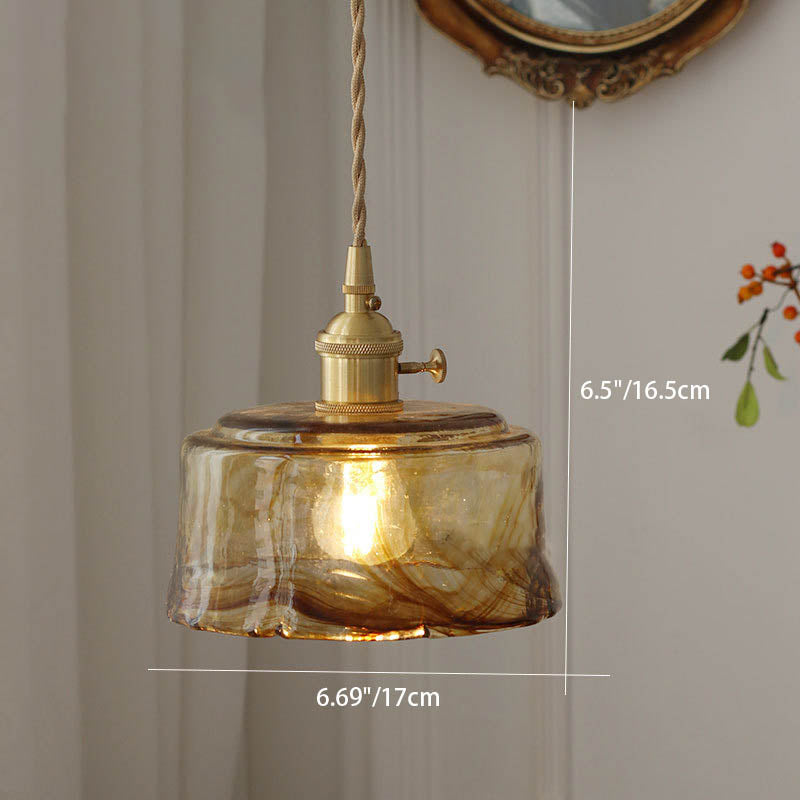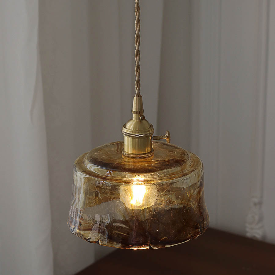 Modern Eclectic Amber Glass Geometric Jar 1-Light Pendant Light For Living Room