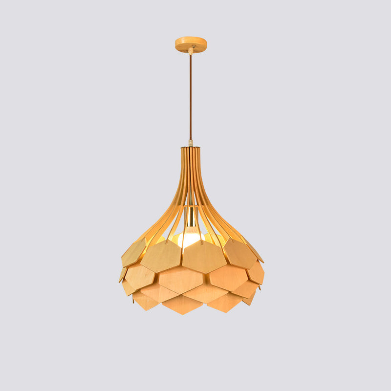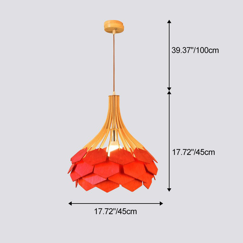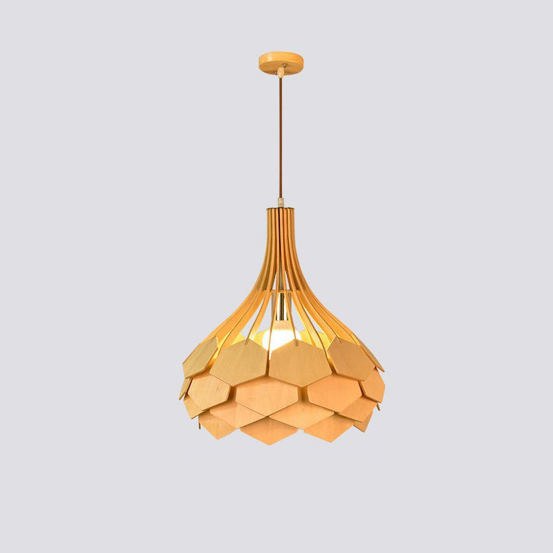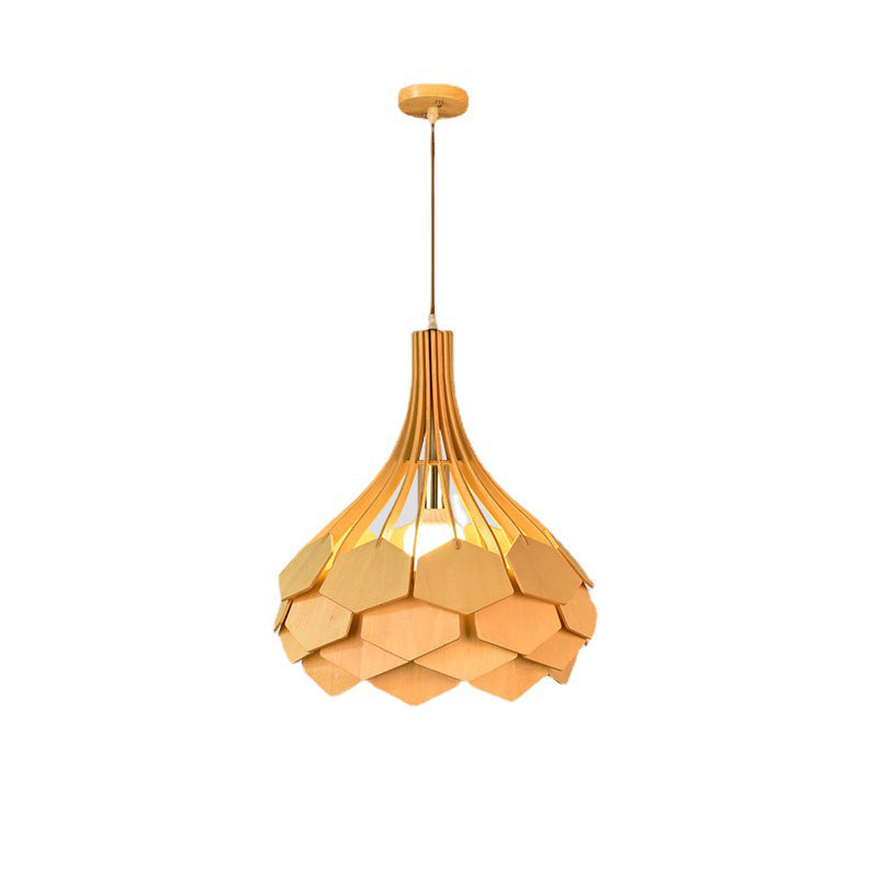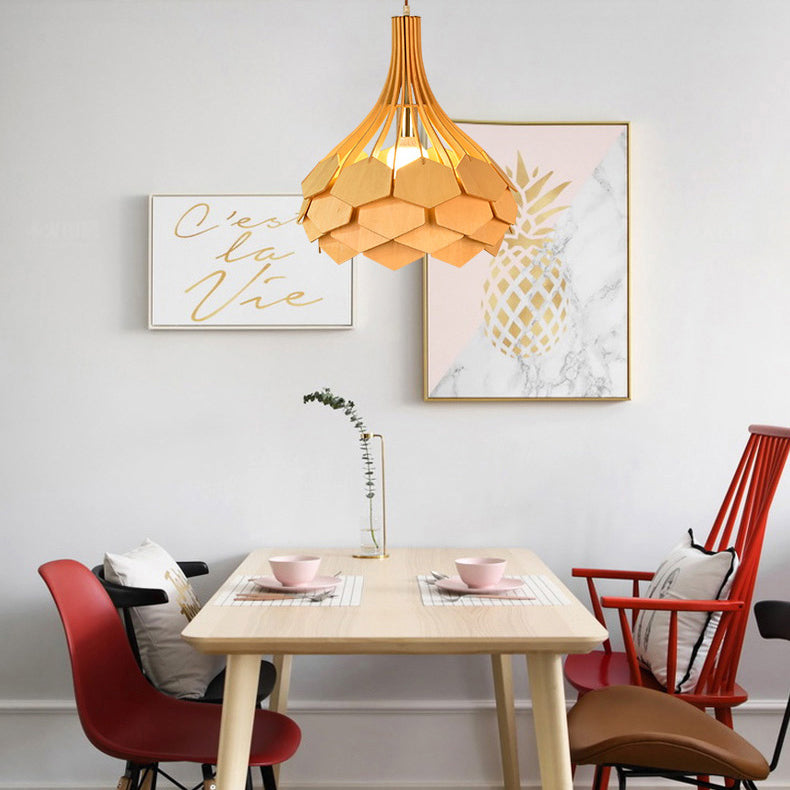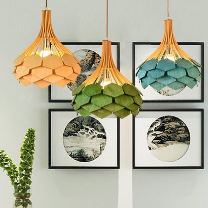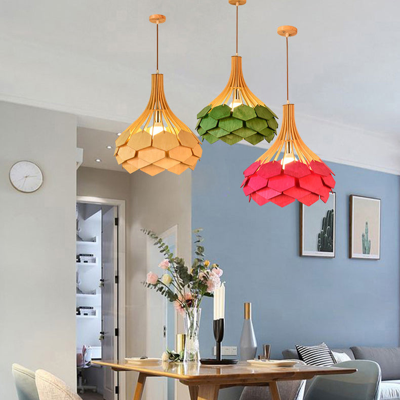 Modern Eclectic Birdcage Wood 1-Light Pendant Light For Living Room