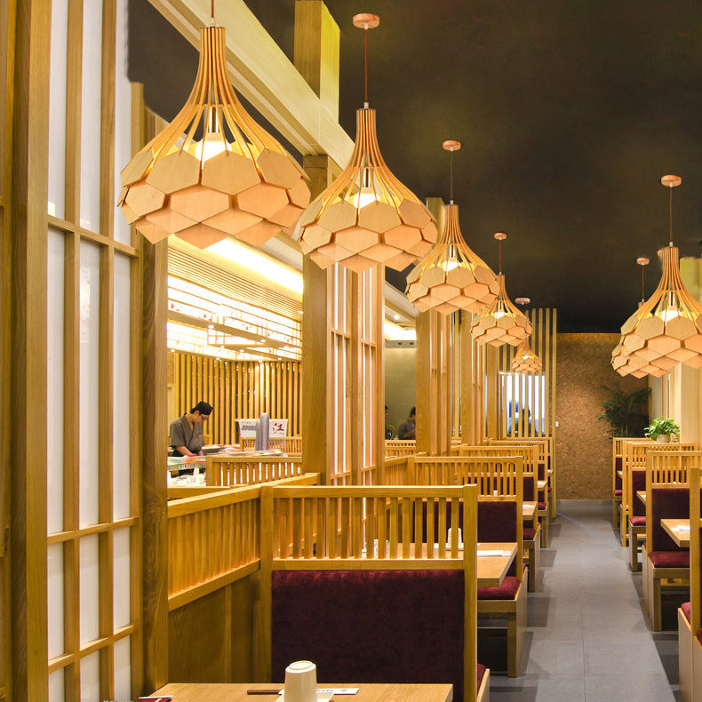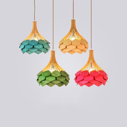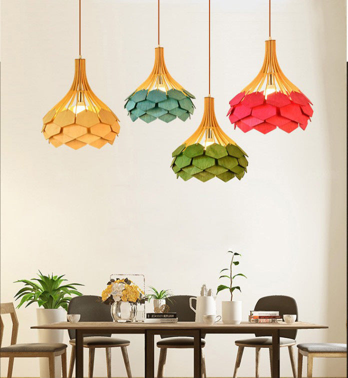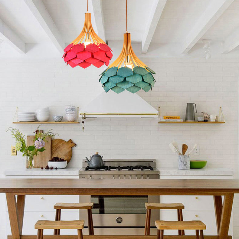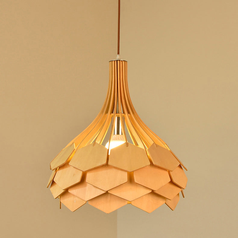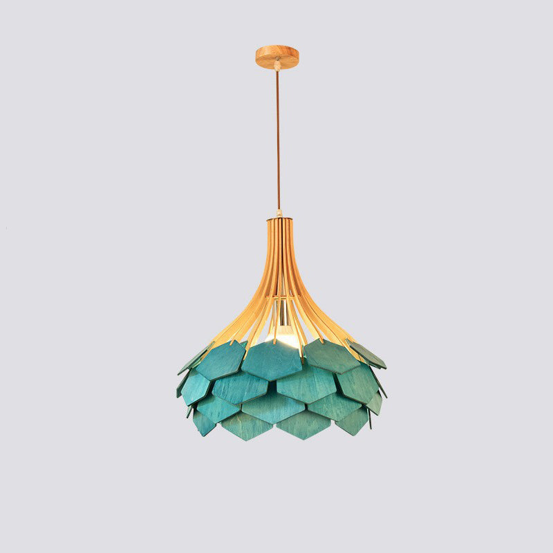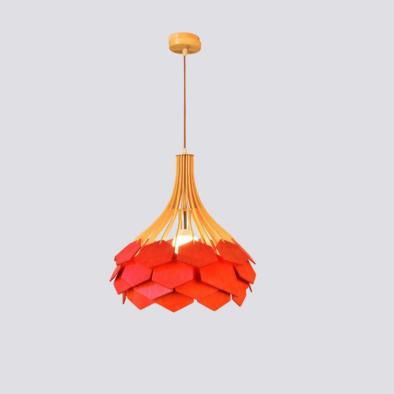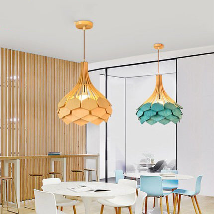 Modern Eclectic Birdcage Wood 1-Light Pendant Light For Living Room